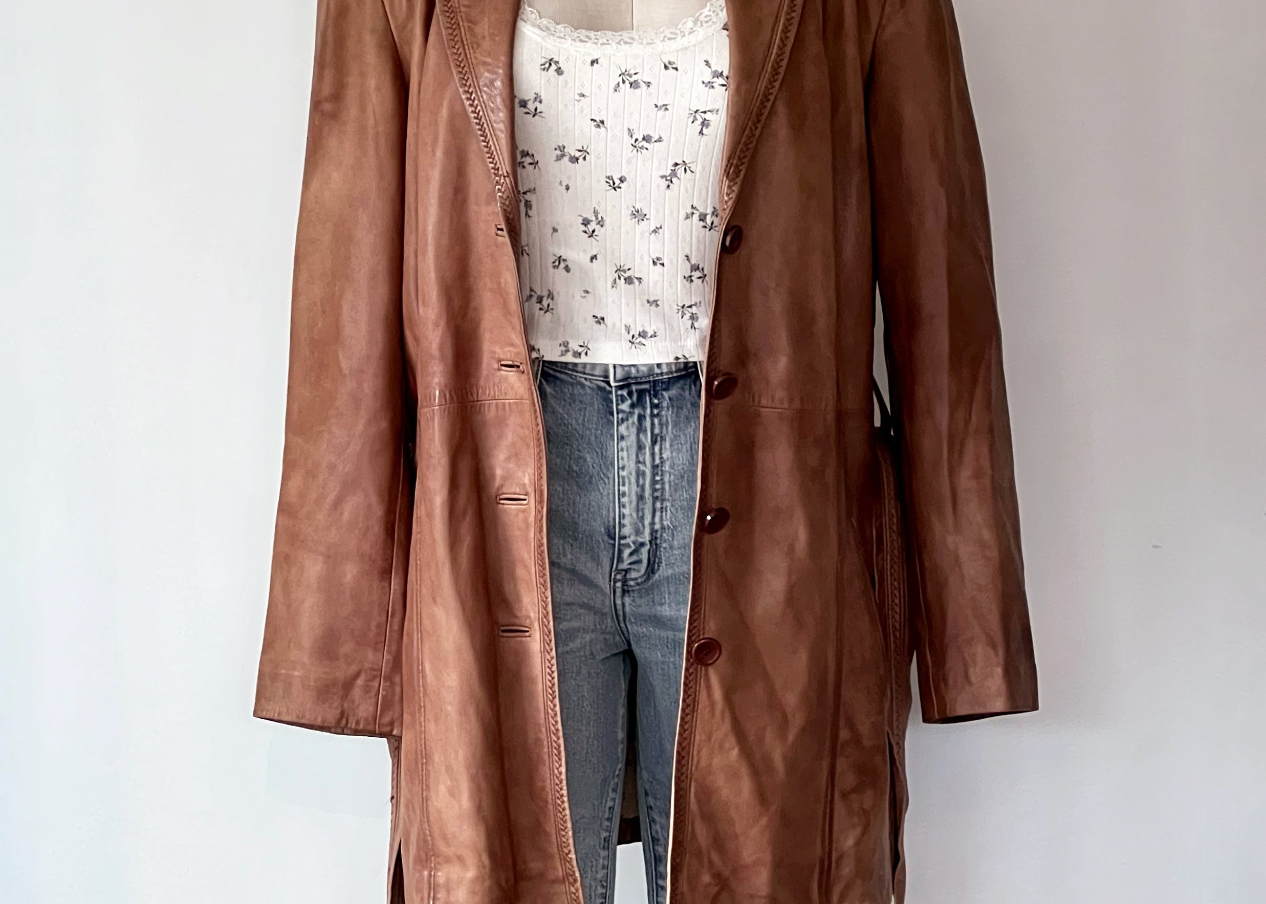 Vintage 1980s Tawny Brown Leather Longline Jacket