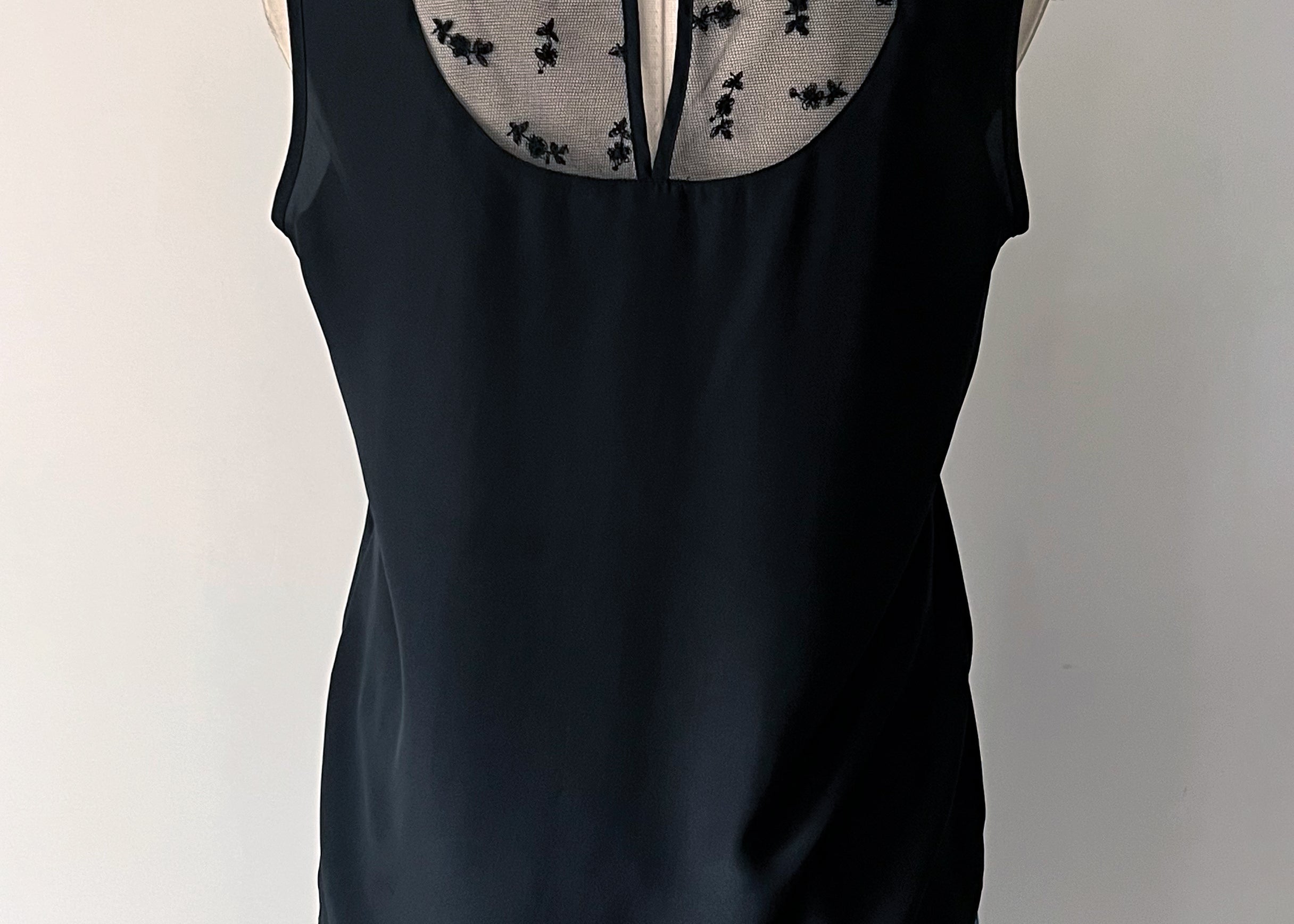 Vintage 1980s Embroidered Sheer Lace Yoke Top