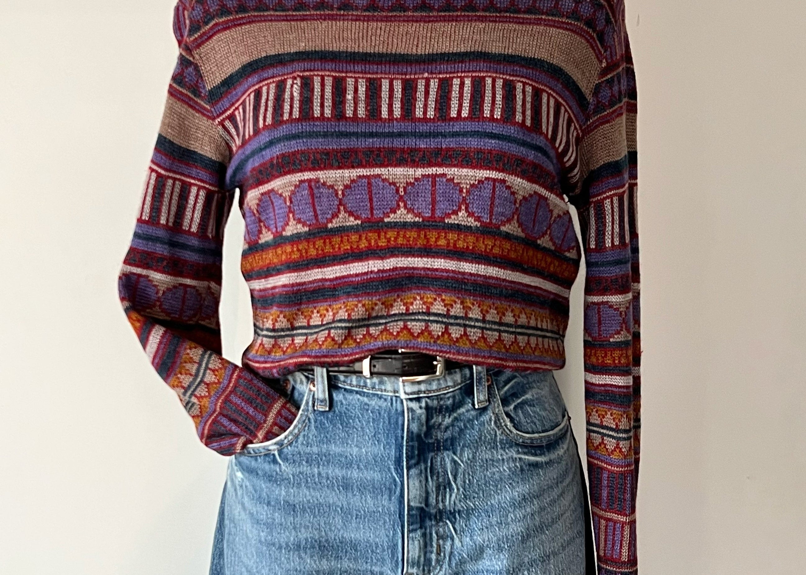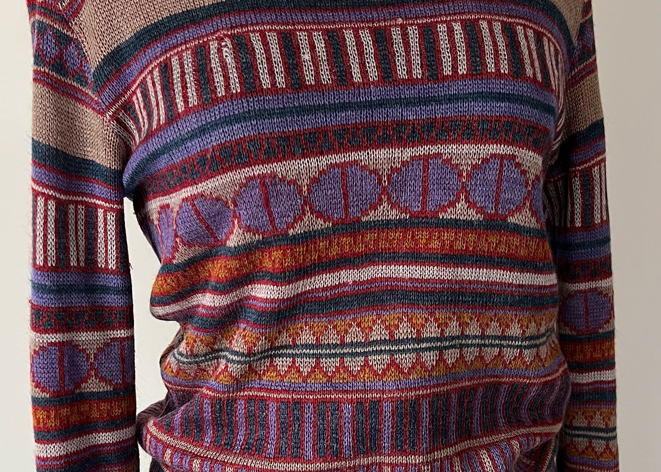 Vintage 1970s Colorful Geometric Airy Knit Sweater
