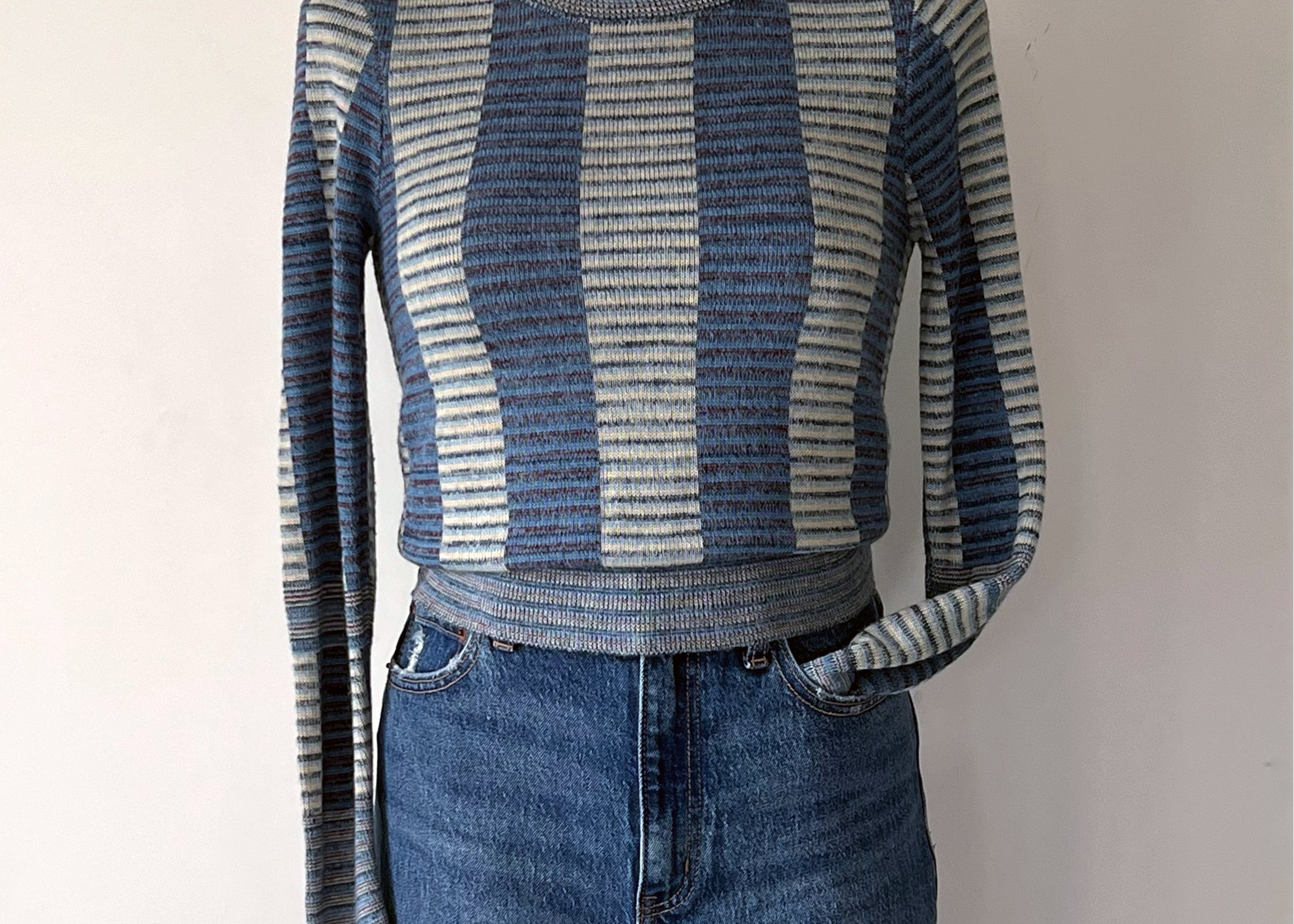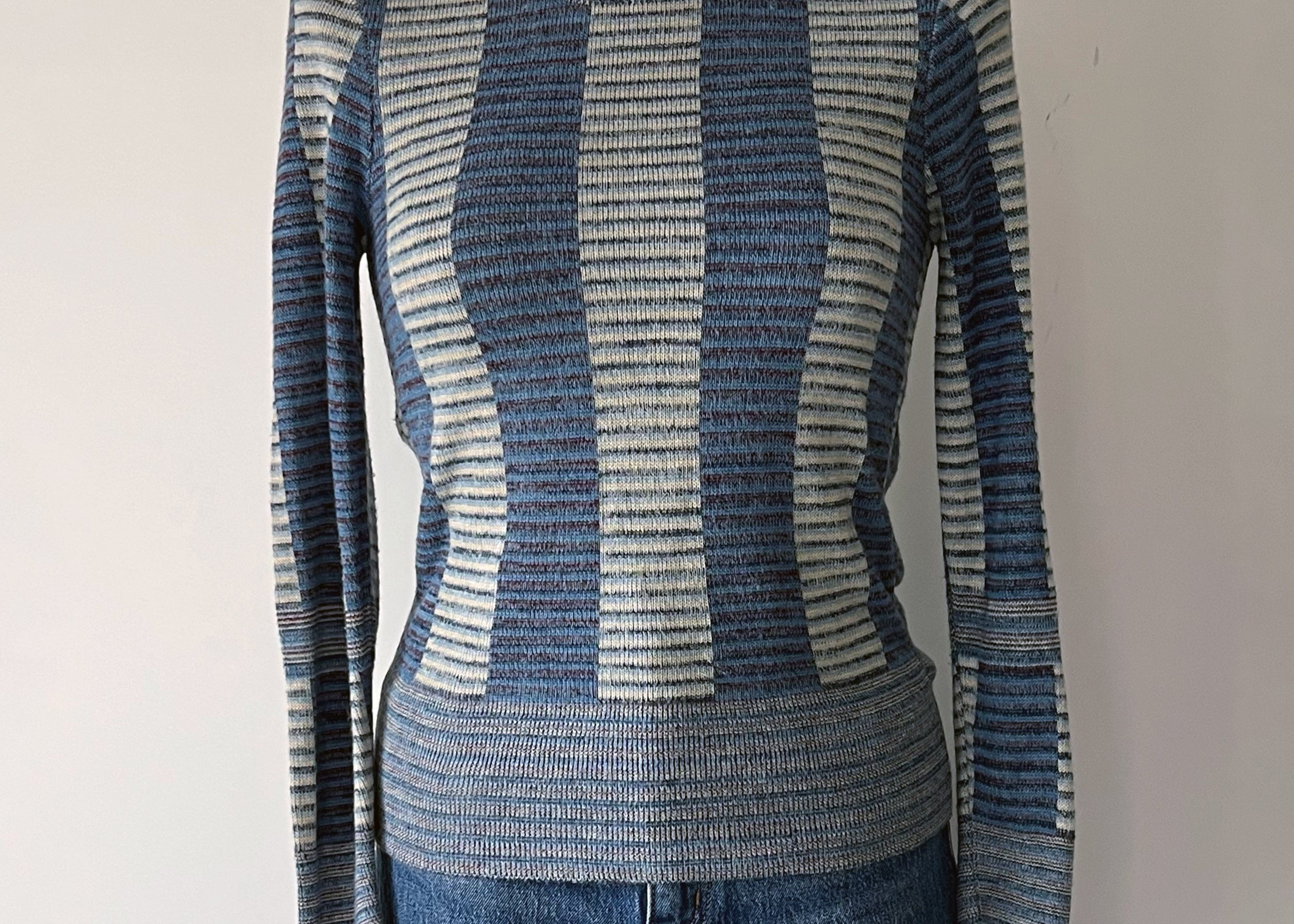Vintage 1970s Block Stripe Frosted Blue Sweater