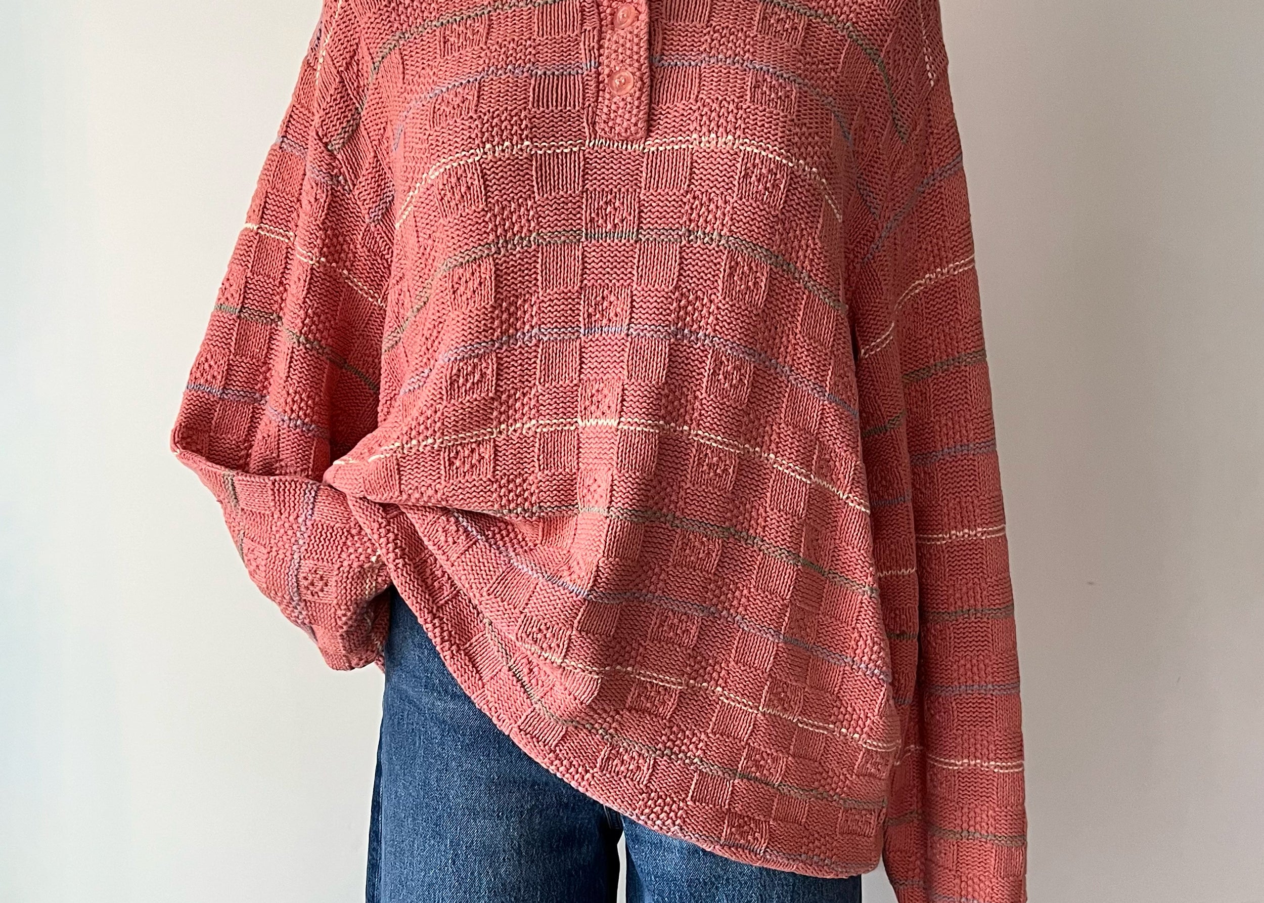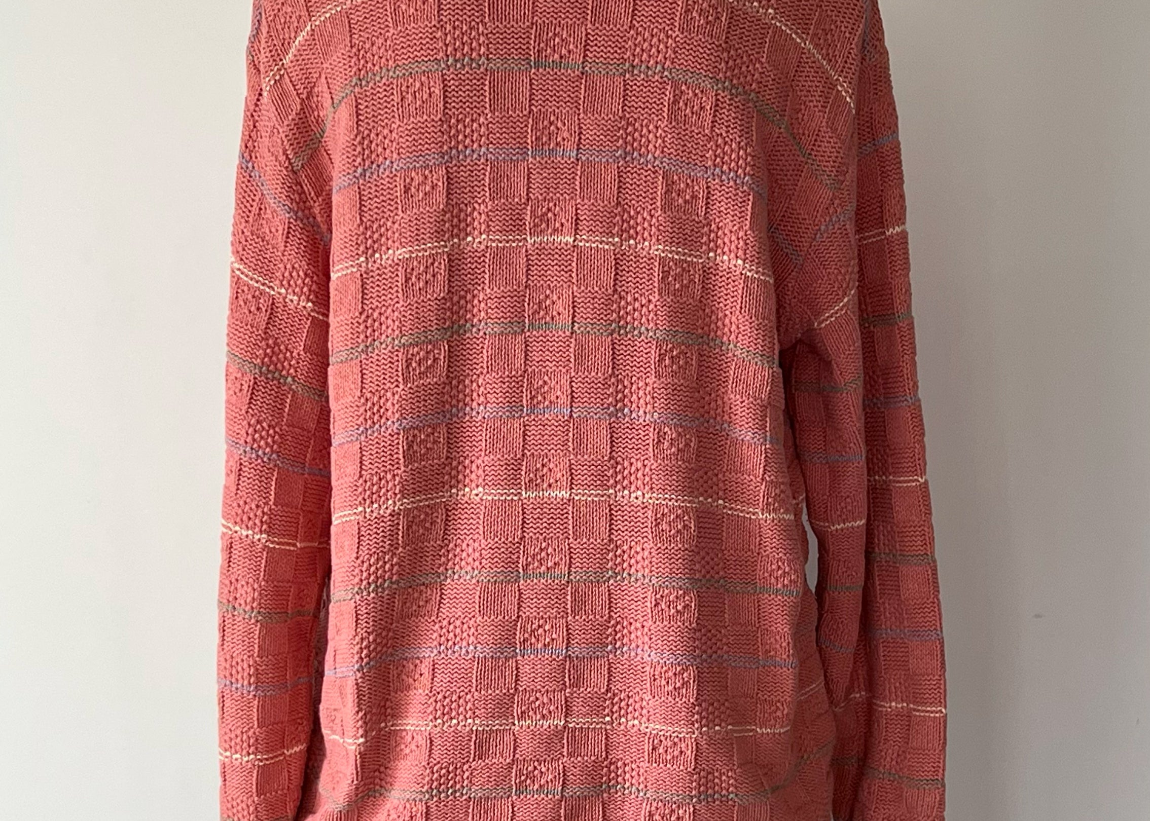 Vintage 1980s -1990s Rosy Pink Woven Basket Knit Sweater