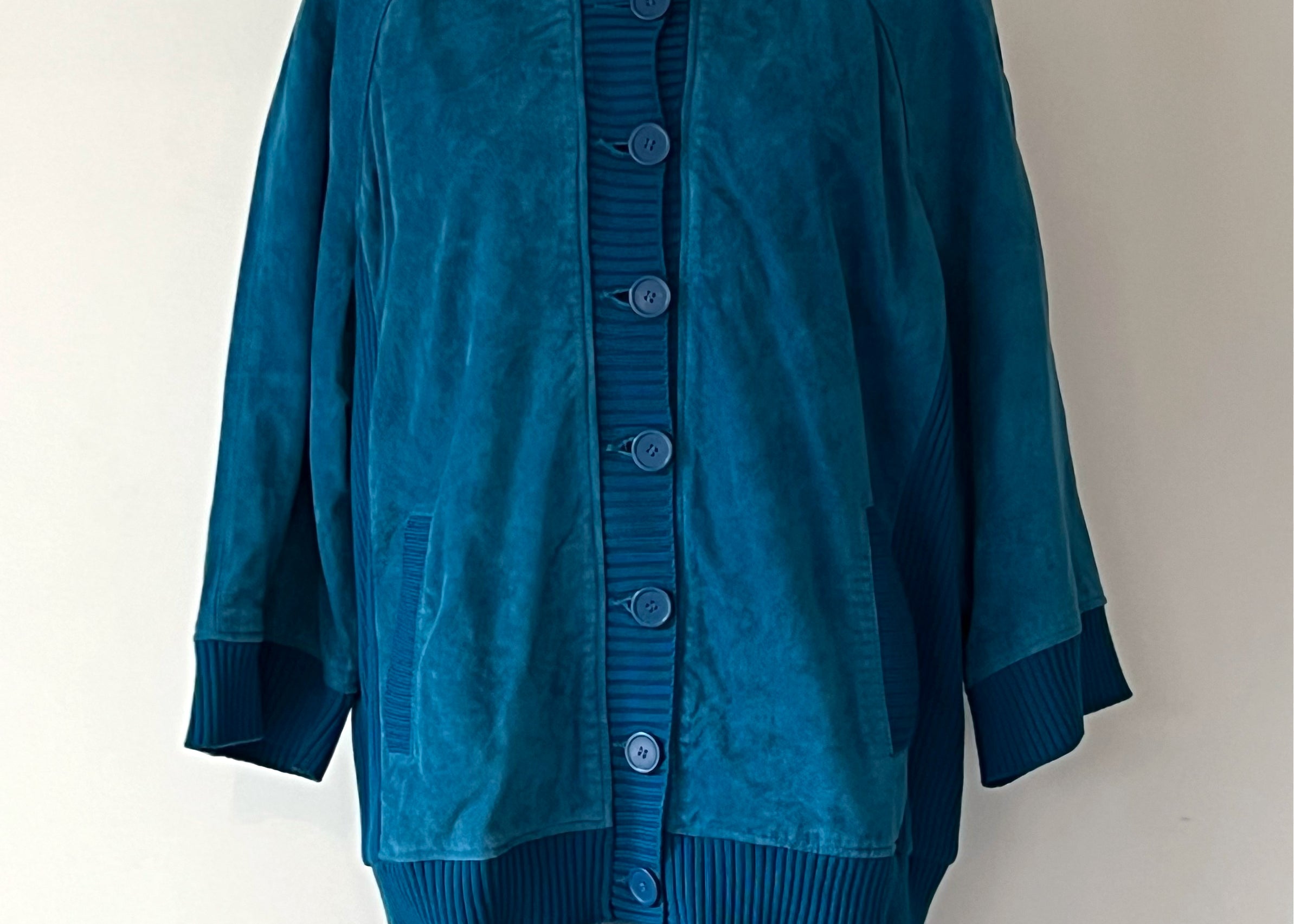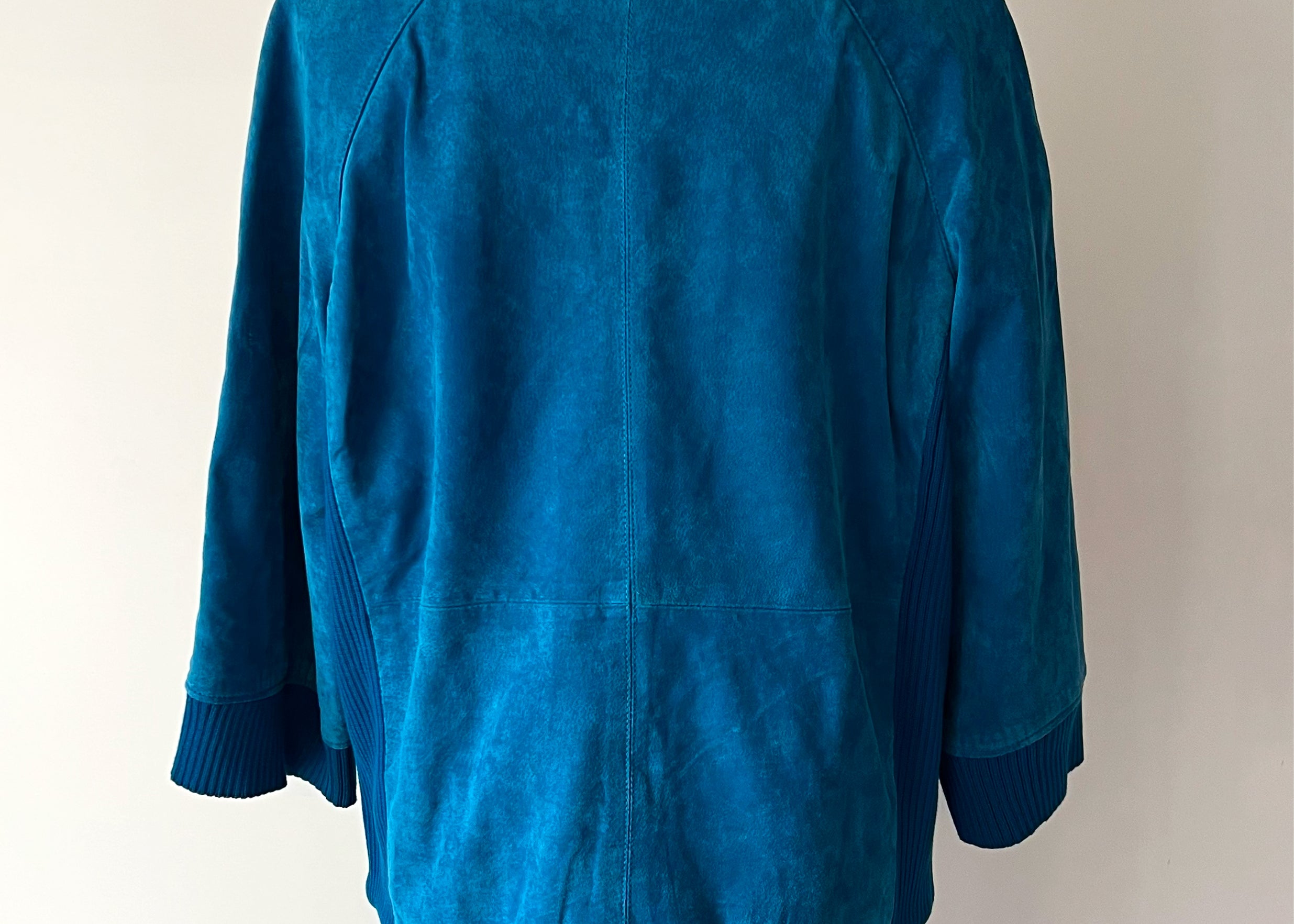 Vintage 1980s Blue Suede Ribbed Knit Half Sleeve Jacket