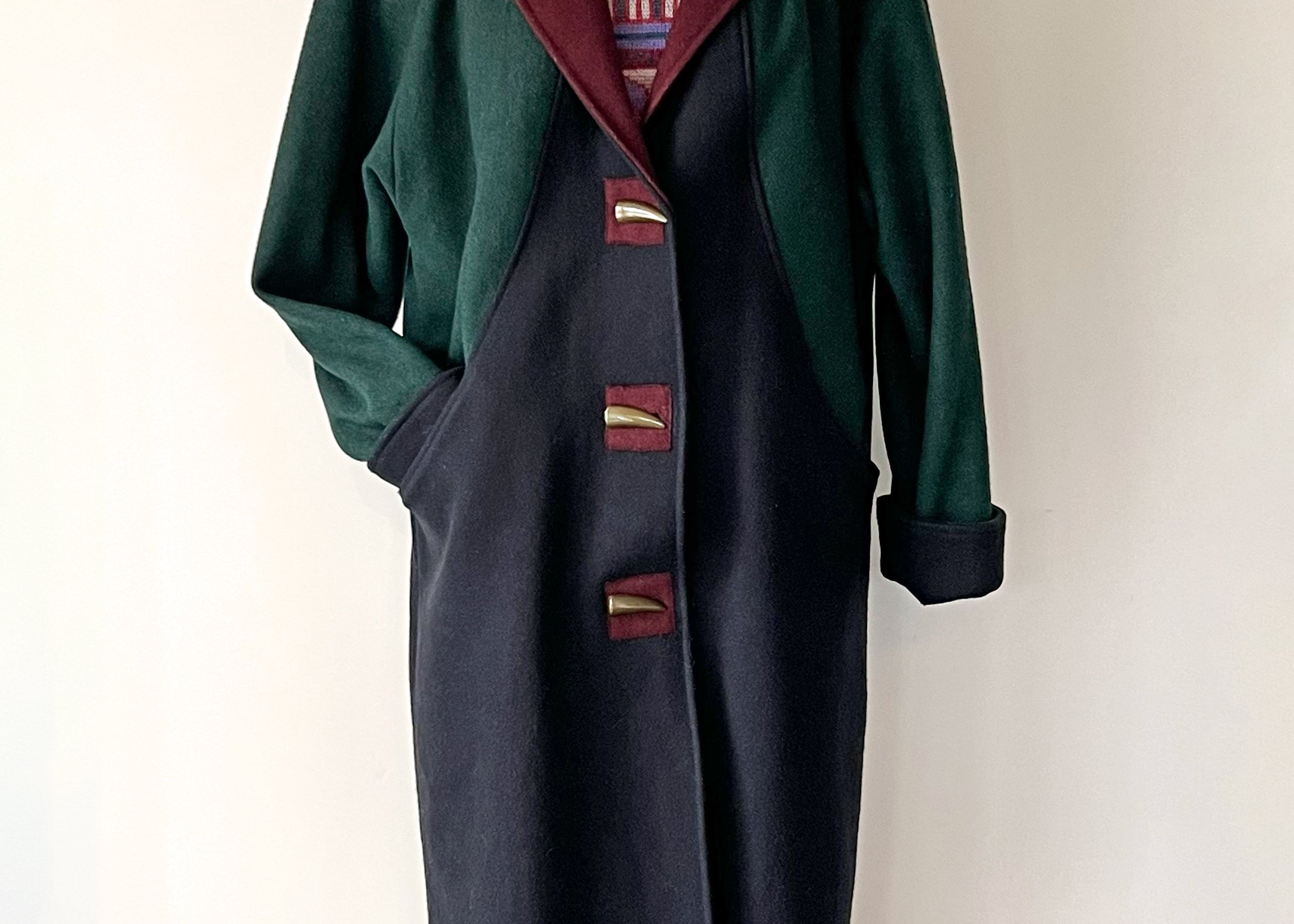 Vintage 1980s Colorblock Heavy Felted Wool Overcoat