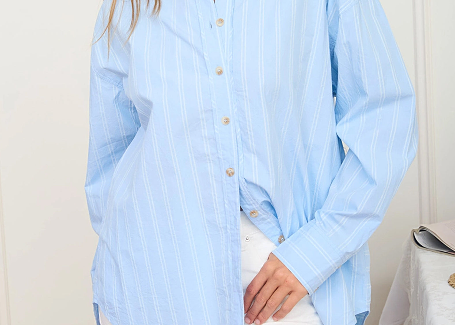Selma Blue Striped Cotton Button-Up Shirt