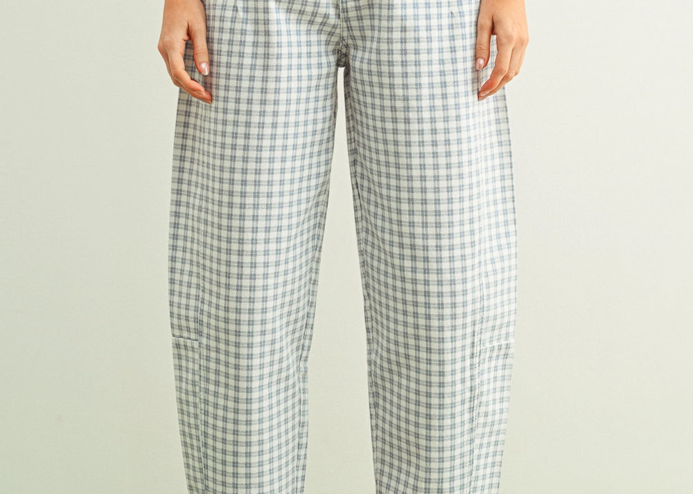 Rubi Plaid Cotton Barrel Pants