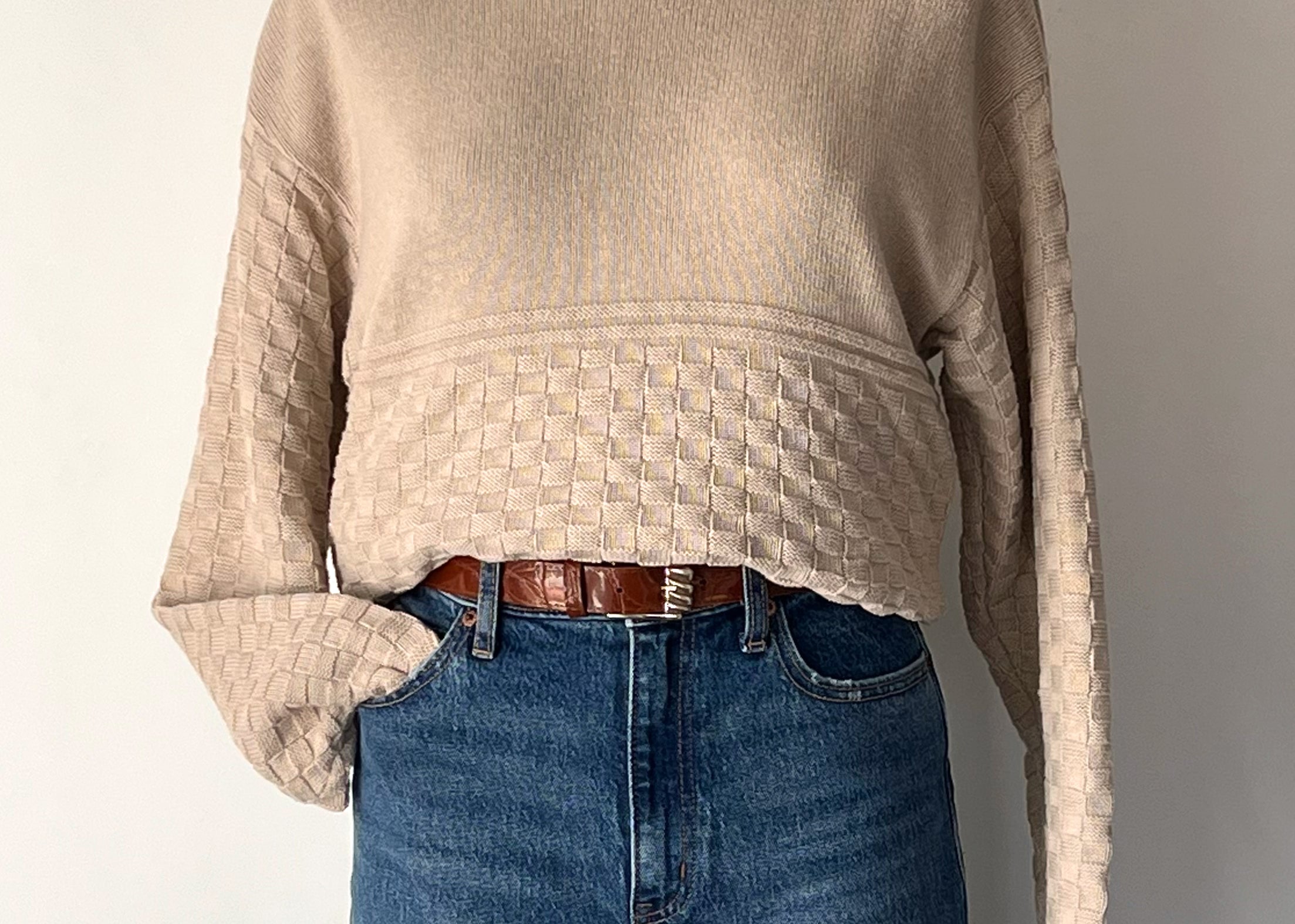 Vintage 1980s Oatmeal Basket Weave Sweater