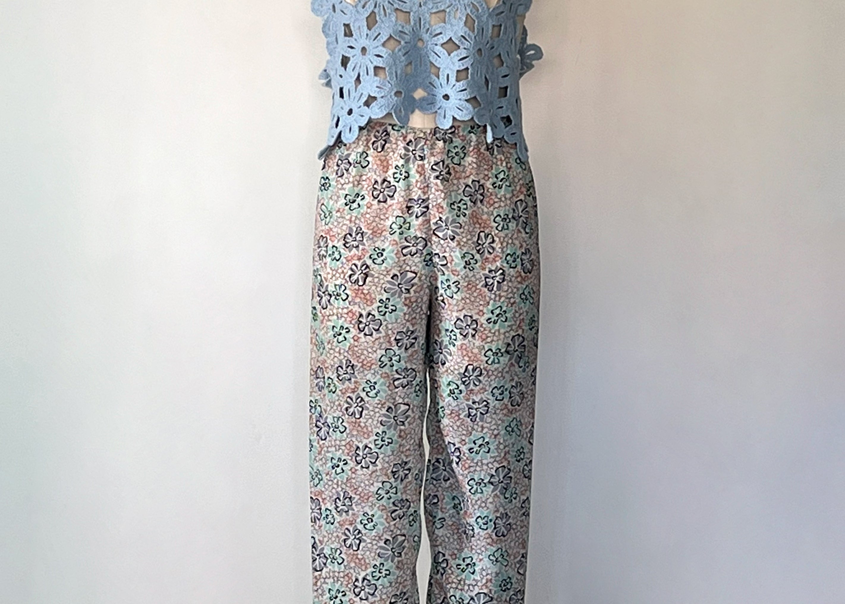 Vintage 1990s Floral Pop Art Sheer Chiffon Pants