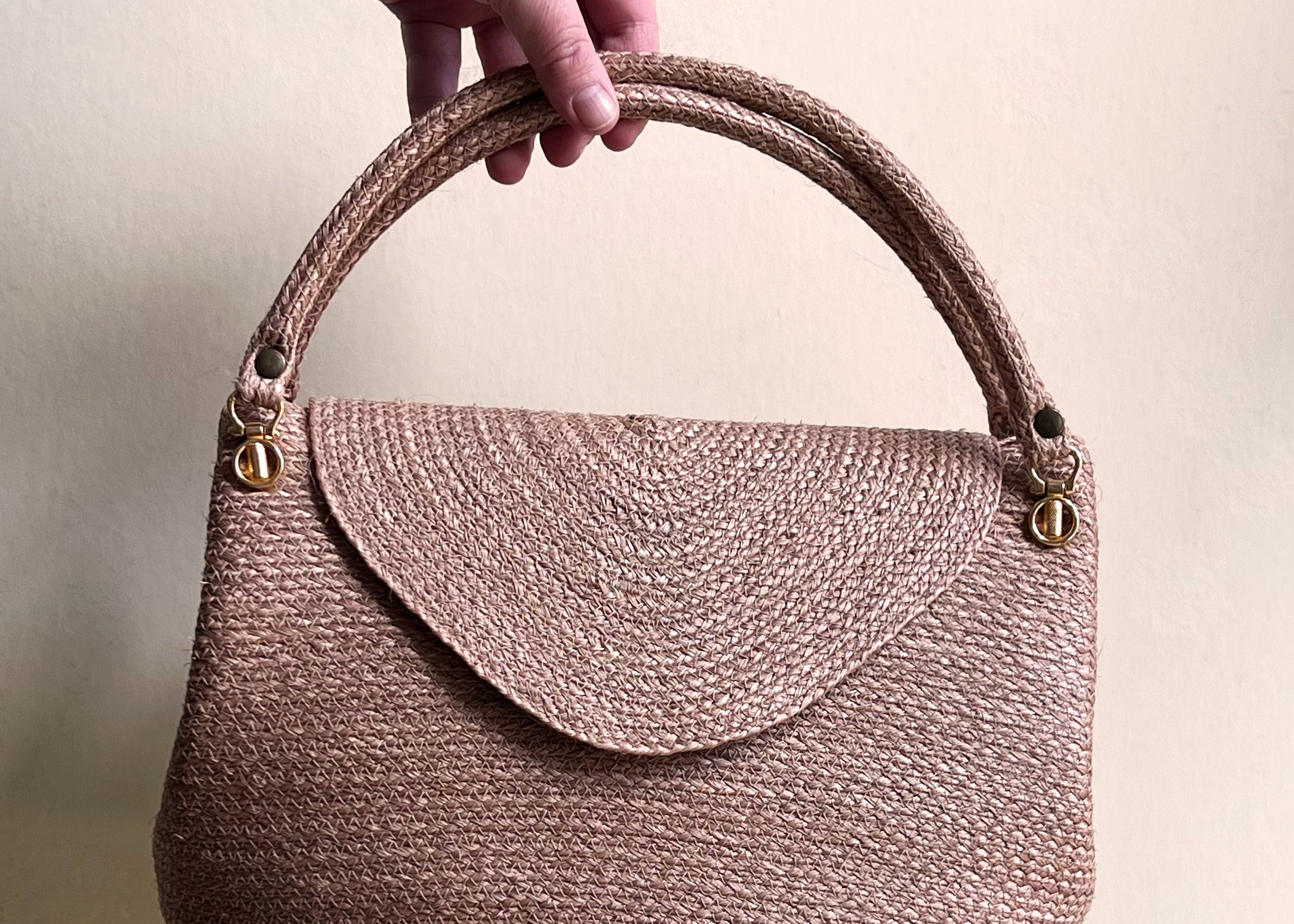 Vintage 1990s Woven Straw Double Handle Bag