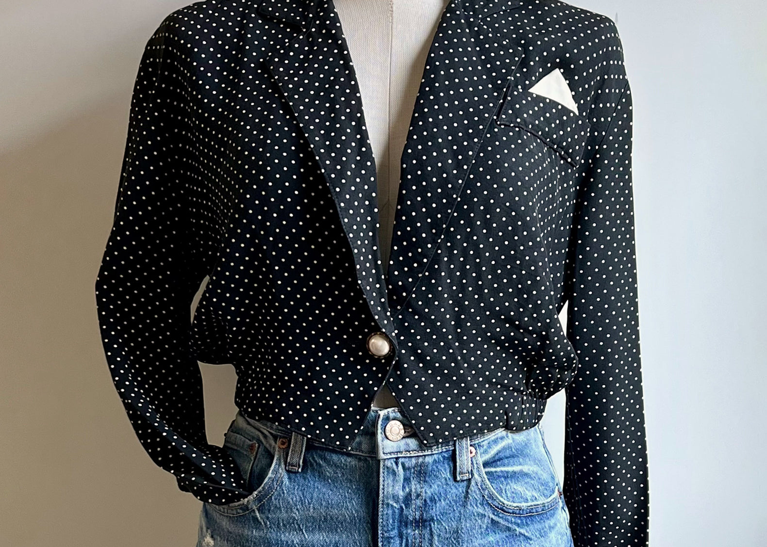 Flore Vintage Cropped Polka Dot Blouse