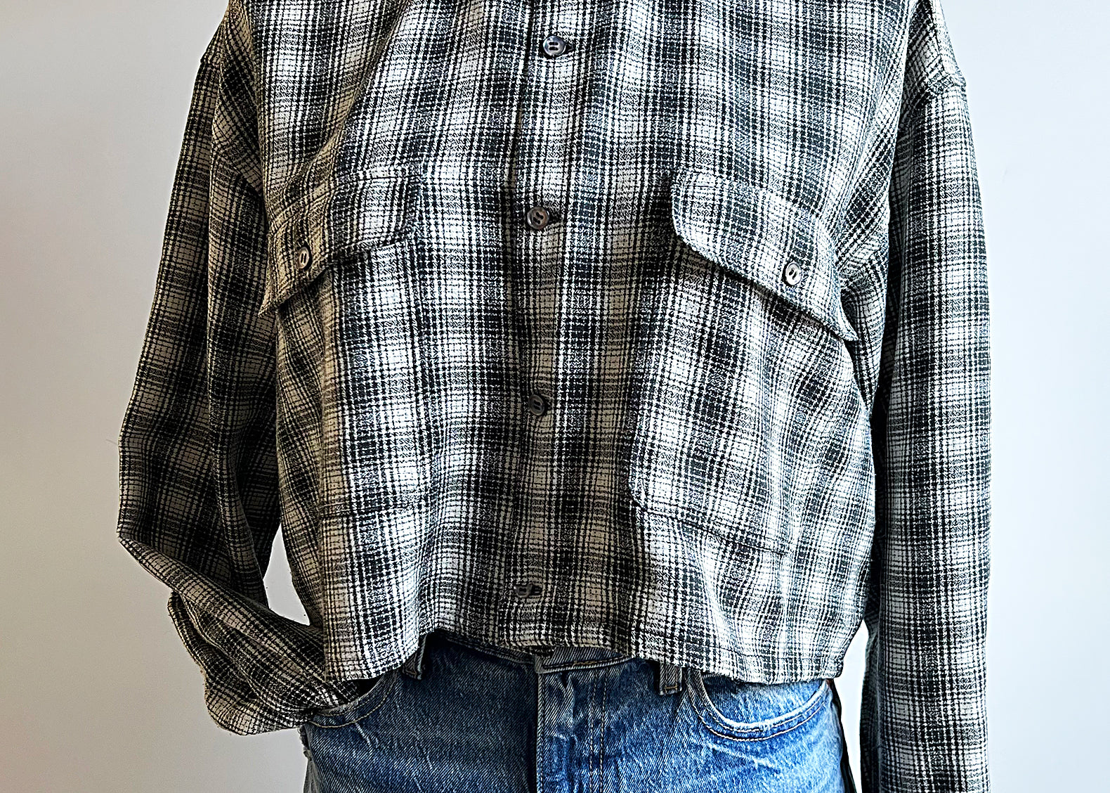 Flore Vintage Cropped Plaid Utility Shacket