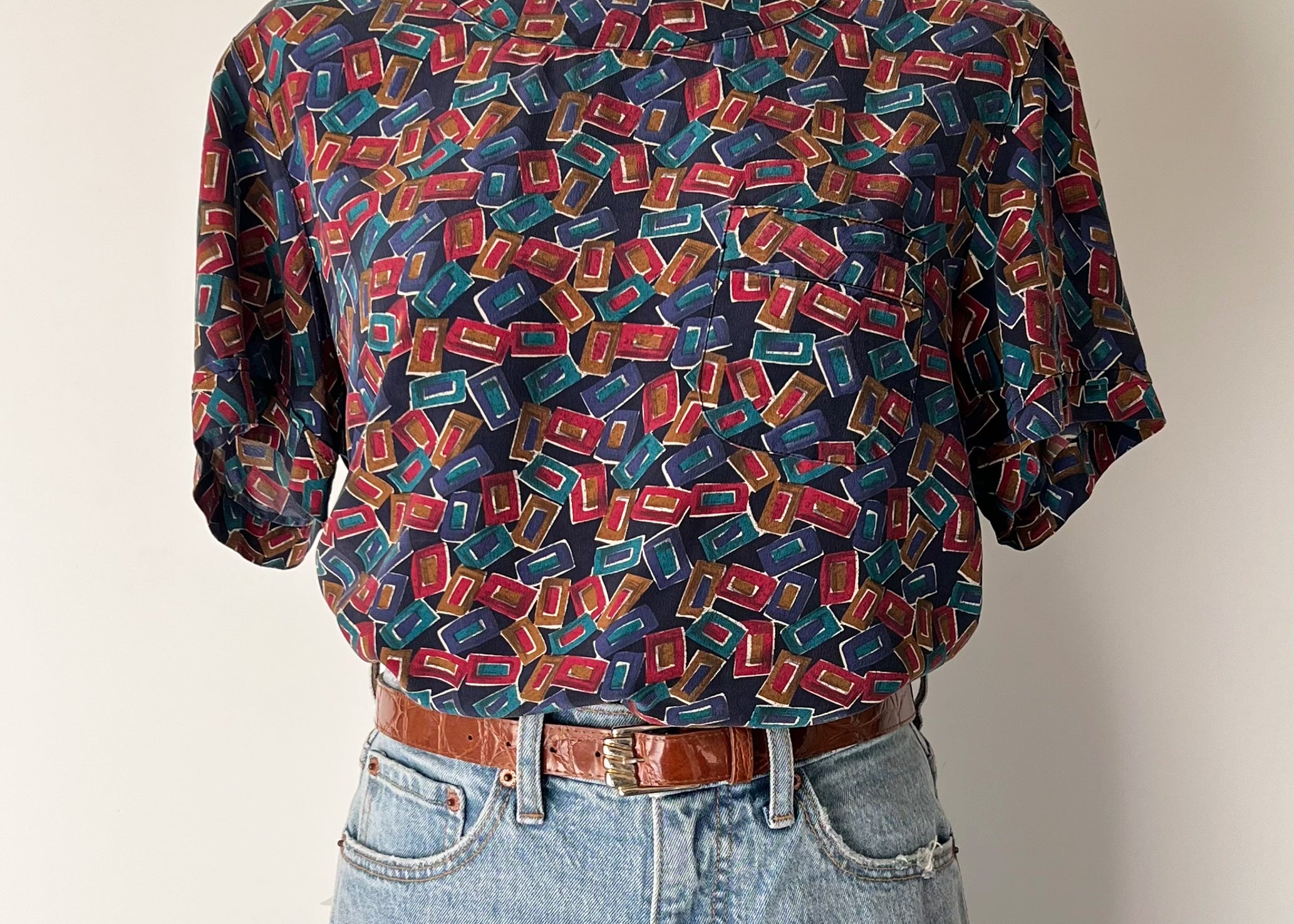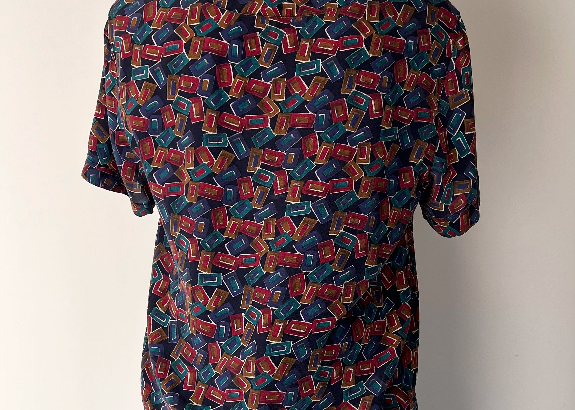 Vintage 1980s-1990s Raw Silk Geometric Boxy Top
