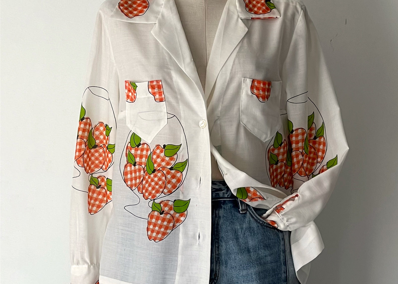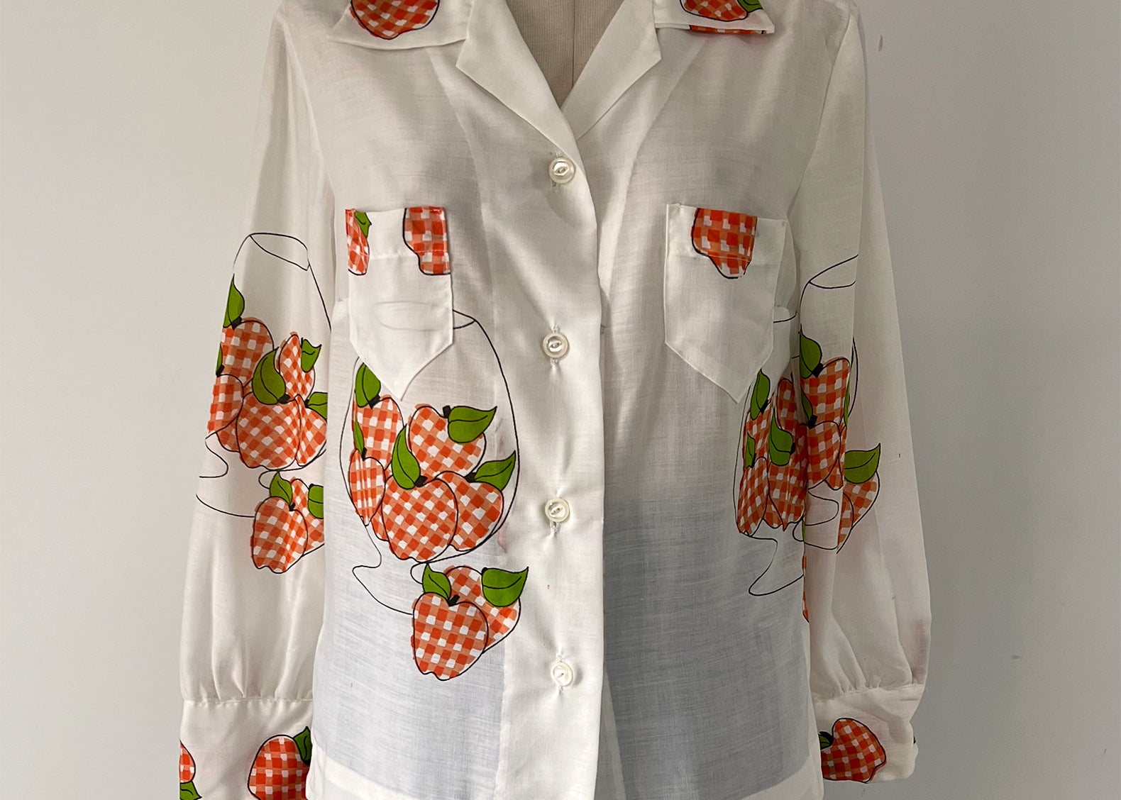 Flore Vintage Handmade Gingham Apple Print Blouse