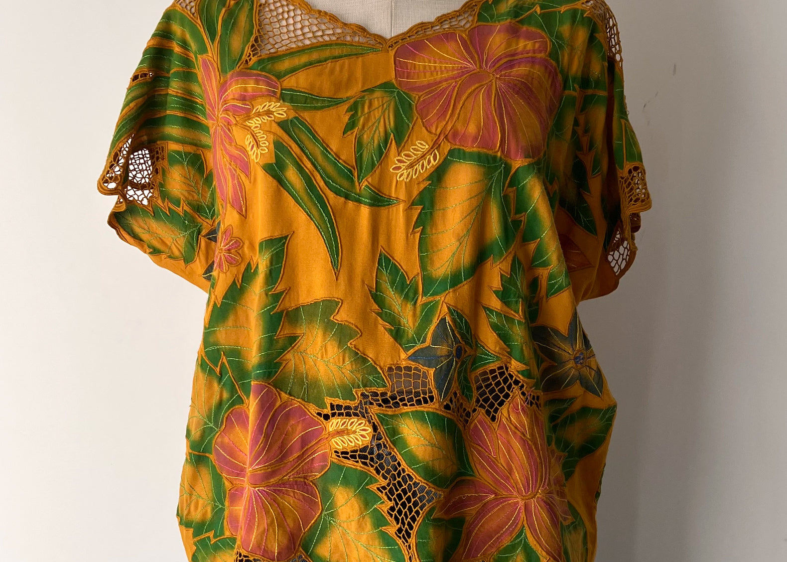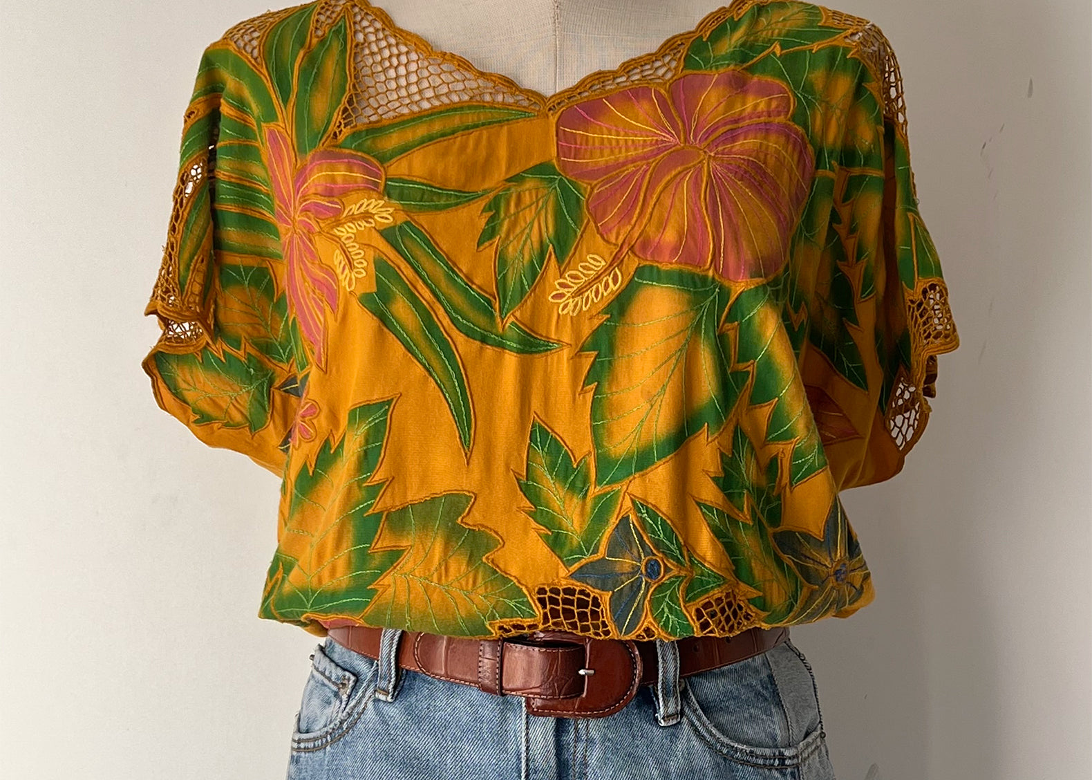 Flore Vintage Tropical Embroidered Rayon Top