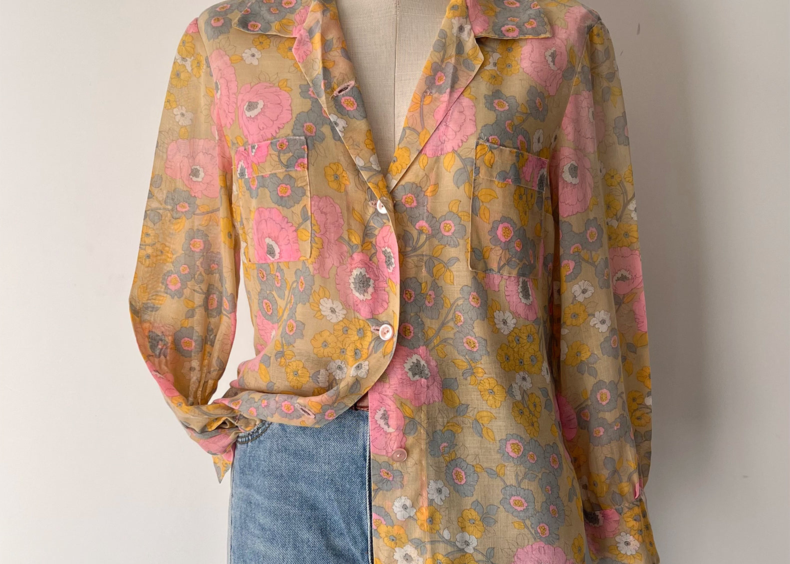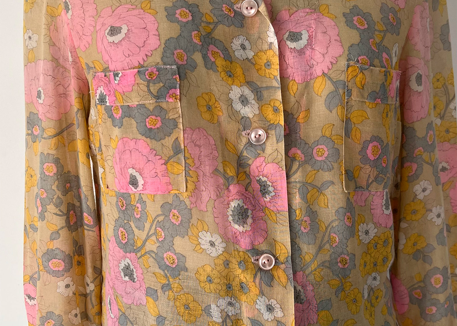 Flore Vintage Handmade Floral Gauze Button Blouse