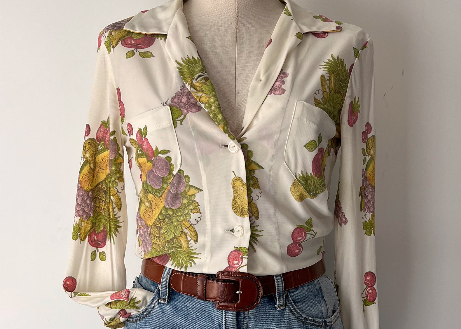 Flore Vintage Handmade Fruit Print Button Blouse