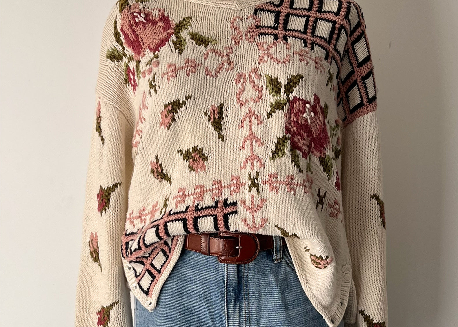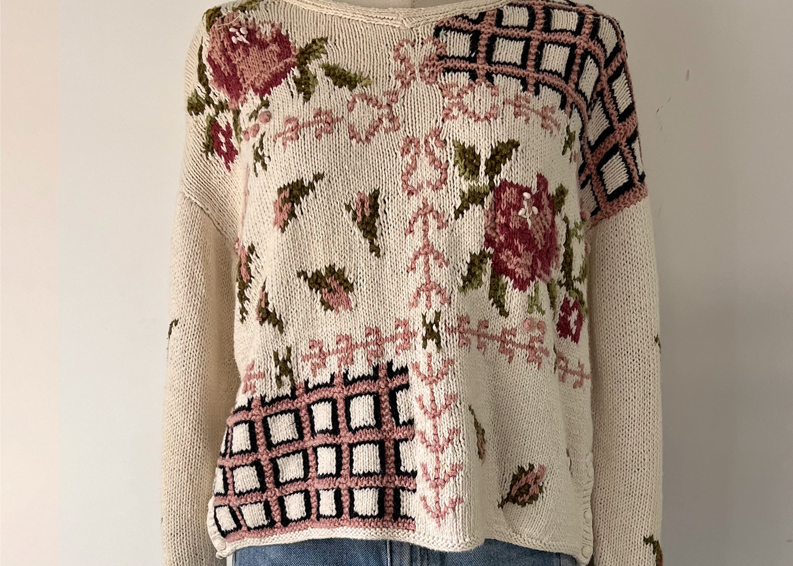 Flore Vintage Hand Knit Jennifer Reid Floral Sweater