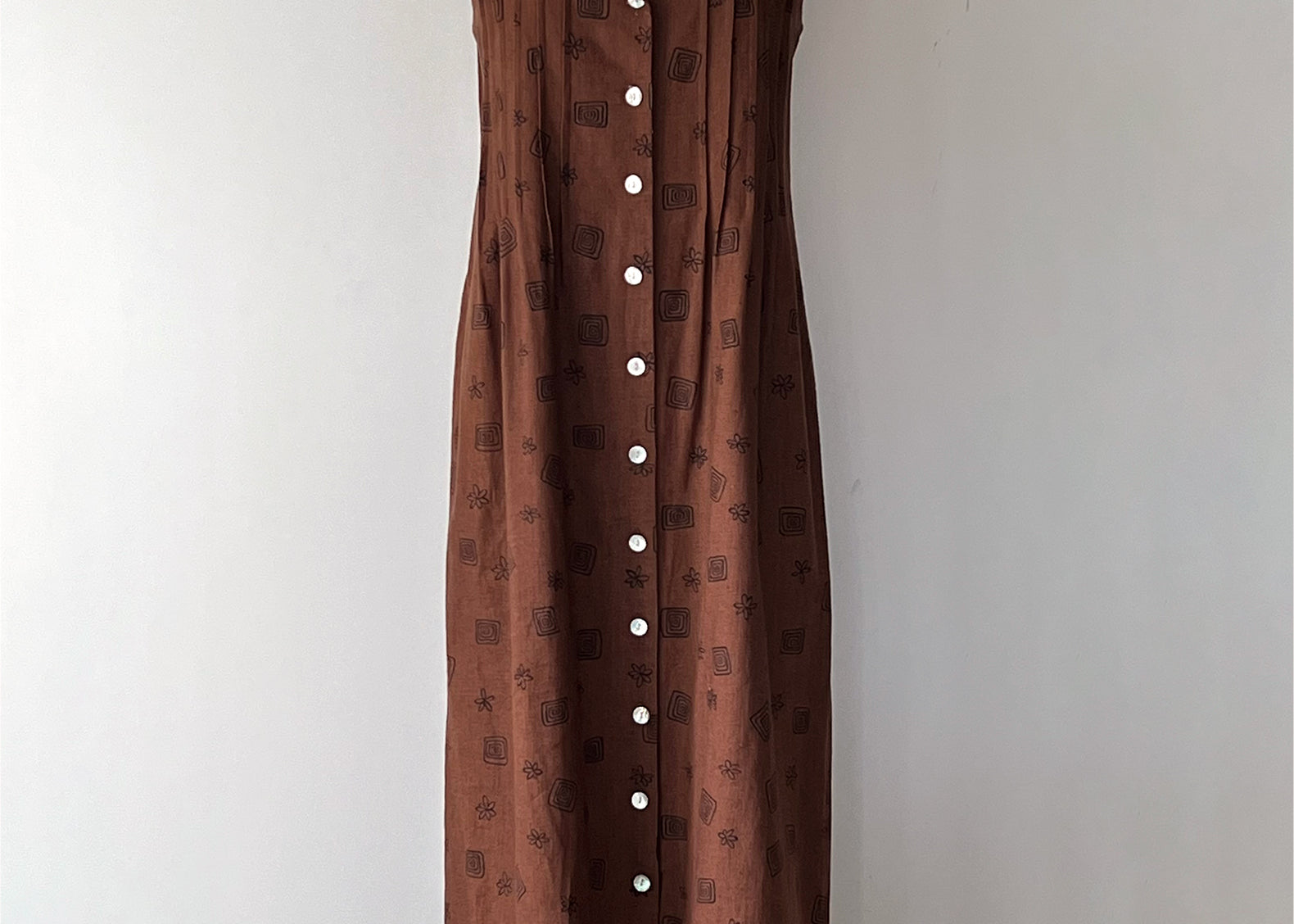 Flore Vintage Linen Cotton Doodle Print Button Dress