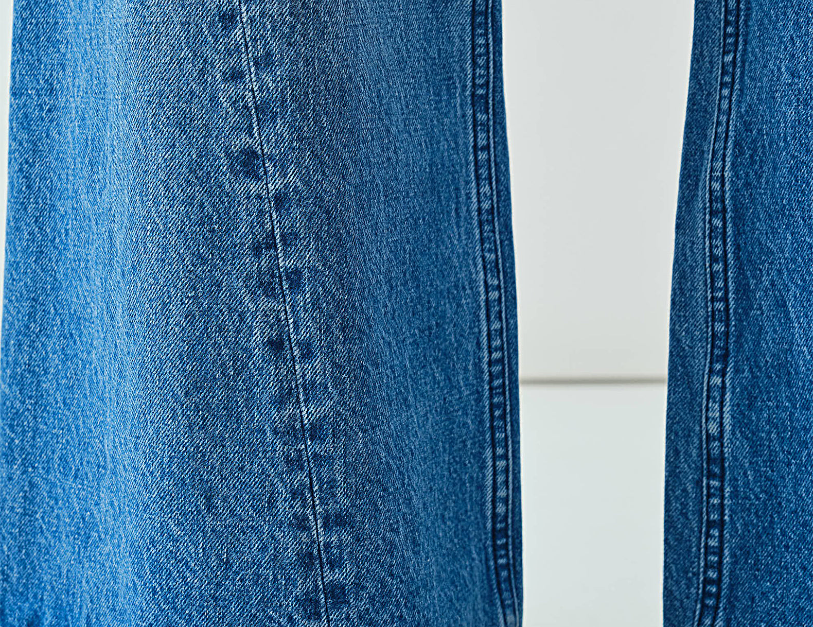 A wide-leg take on our bestselling Mackenzie barrel jeans, Addison features the same vintage-y, medium blue wash in a mid-weight, ridged denim. The relaxed fit and twisted side seams keep things interesting, while the full-length inseam and five-pocket finish keep them classic. Pair these everyday jeans with a tee and blazer, or pop them on with an oversized knit and chunky boots.