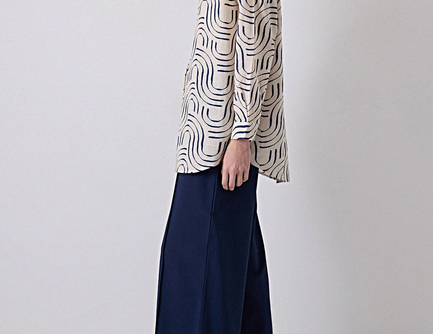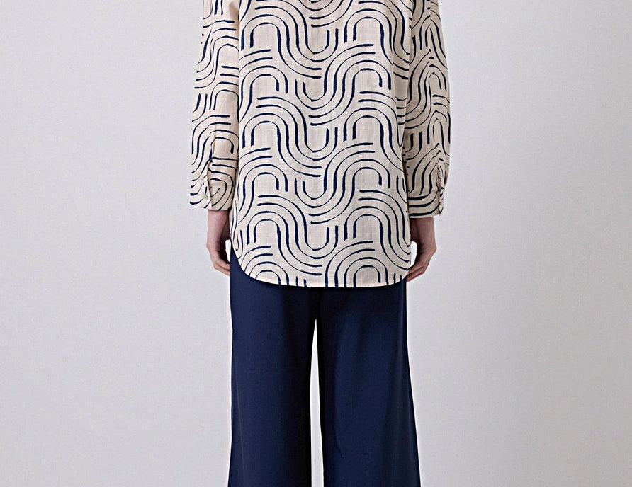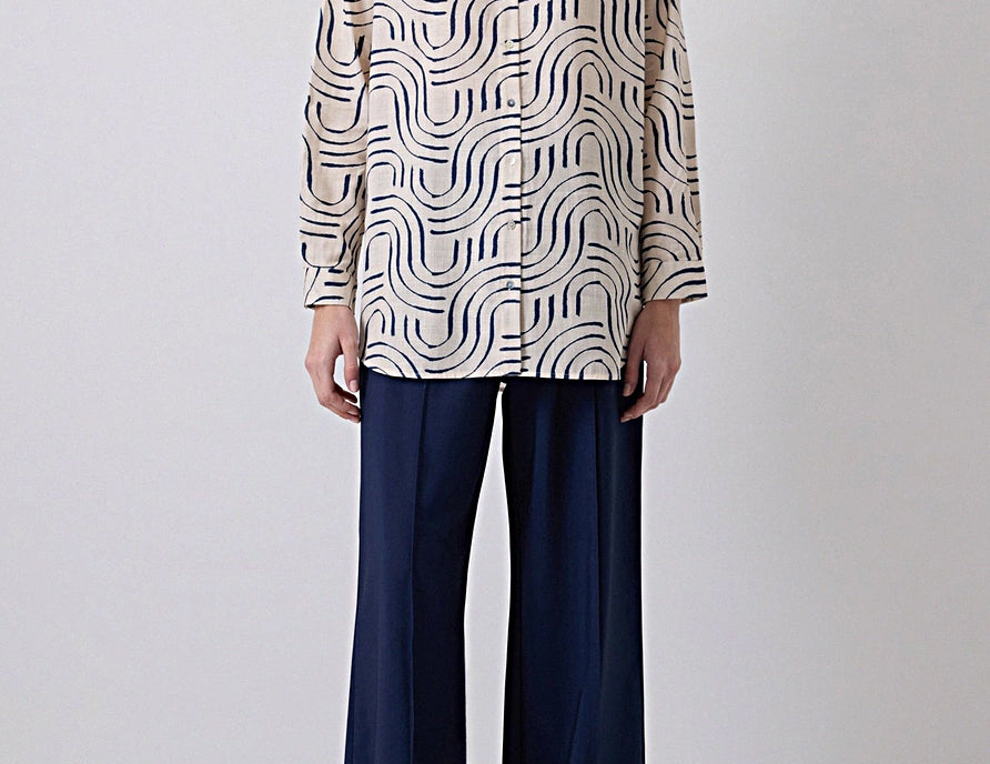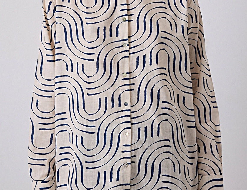 Adelaide Oversize Wavy Print Button-Up Shirt