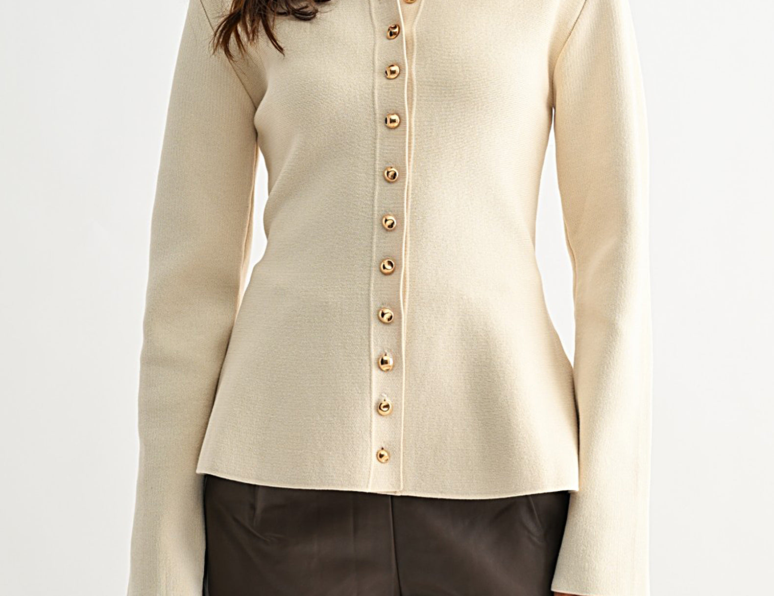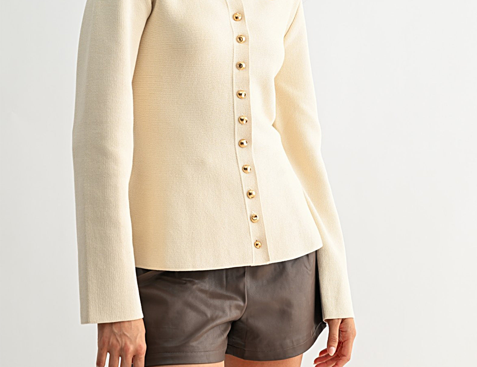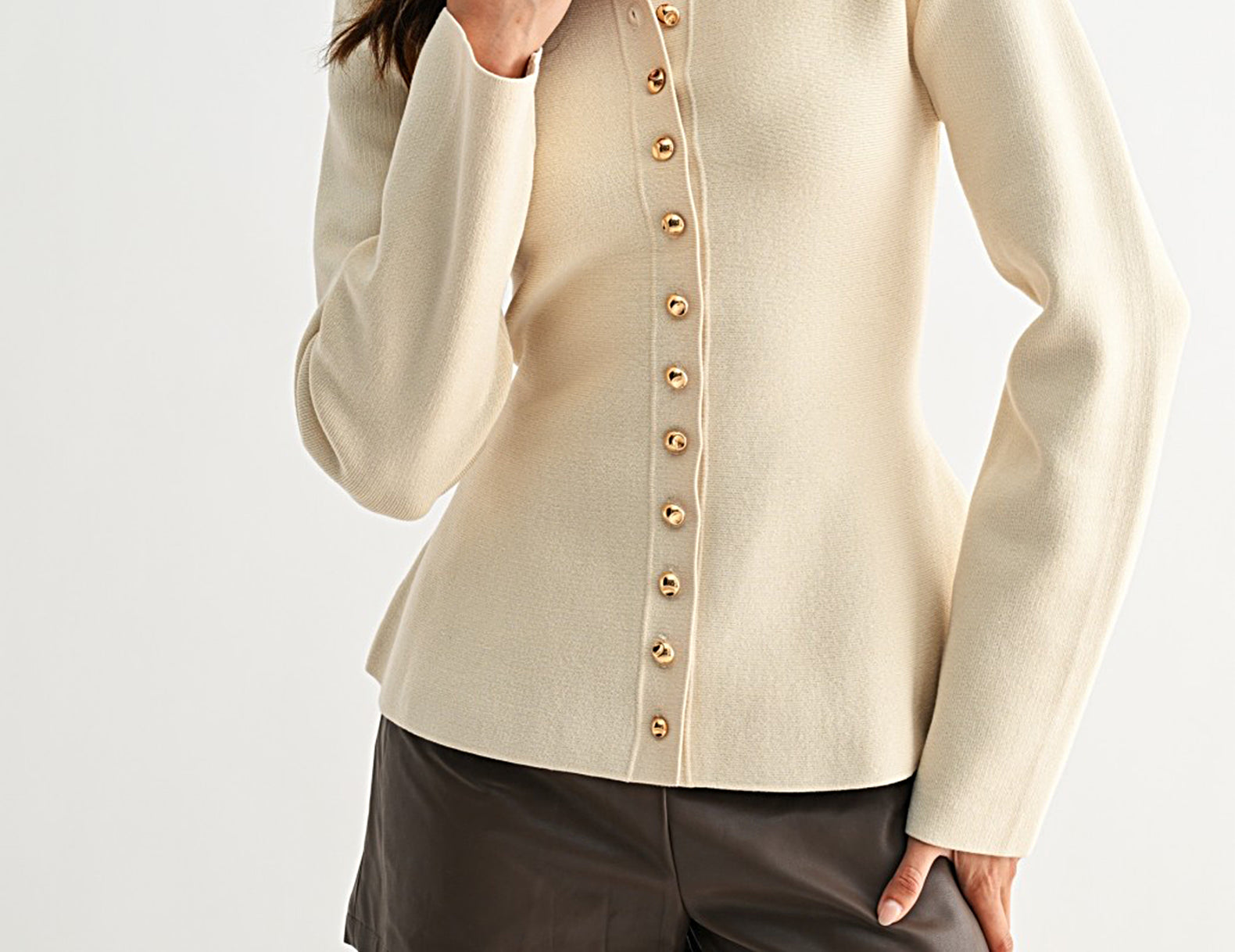 Ainsley Ivory Button-Up Knit Top