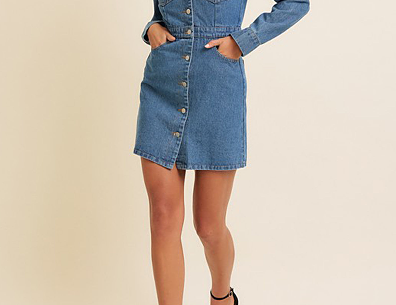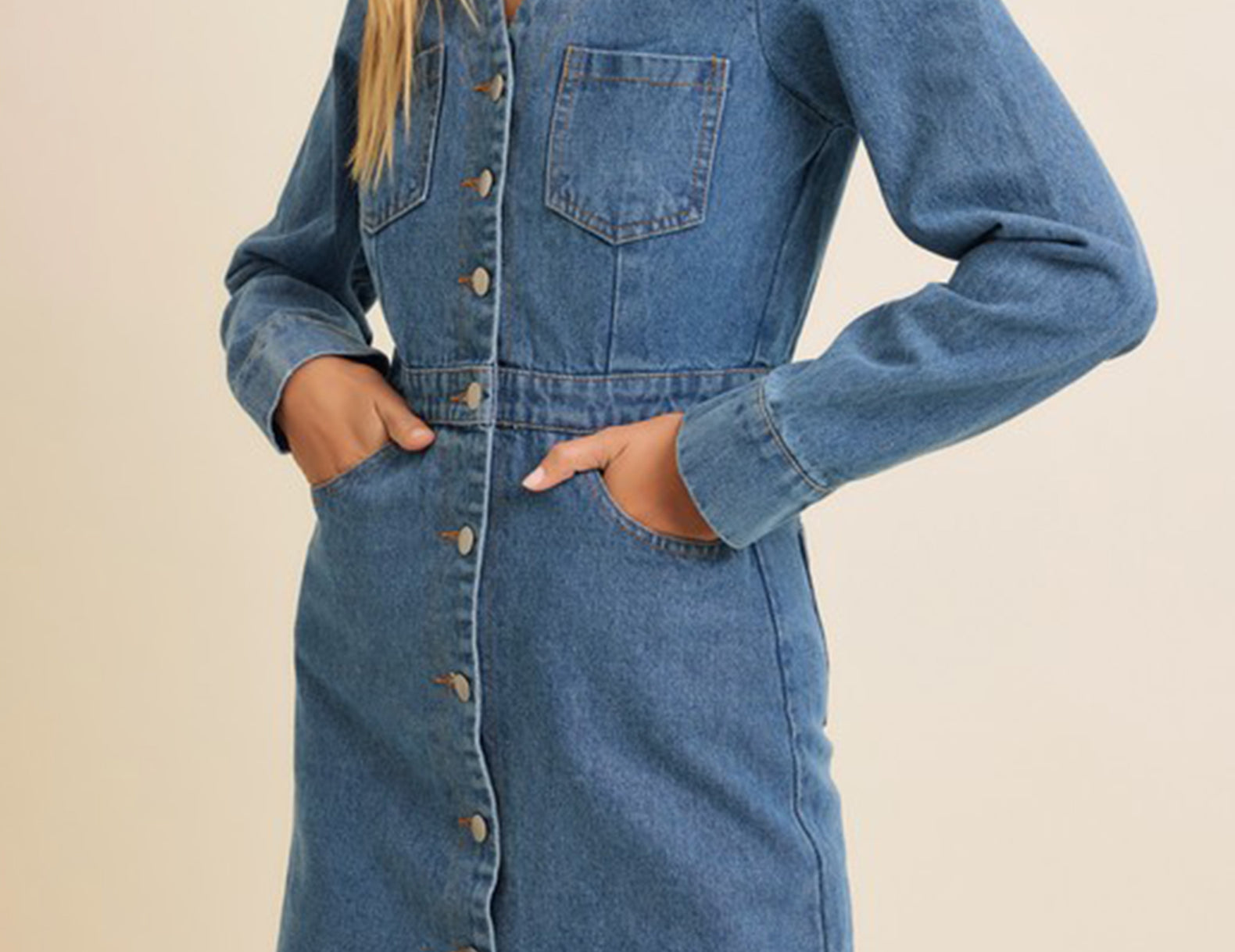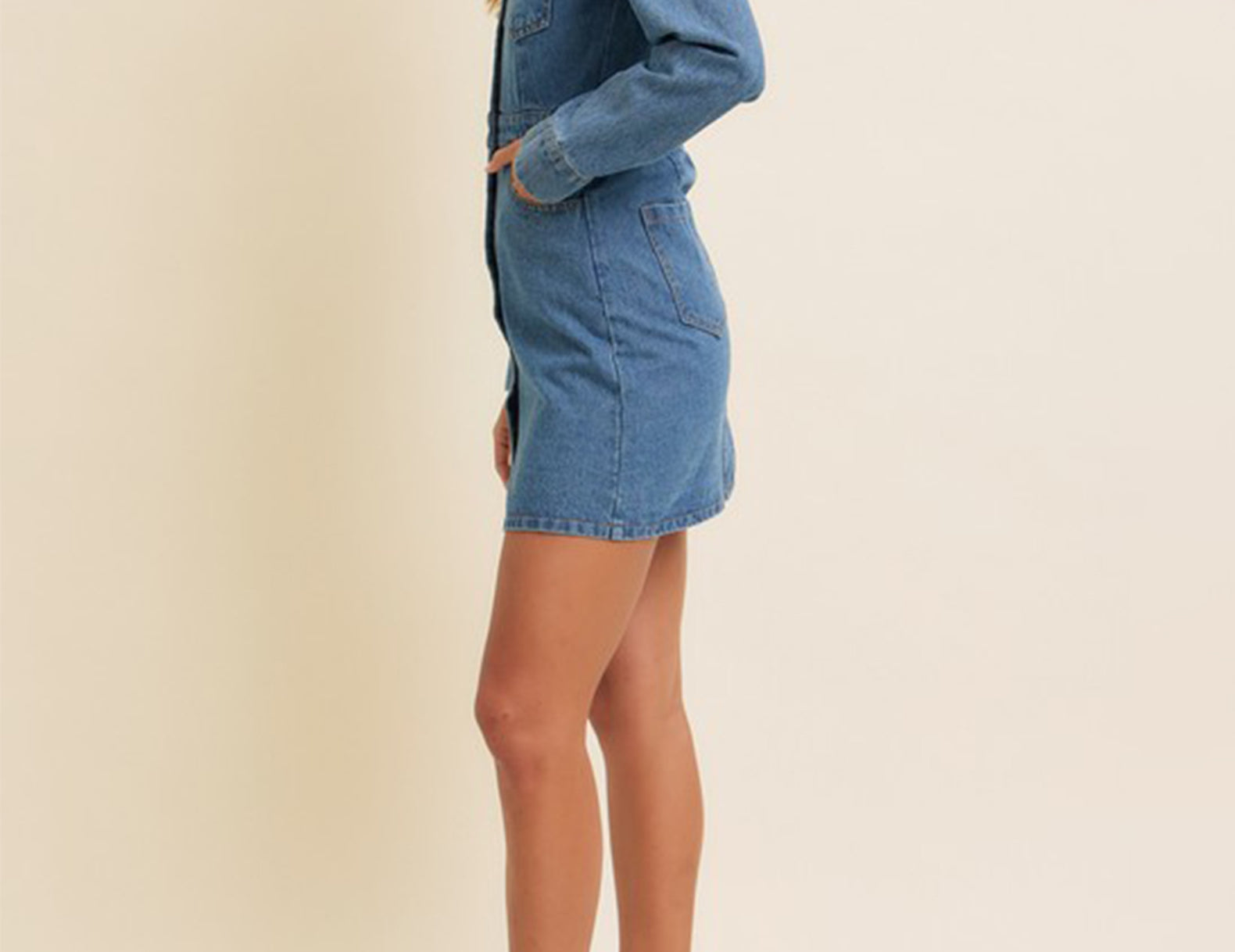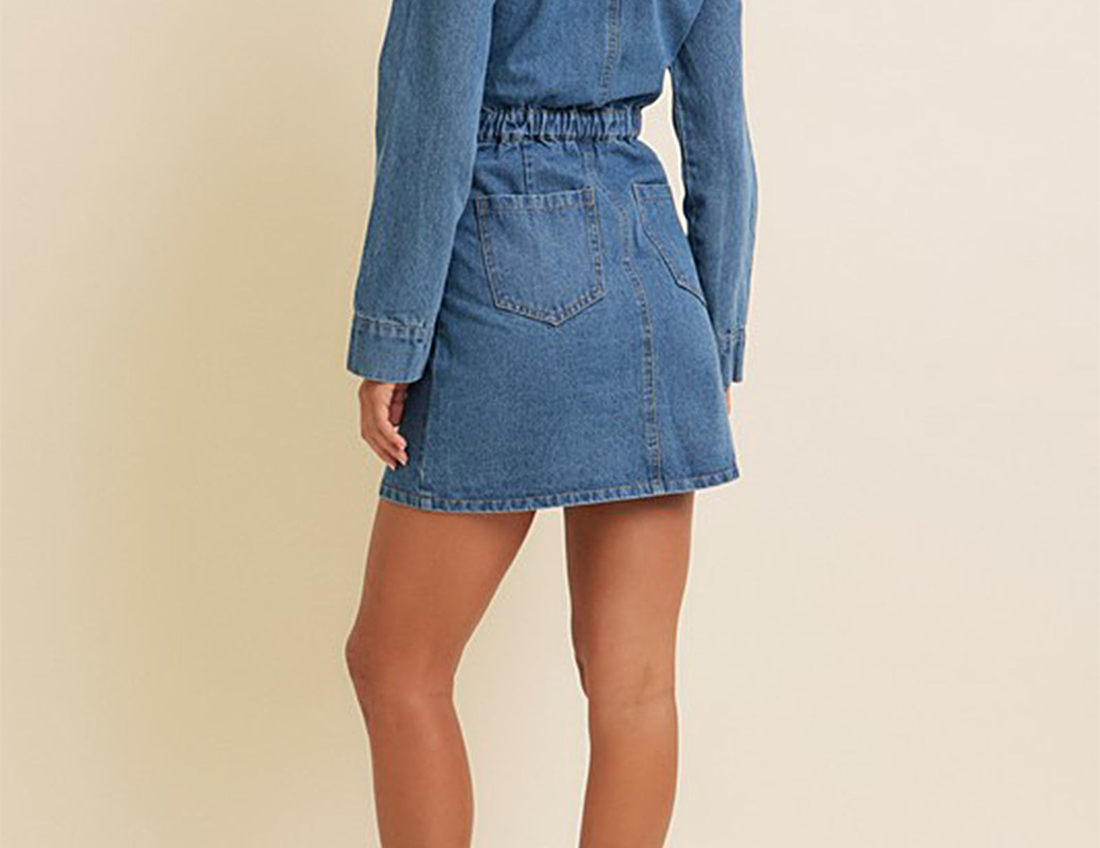 A denim dress for the vintage lover, the Alexia is designed in a mini-length, shirt dress fit with a buttoned front, classic collar and multiple pockets throughout. Cut from pre-softened, weighted blue denim with amber stitching and long sleeves - style this elevated denim dress with tall boots and gold jewelry.