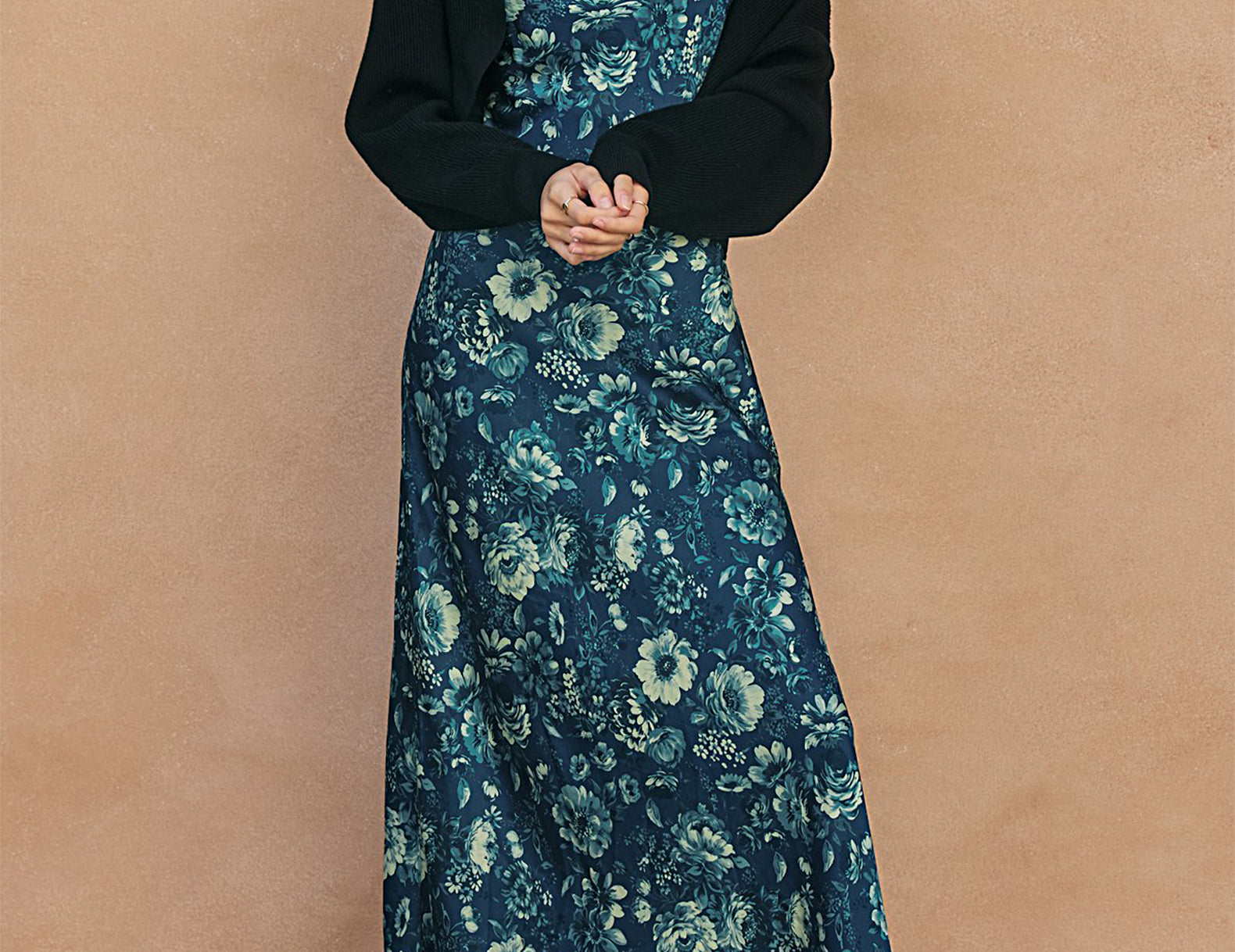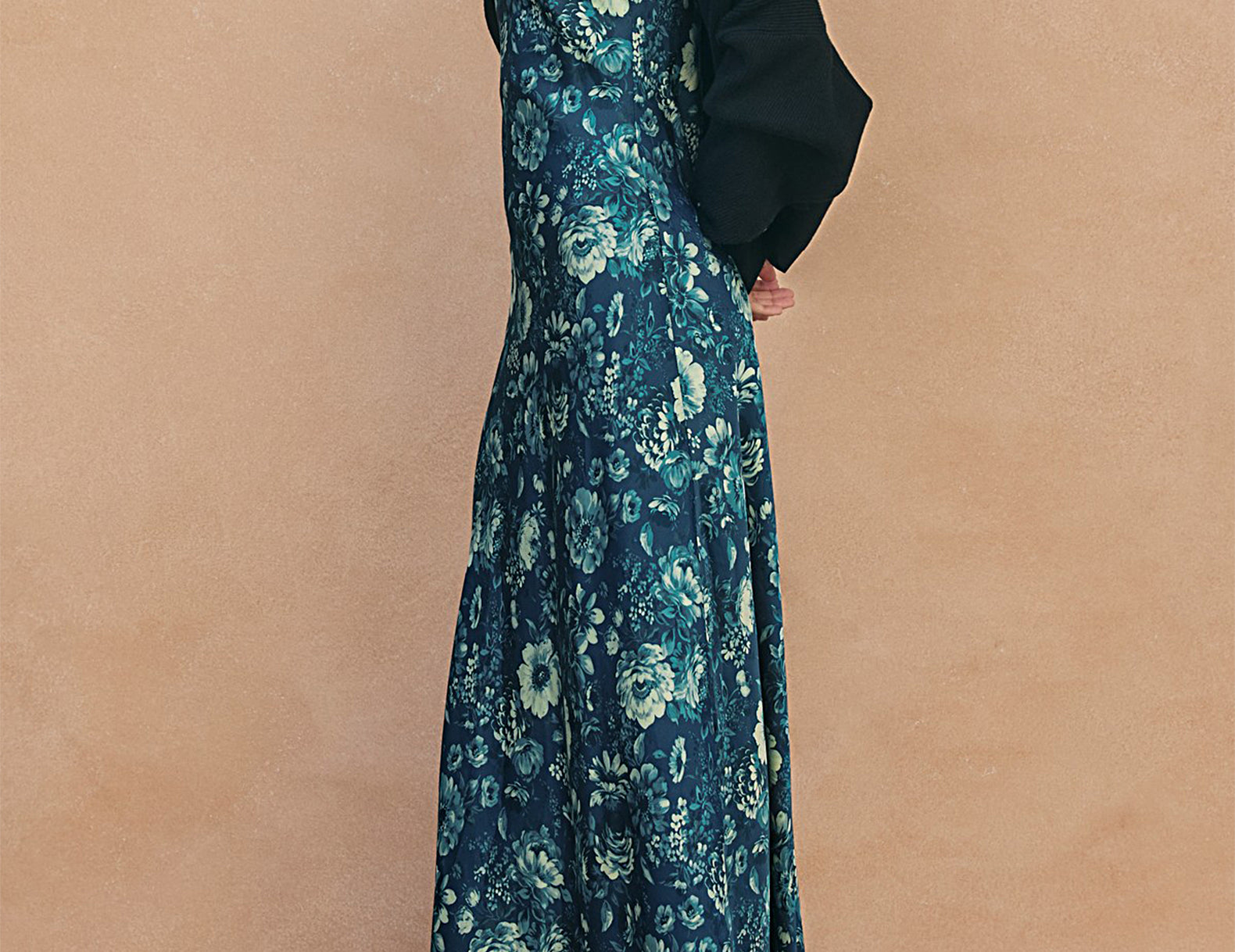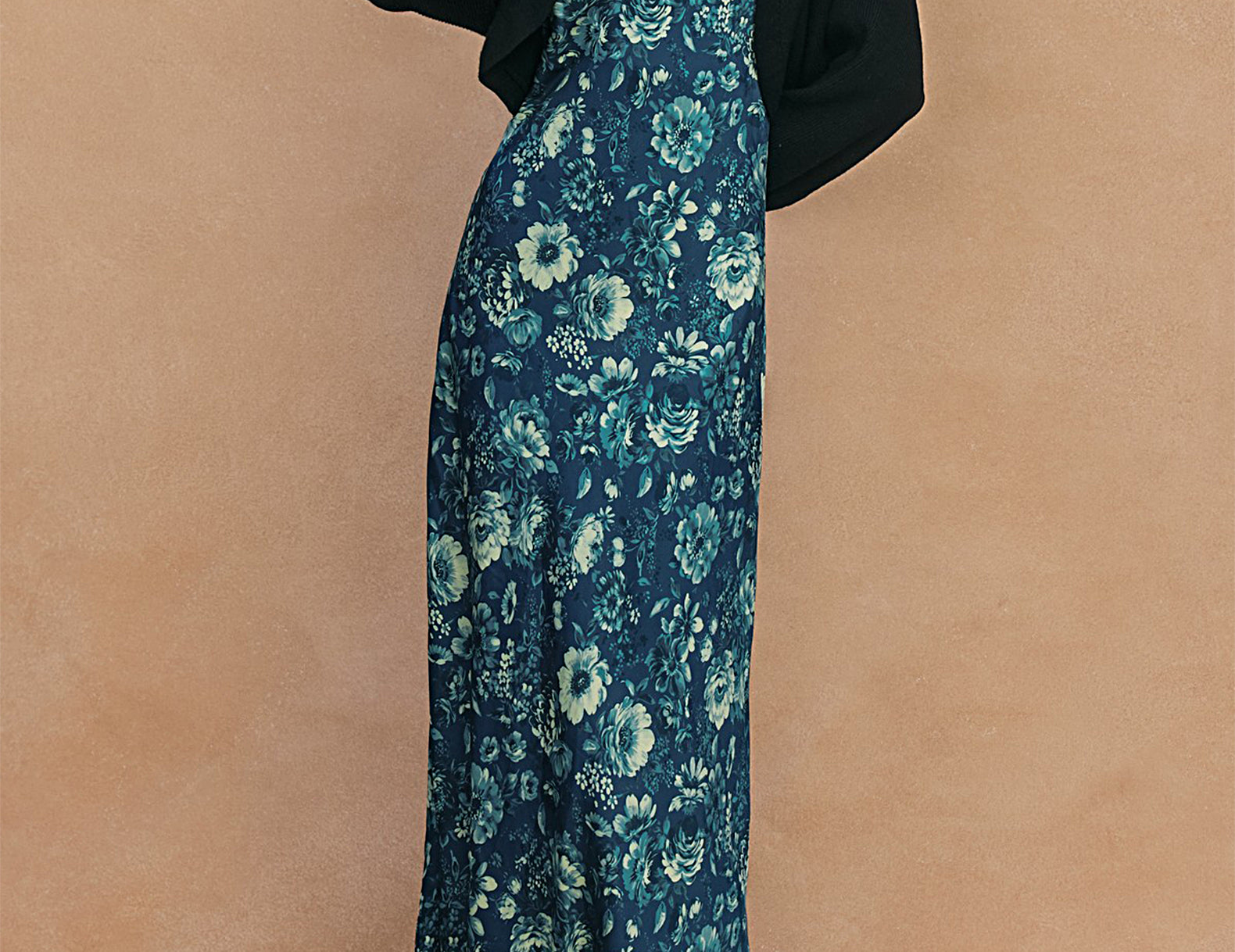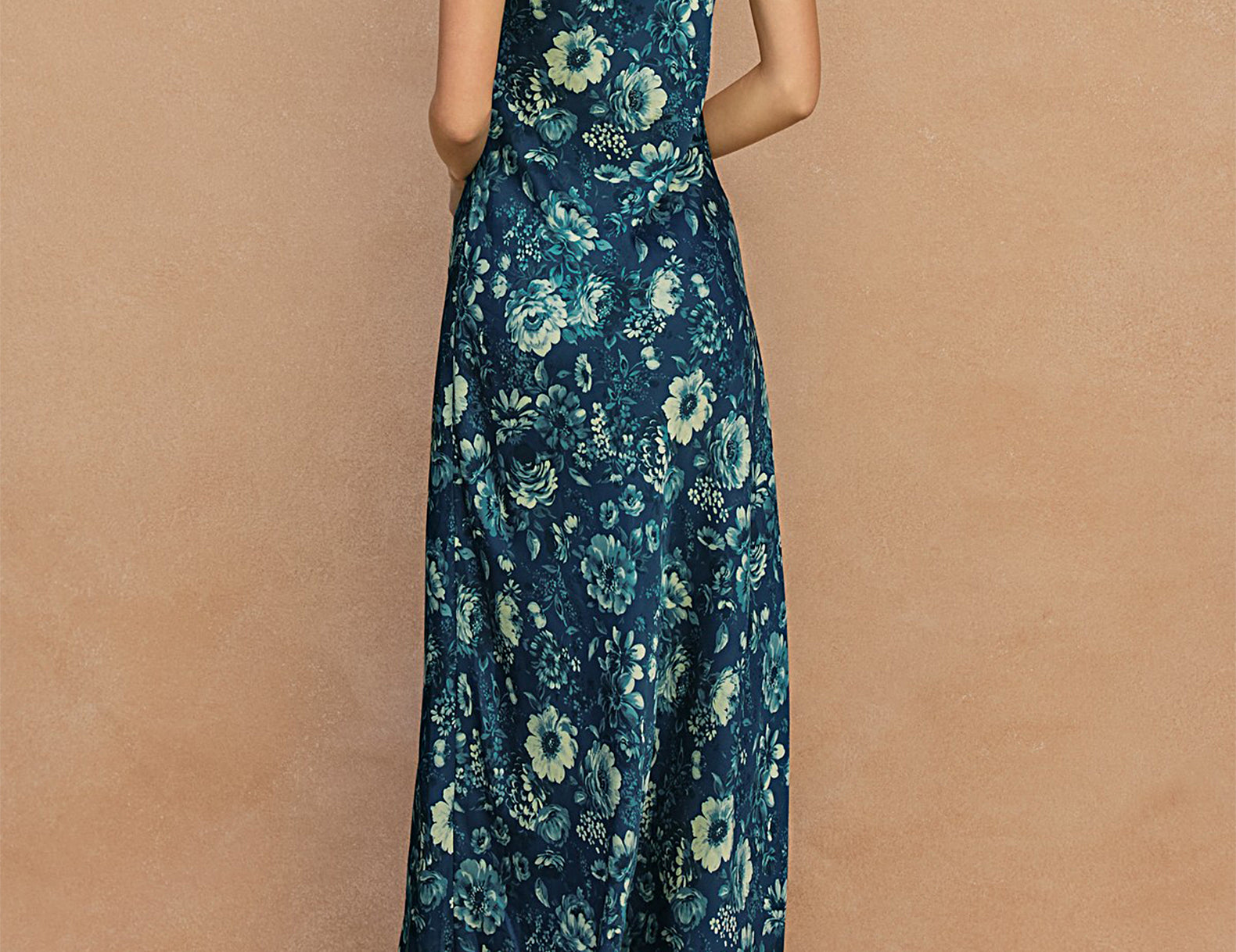 Done in an ornate floral print in tonal shades of indigo blue, the Amelia dress is cut from a fluid satin to a simple silhouette that falls softly near the ankles. It features a square neckline and narrow shoulder straps above a gently relaxed shape. Elevate this antique-inspired print with gold bangles and a bright lip, or pair it back with a soft ecru cardigan and brown leather boots.