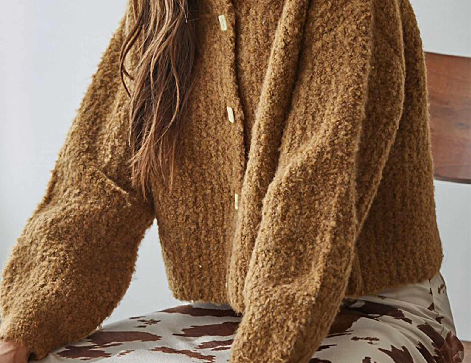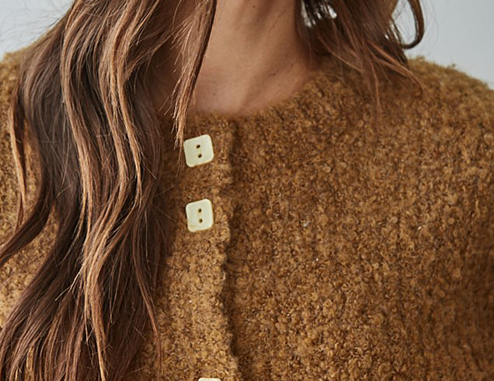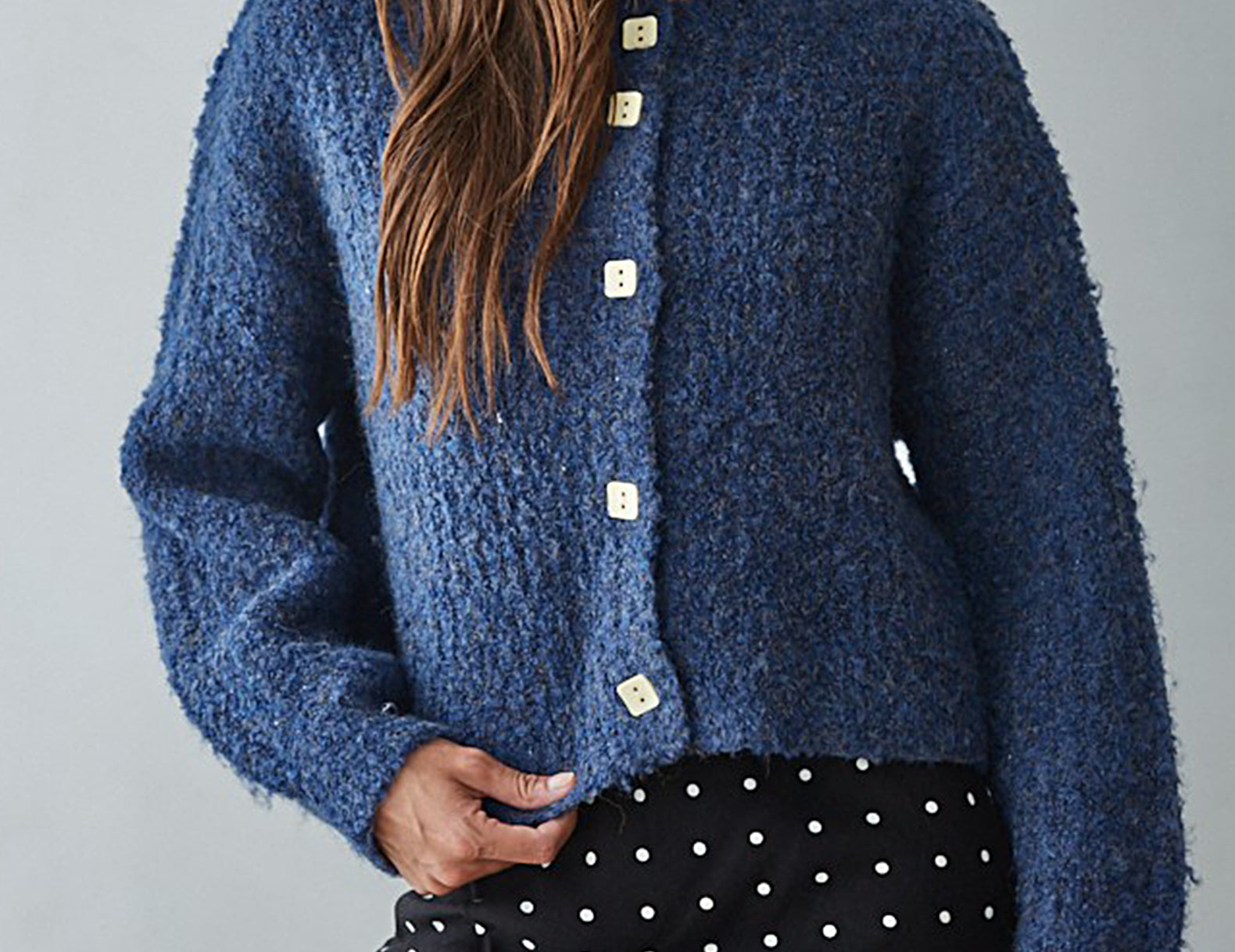An elevated, everyday cardigan, the Bailey sweater is delightfully soft and textured in a thick, weighted boucle knit, cut to a slouchy silhouette. Designed to be perfectly oversized in a semi-cropped fit, choose from warm ochre brown or indigo blue and slip this warm layer over a floral slip dress or your favorite jeans.