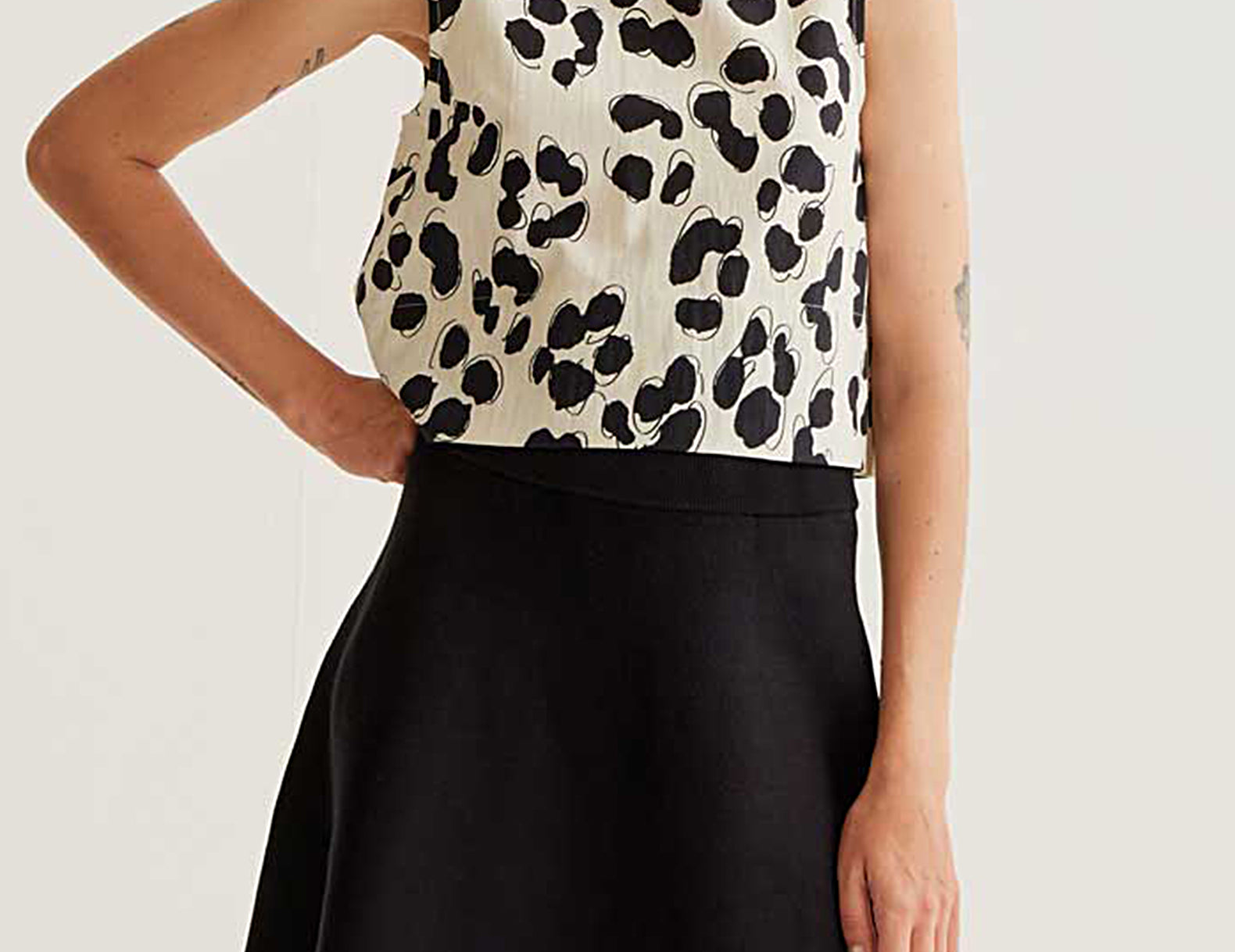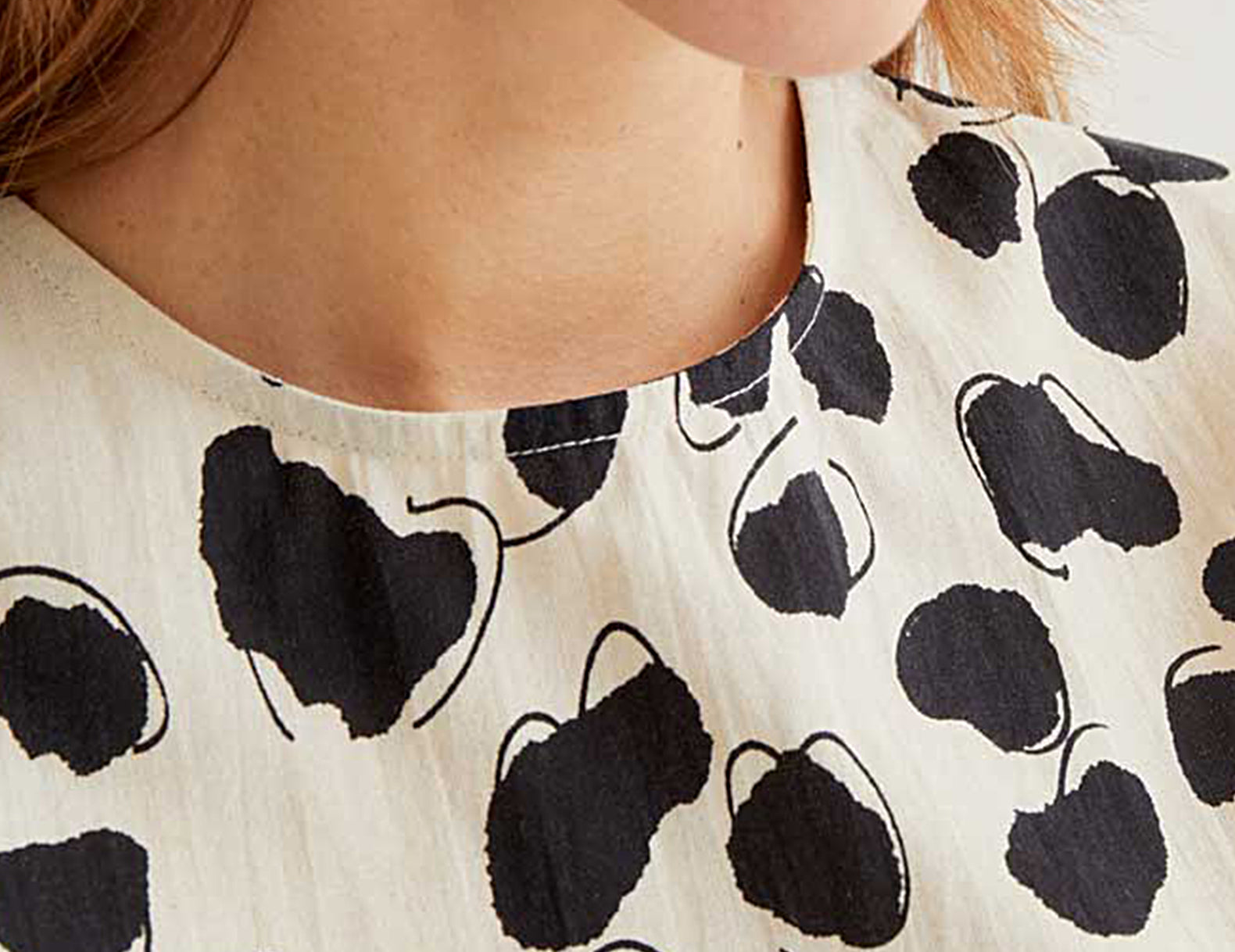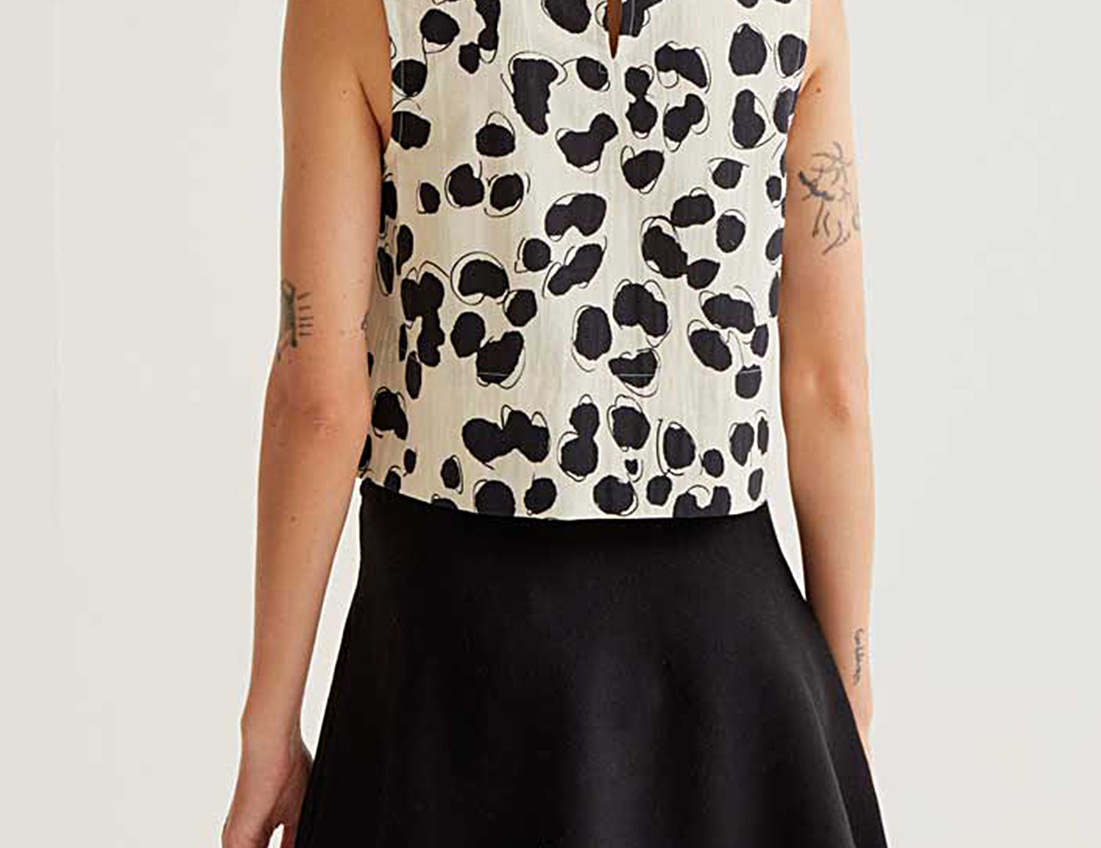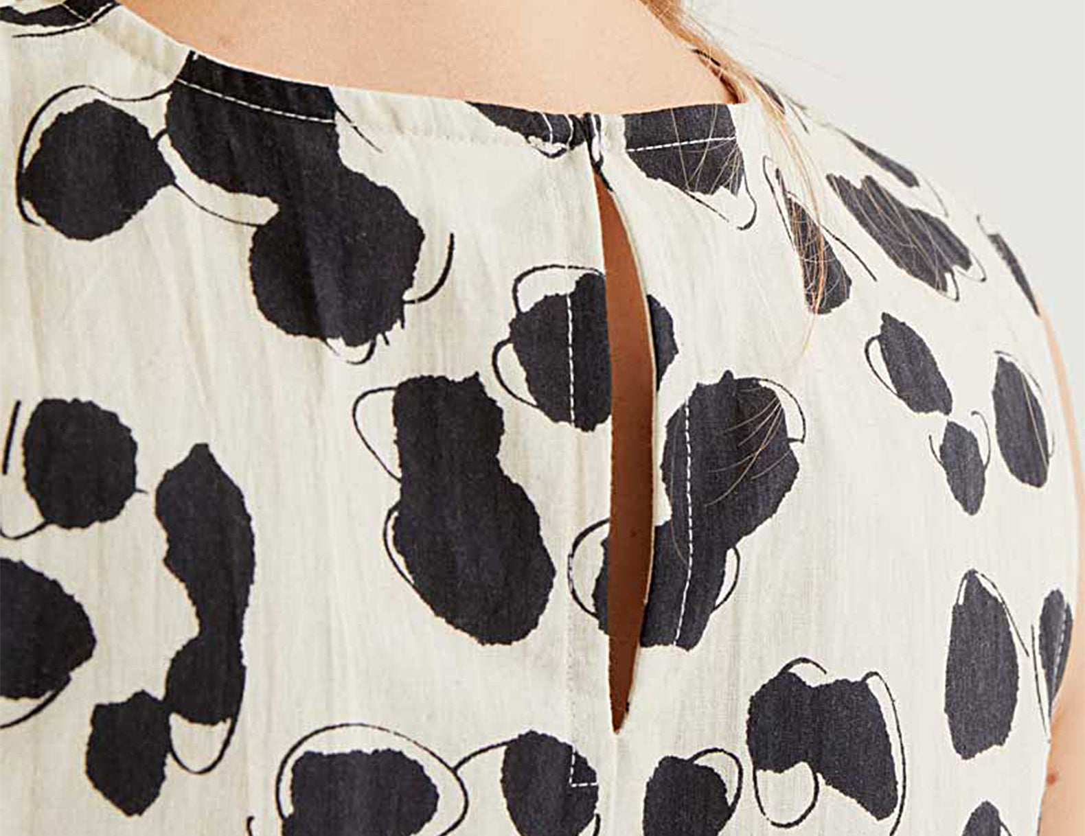 A fun print for mixing and matching, the Bennet top is done in an airy cotton that's speckled with artful spots in black against ivory. It's cut boxy and sleeveless with a high, crew neckline and a keyhole button closure at the back.