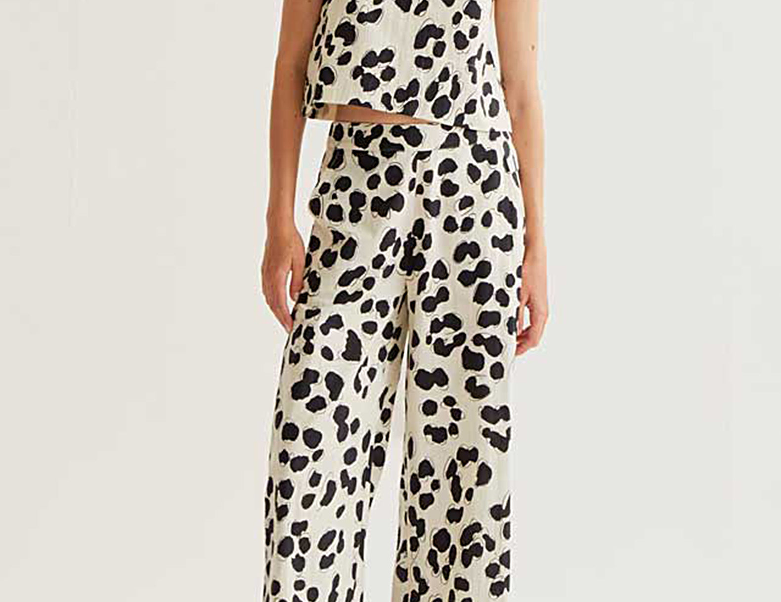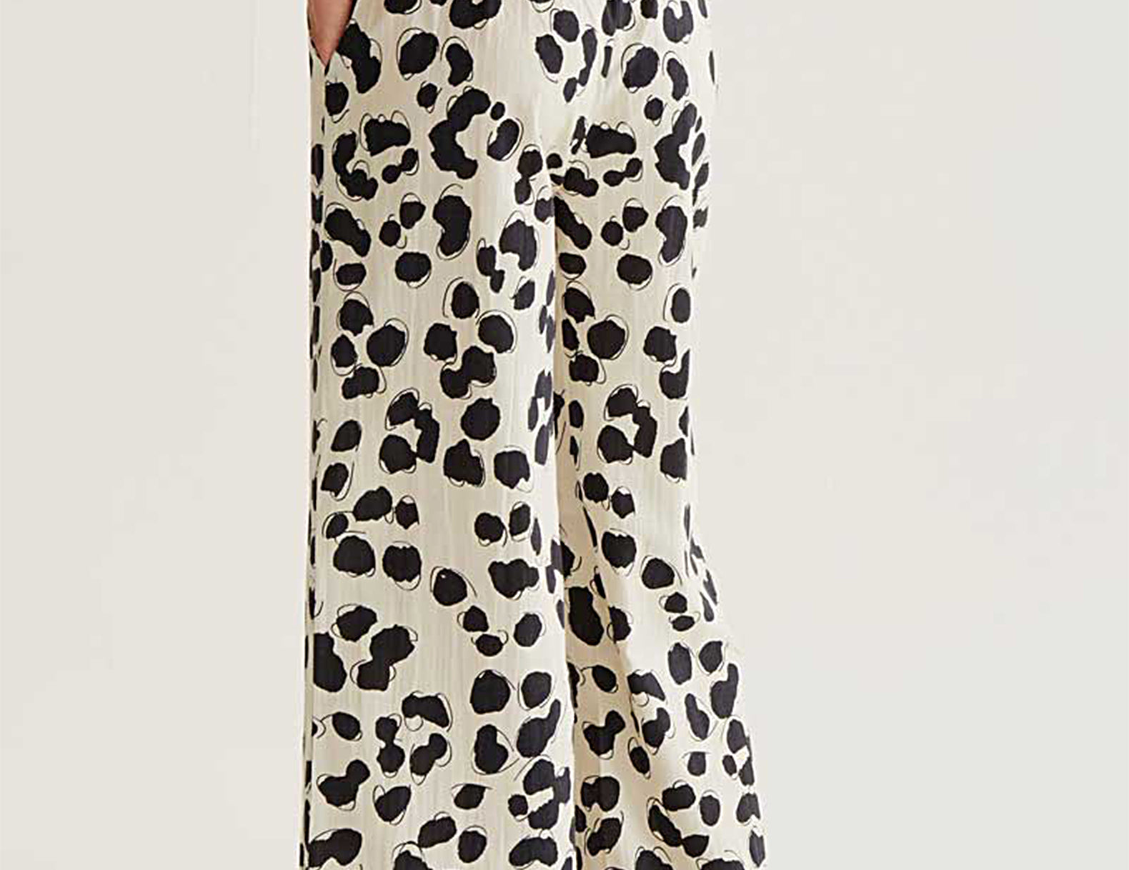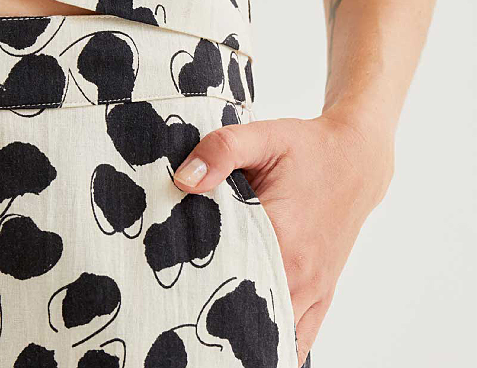 In an artful black + ivory speckled print, the Bennet pants are cut from airy cotton to a relaxed, wide-leg silhouette. The waist is mid-rise with a smooth front and elasticated at the back for an easy, pull-on fit.
