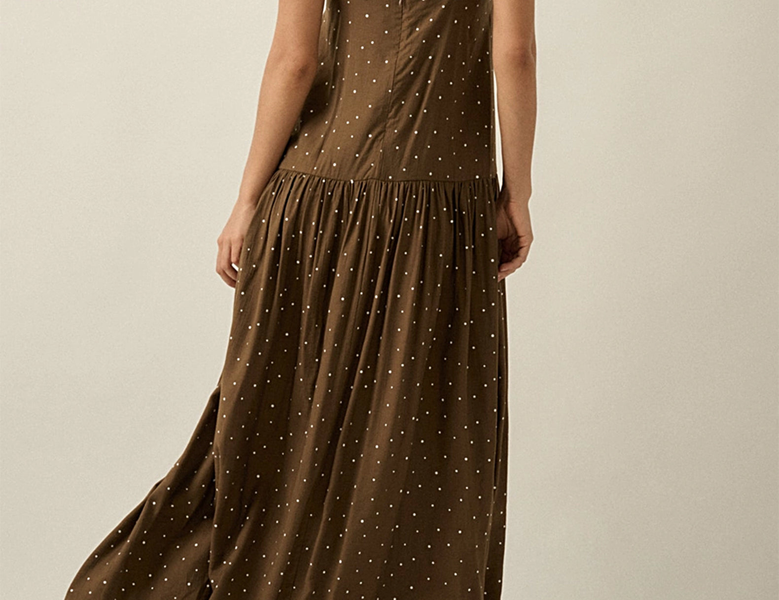 Blythe Chocolate Polka Dot Drop-Waist Sundress