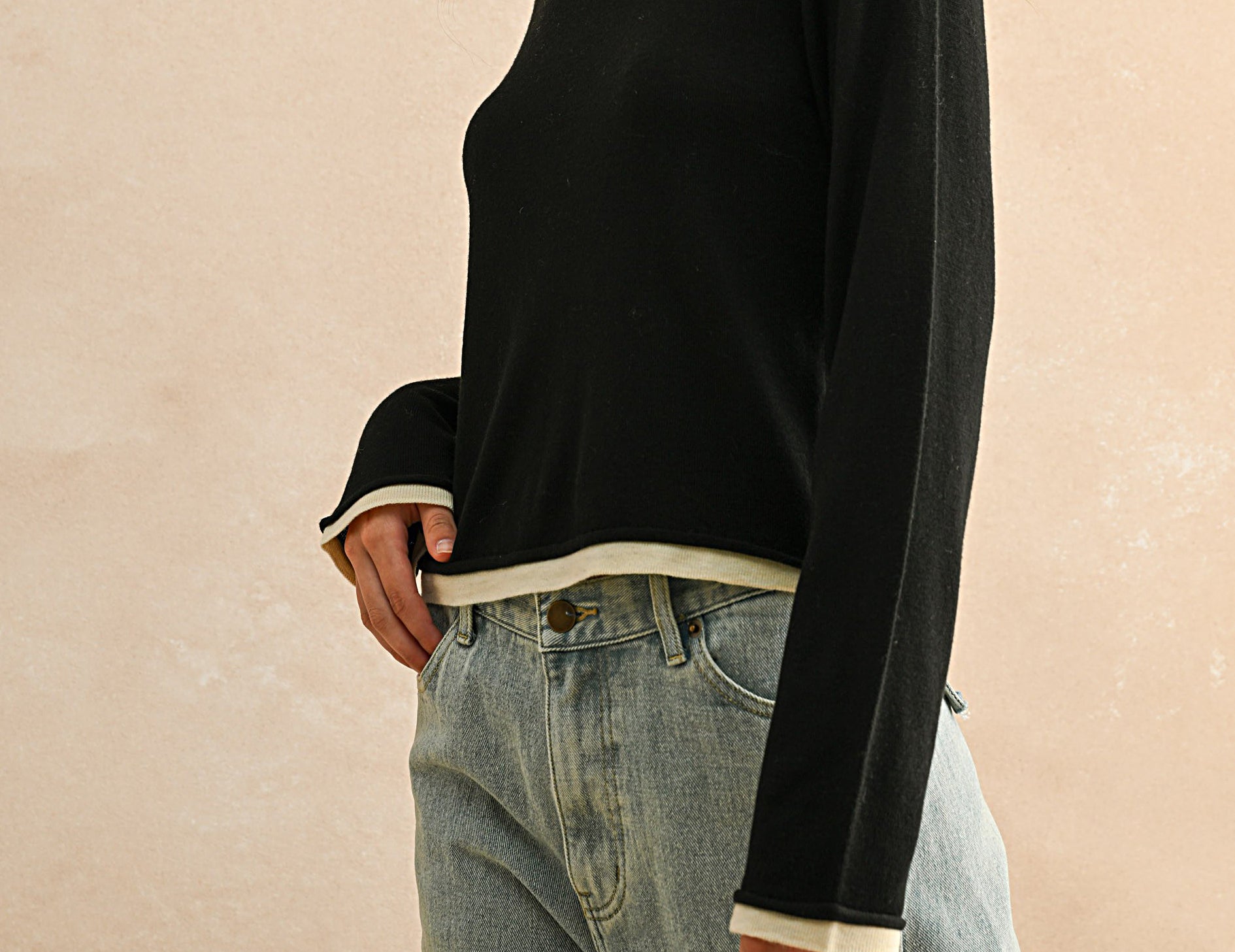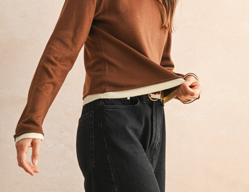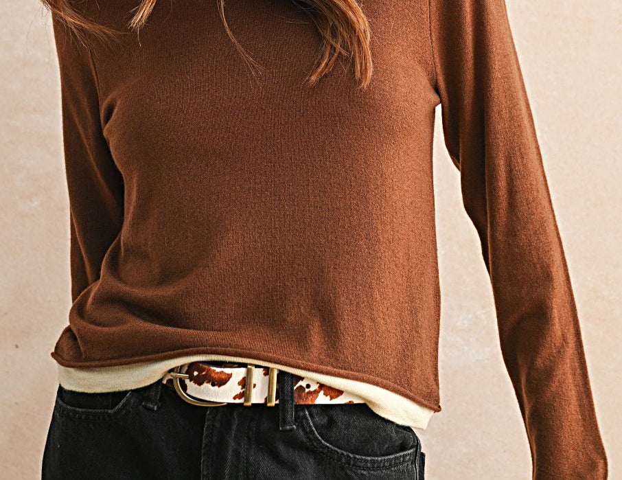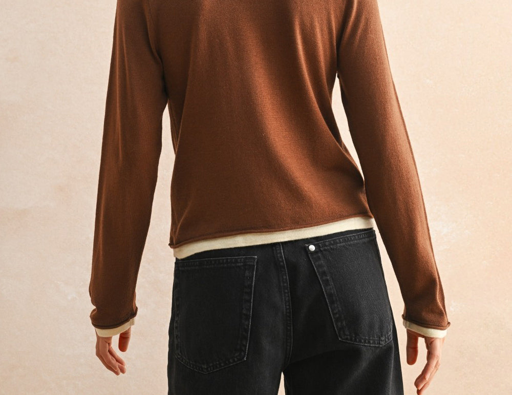 An elevated basic with endless versatility, the Brooklyn top is ultra-soft in a lightweight knit with cream trim at the collar, cuffs, and hemline for a layered look. So easy to wear in a relaxed, hip-grazing silhouette in rich chocolate brown or onyx black, this staple long-sleeve top is a cool-weather favorite with denim, trousers, and utility pants.