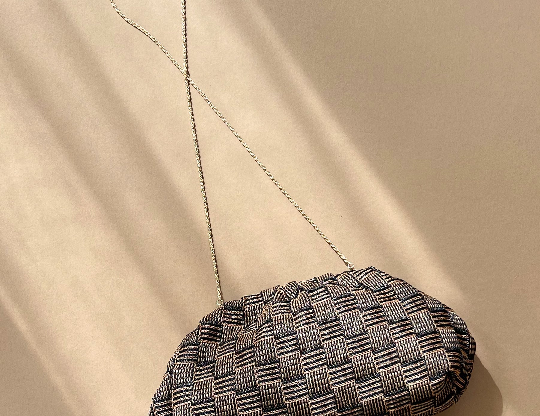 - Removable gold chain shoulder strap
