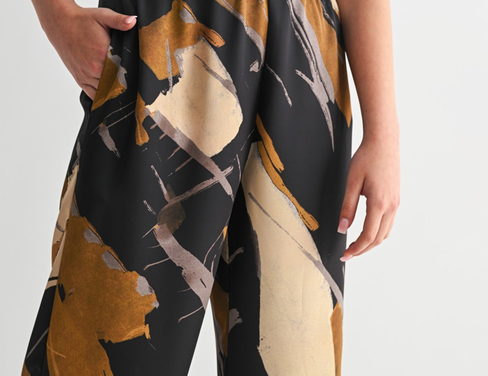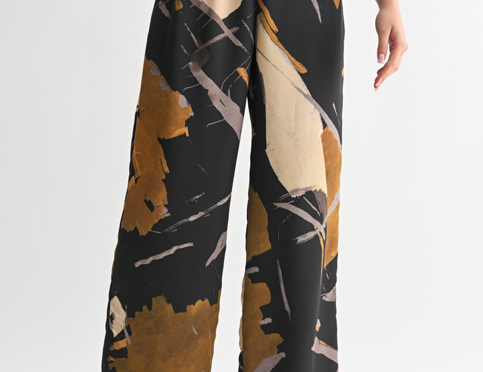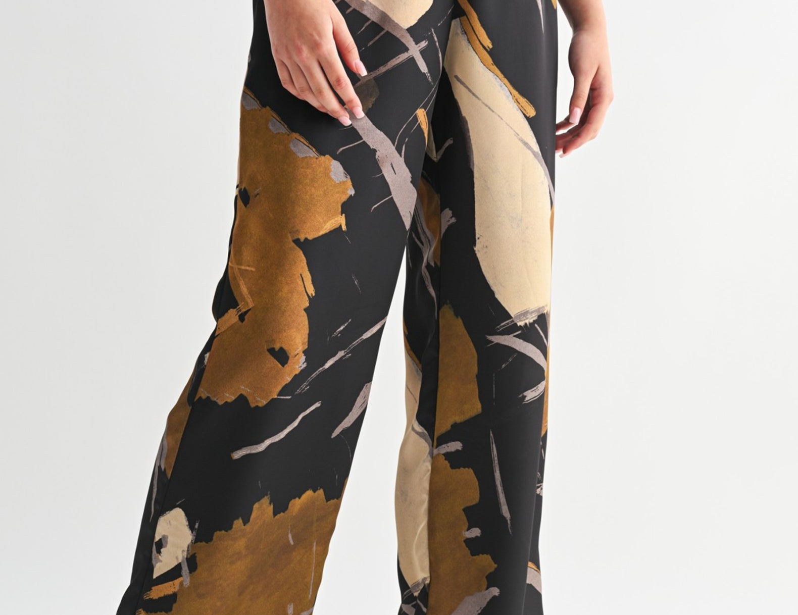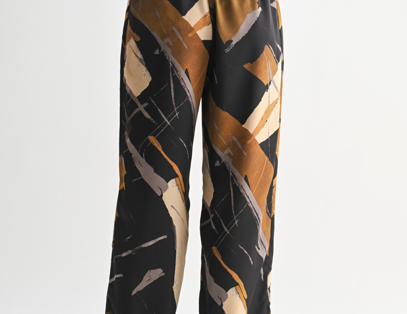 Bold and artful in an abstract print, the Danica satin pants make a statement without compromising comfort. They feature a billowy silhouette, an elasticated waist for an easy, pull-on fit, and pockets at the sides. Done in earthy neutrals, this print is easy to pair with chunky knits in grey or ivory, denim or linen button-ups, or try pattern mixing with a neutral striped tee.