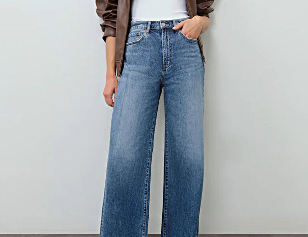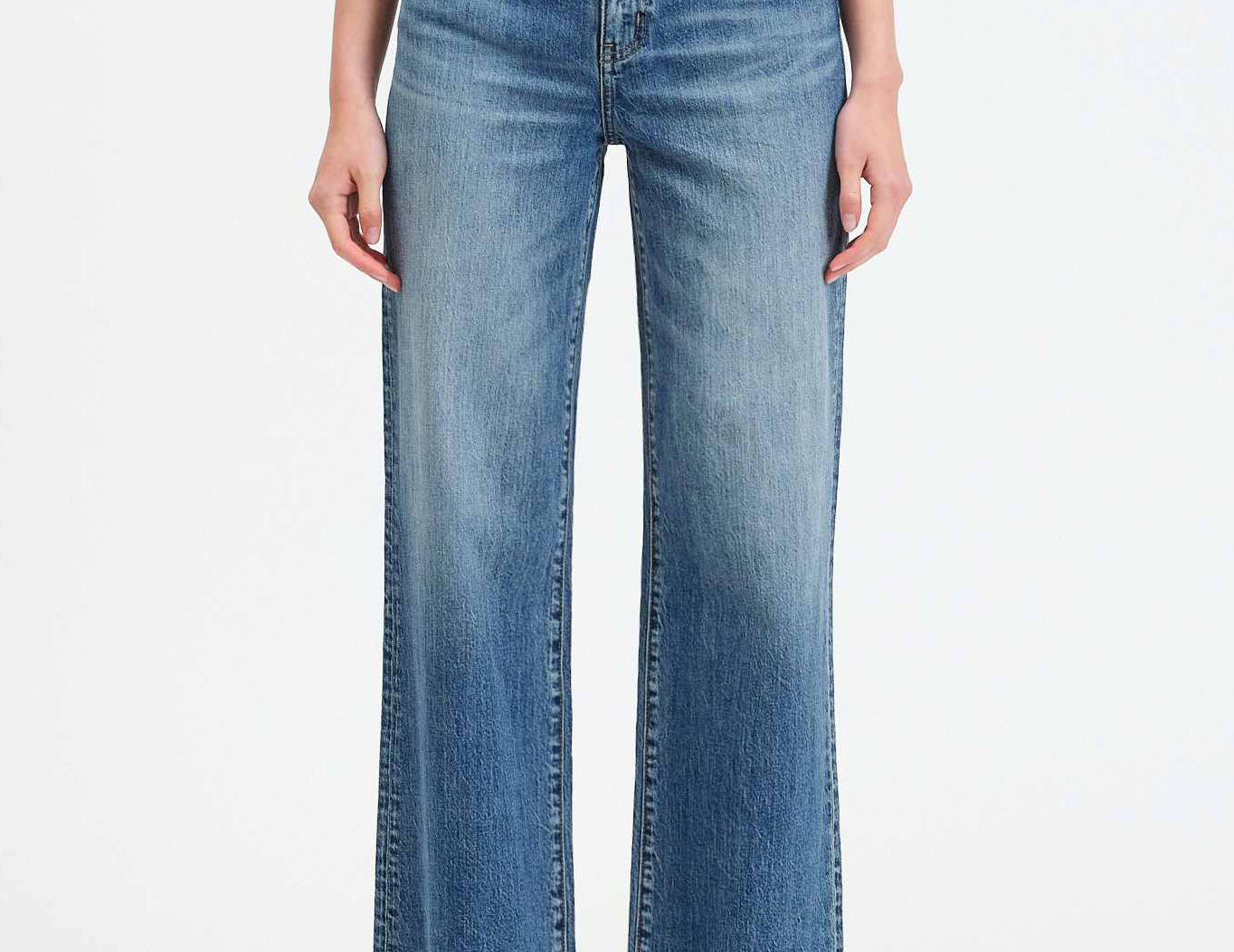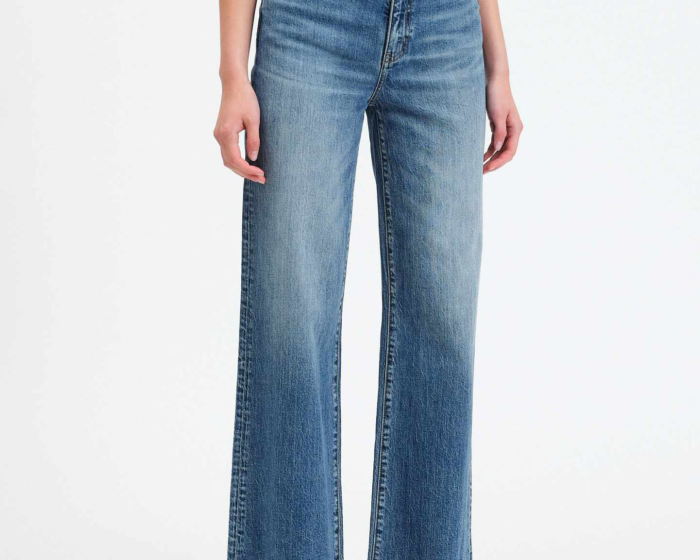 Ridiculously soft and weighted for a smooth and structured fit, the Far Out jeans from Daze are constructed to comfortably hug your body in a modern wide-leg, high-rise silhouette. The medium vintage wash denim is distressed at the top for a lived-in feel, with five pockets to finish. With an elongated inseam and raw hemlines, these jeans are ideal for heels, platforms or heeled boots.