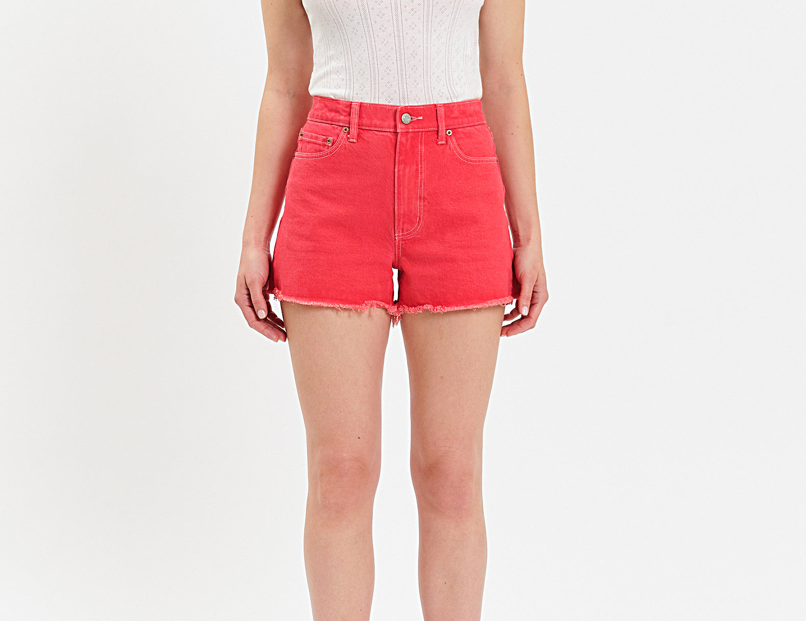 A pop of color for warmer days, the Troublemaker denim cut-off shorts feel like a vintage staple. They feature a high-rise waist and a short (but not too short) clean-cut hemline. They're cut from Daze's Comfort Stretch cotton blend denim, so they hold their shape but feel broken in from day one. Pair these chili red cut-offs with an oversized tee and sneakers, or a striped tank and leather flats.