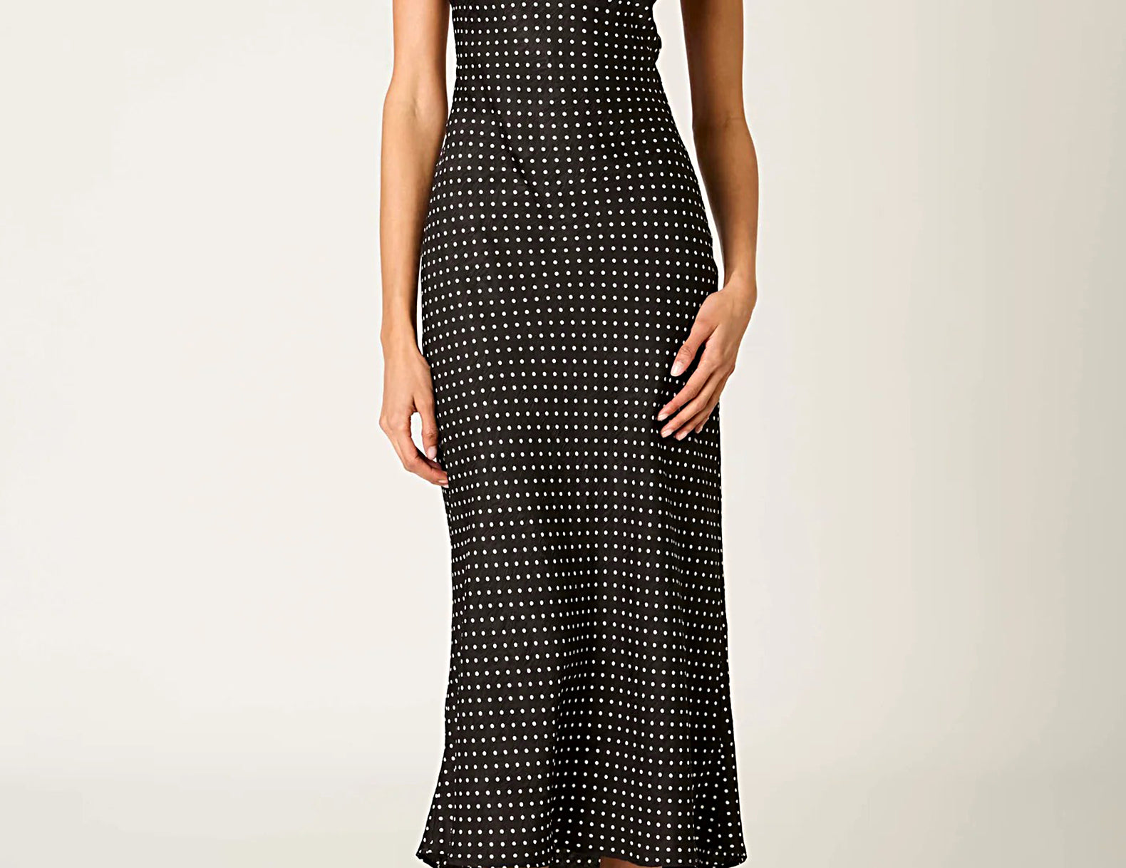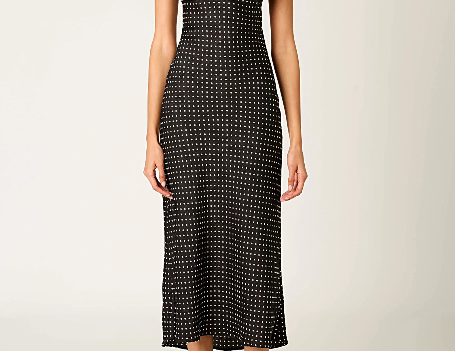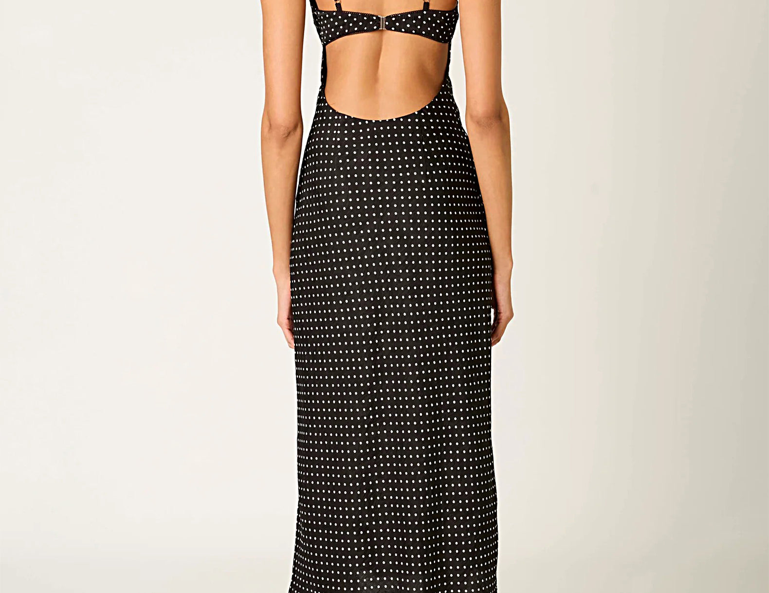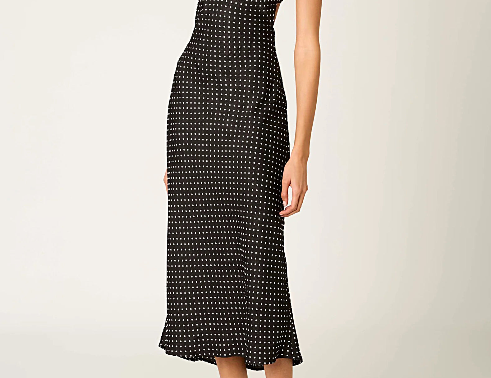 A charming slip dress for your forever closet, Doheny is an effortless choice for any season. It features a classic black and white polka dot print throughout, a scooped, peekaboo back, and delicate scalloped trim along its edges. Pair the satin dress with loafers and a blazer for the office, heels and a bright lip for happy hour, or sandals and a tote for spring outings.
