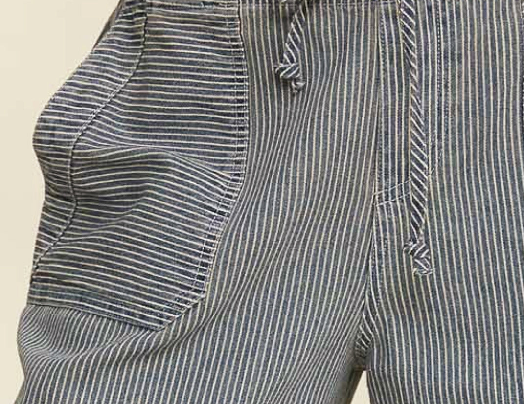 Cut from a soft, lightweight cotton denim, these voluminous railroad stipe pants are an easy, everyday pick you'll reach for again and again. They feature a relaxed, drawstring waist above oversized patch pockets at the front and back. Pair this washed, blue-and-white stripe with a chunky, buttoned sweater in a poppy color, or try it with a slim, cropped tee and silver jewelry.