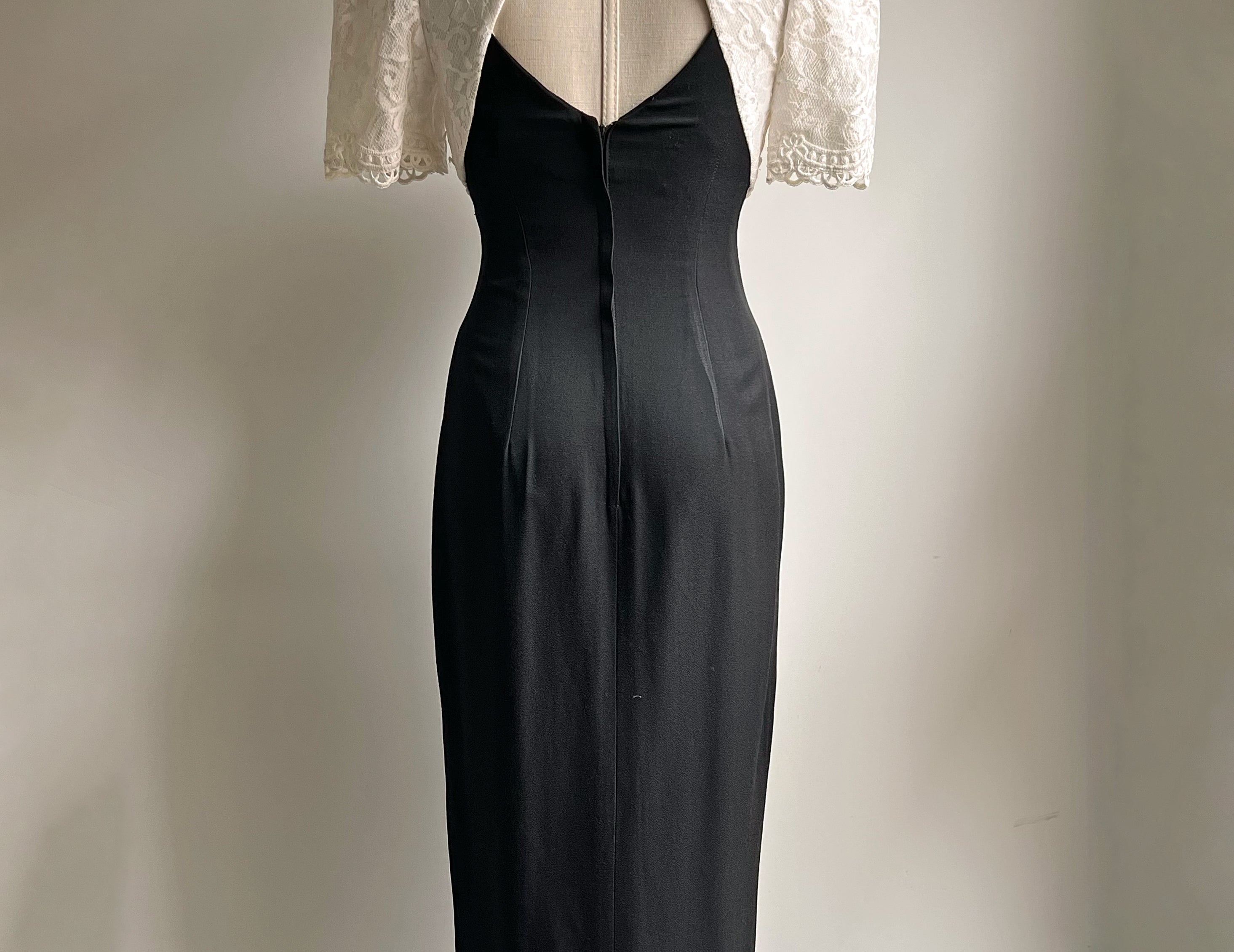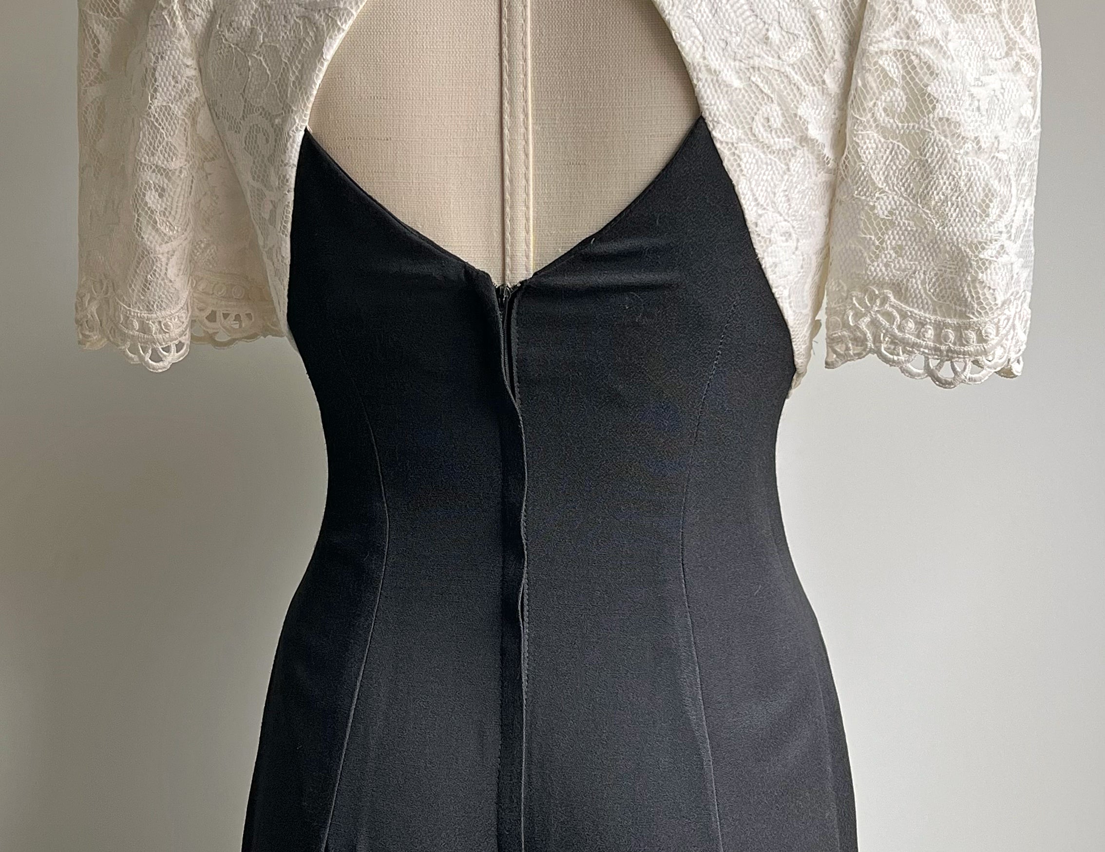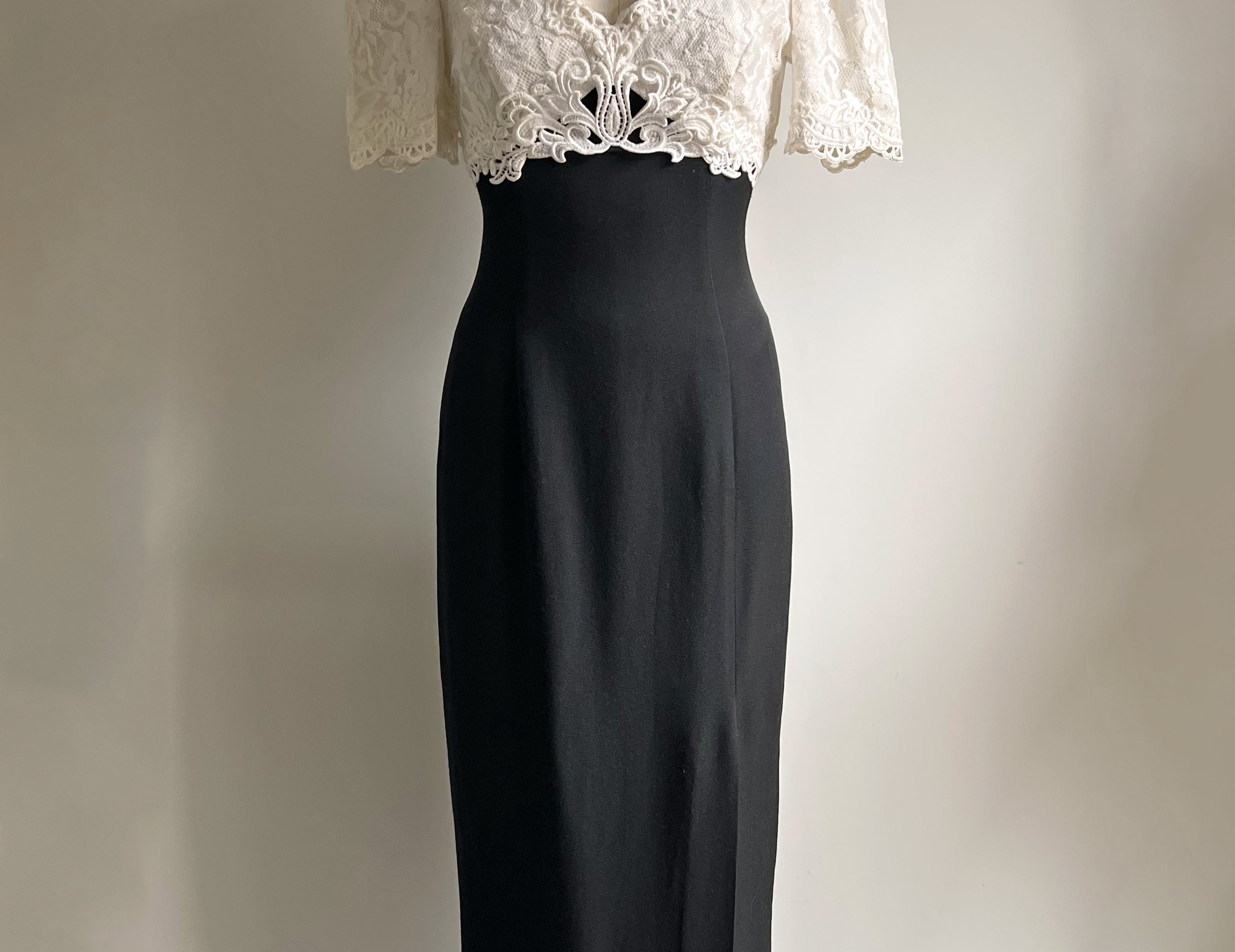 Flore Vintage Black + White Lace Overlay Evening Dress