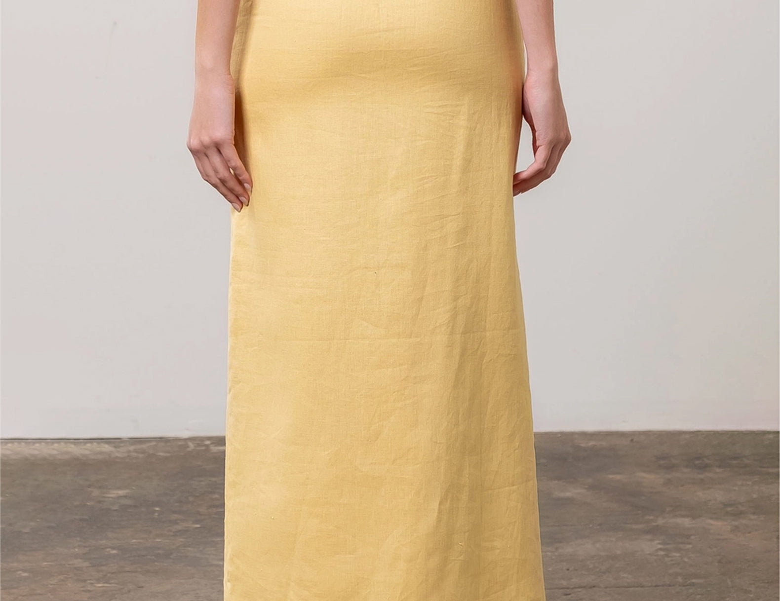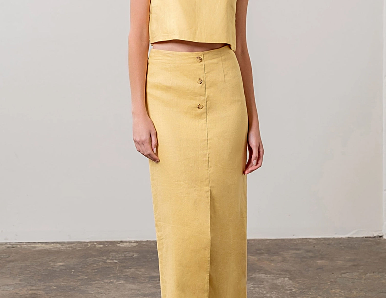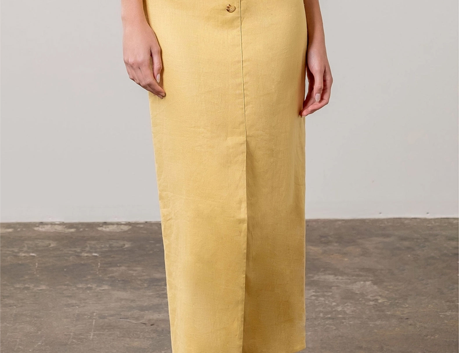 Grazia Yellow Linen Pencil Midi Skirt