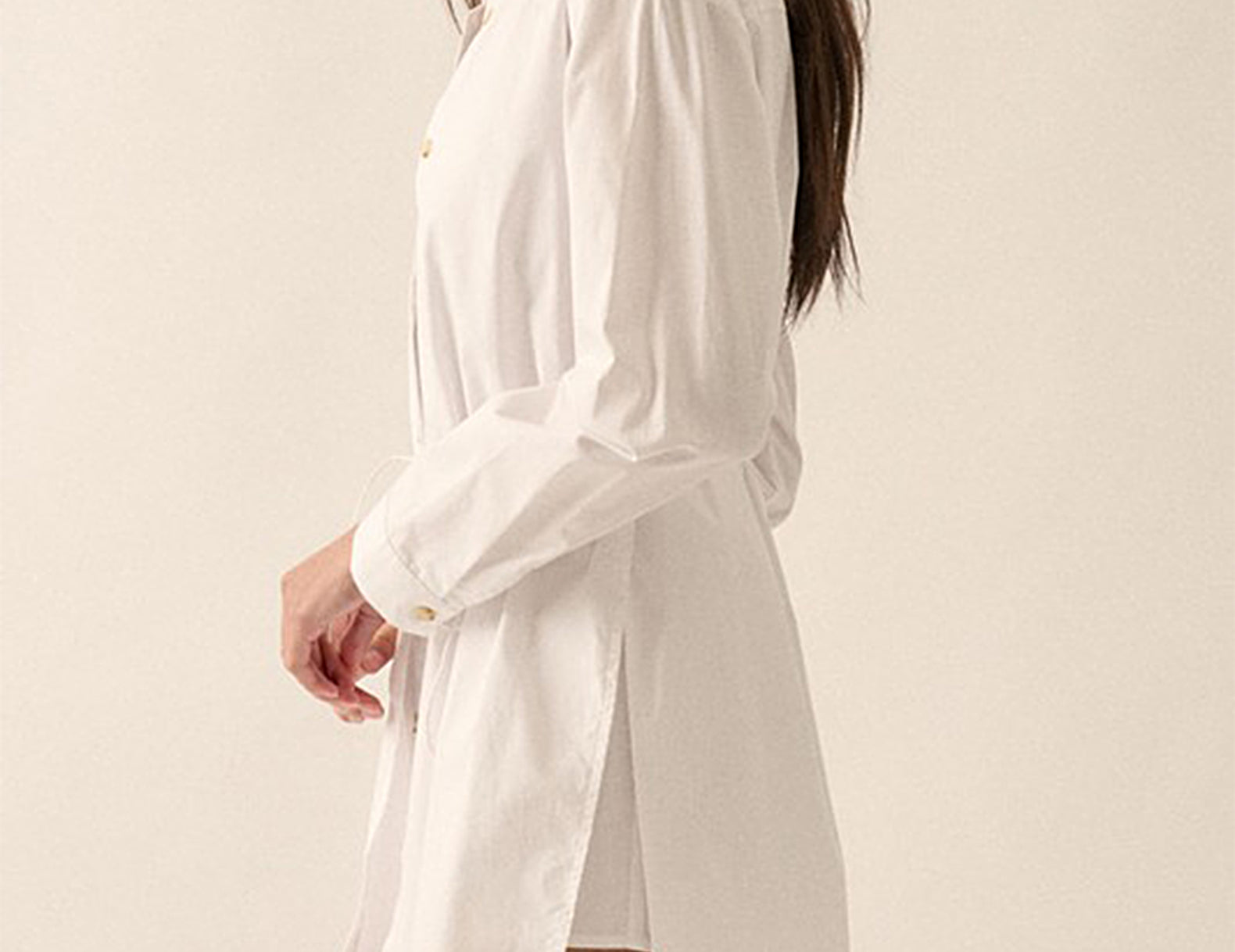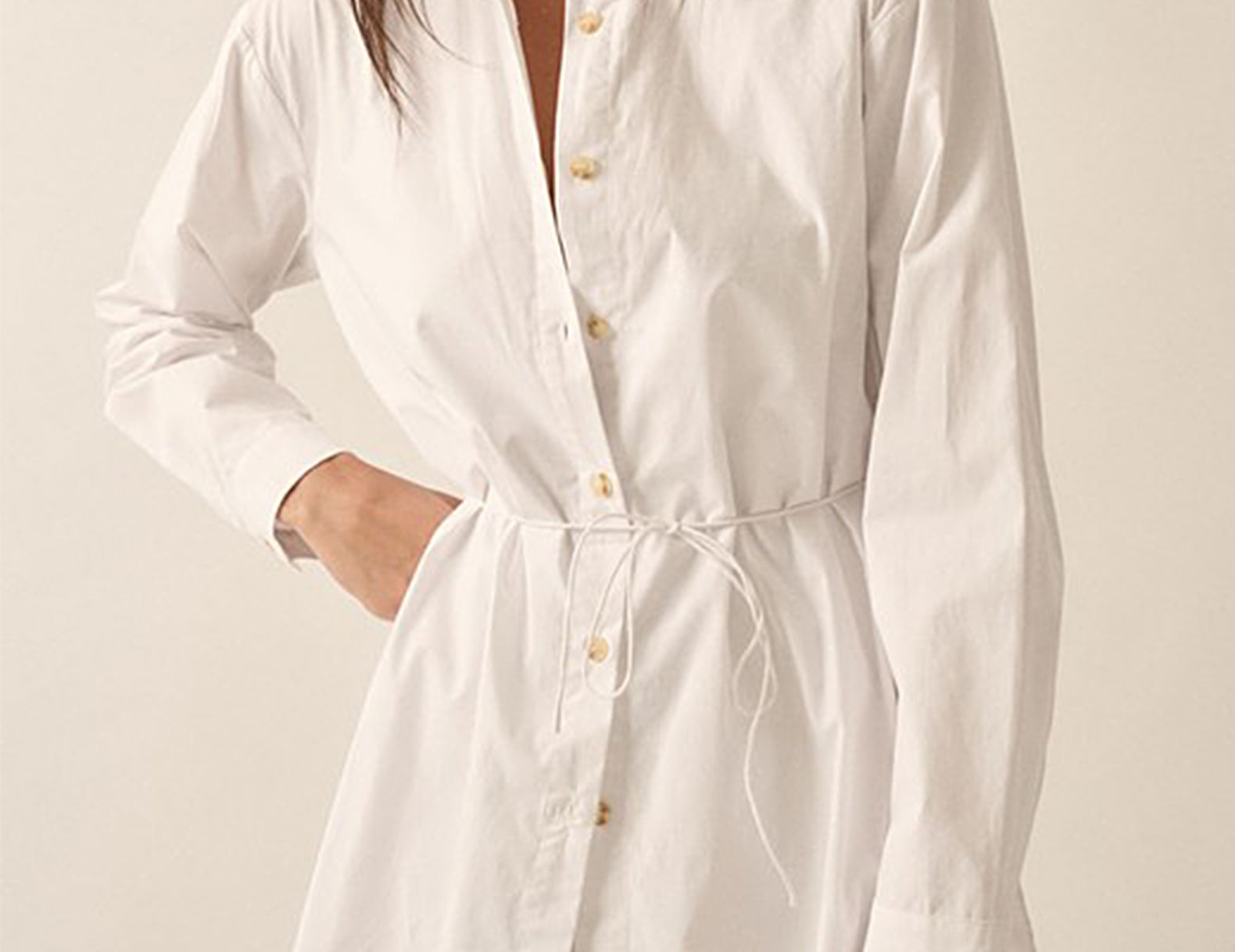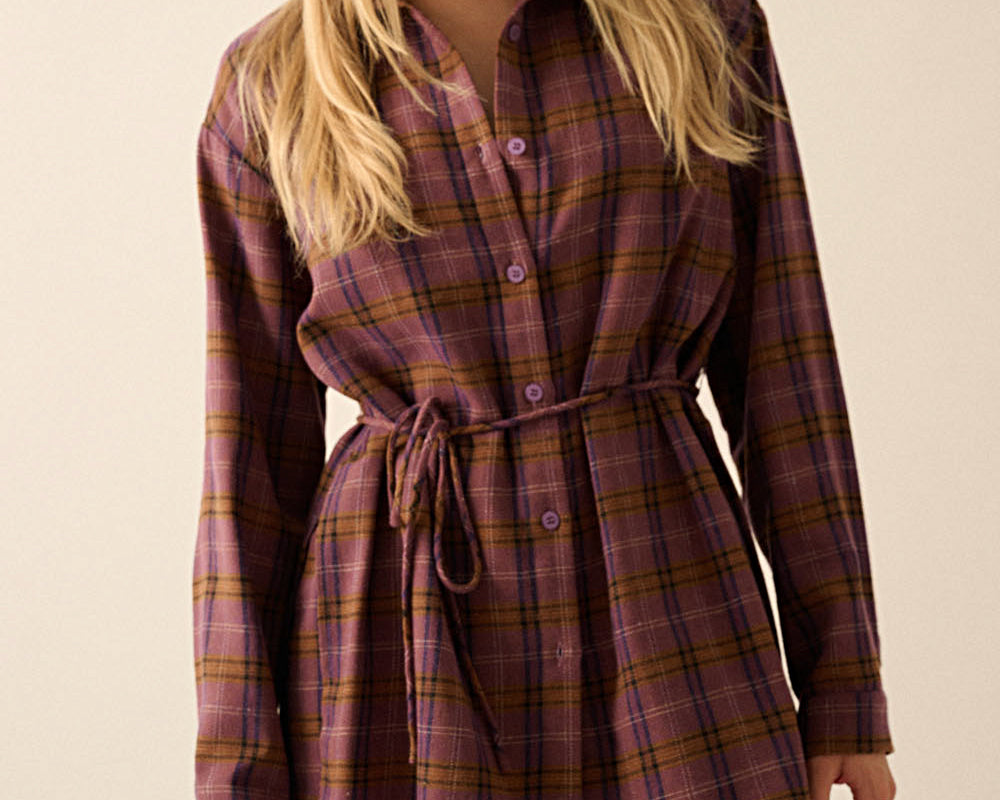Cool + polished with buttons from top to bottom, this menswear-inspired romper features a classic collar, buttoned cuffs, and a billowy shirt tail. Shaped with a slim tie and layered with shorts underneath, try this elevated one-and-done in crisp white cotton or soft, dusty plum flannel.