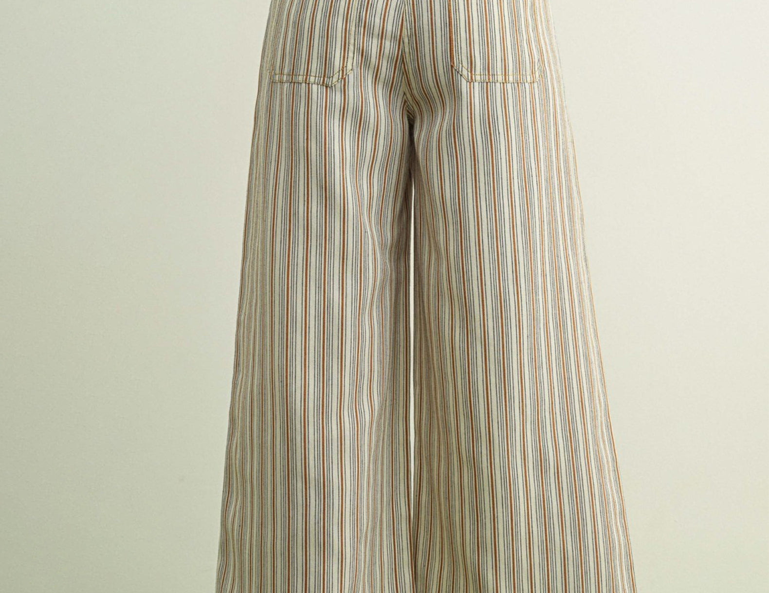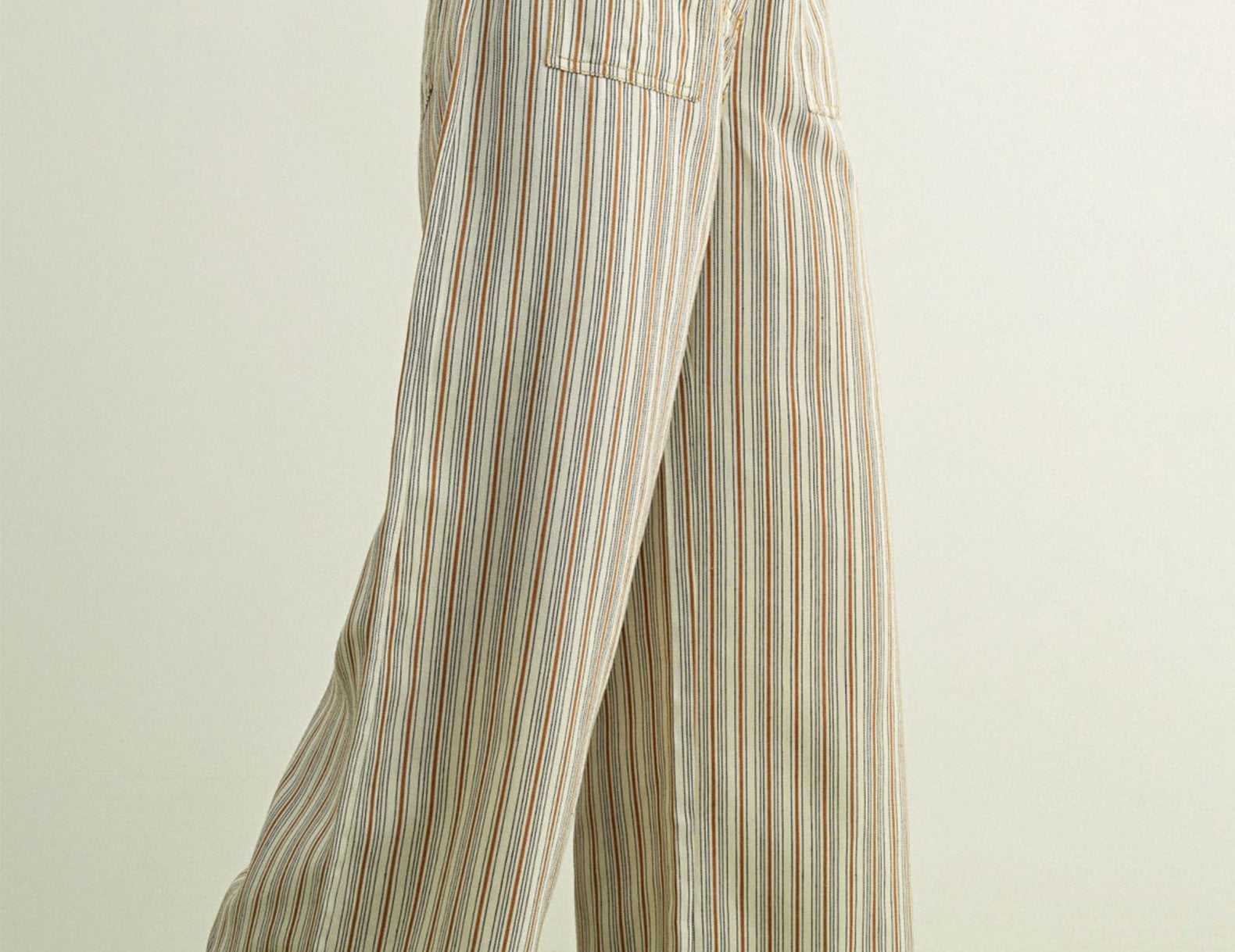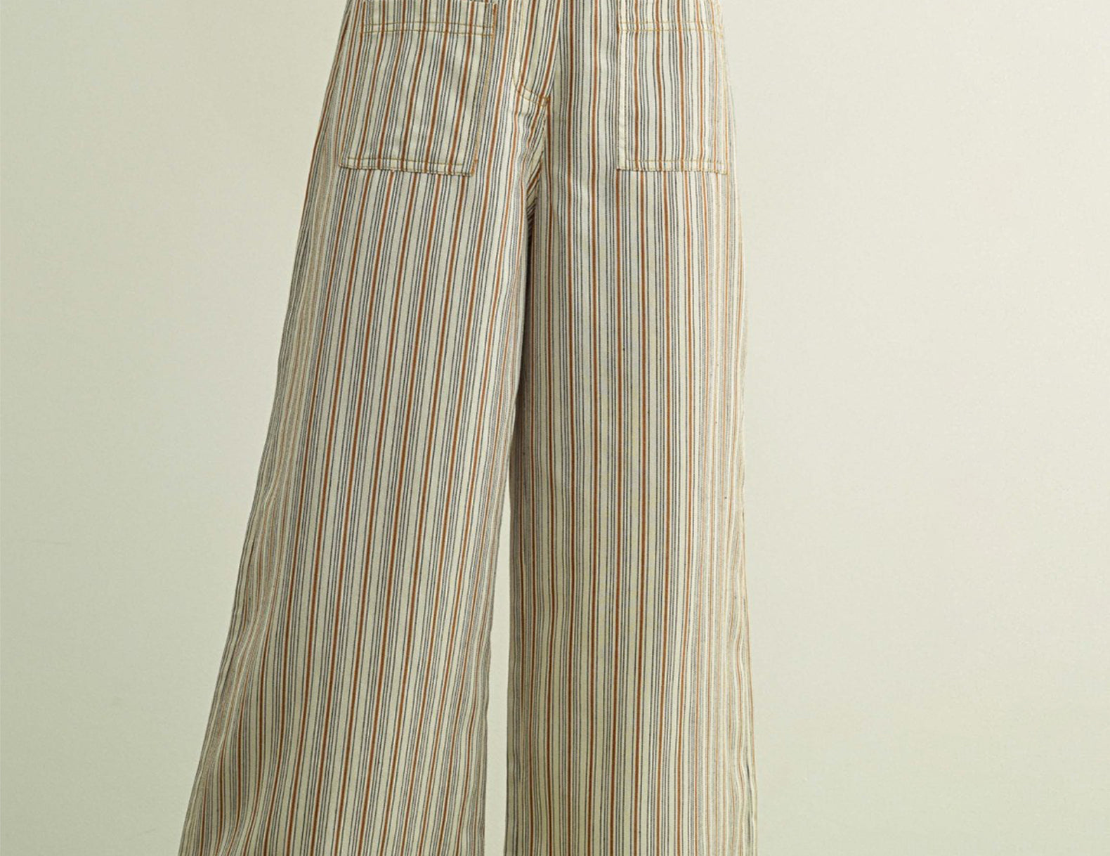 We love a wide-leg striped pant, and Inaya is no exception. They're cut from a lightweight cotton blend in an irregular, vertical stripe in black and dark mustard against ecru. They sit high on the waist, with patch pockets at the front and back.
