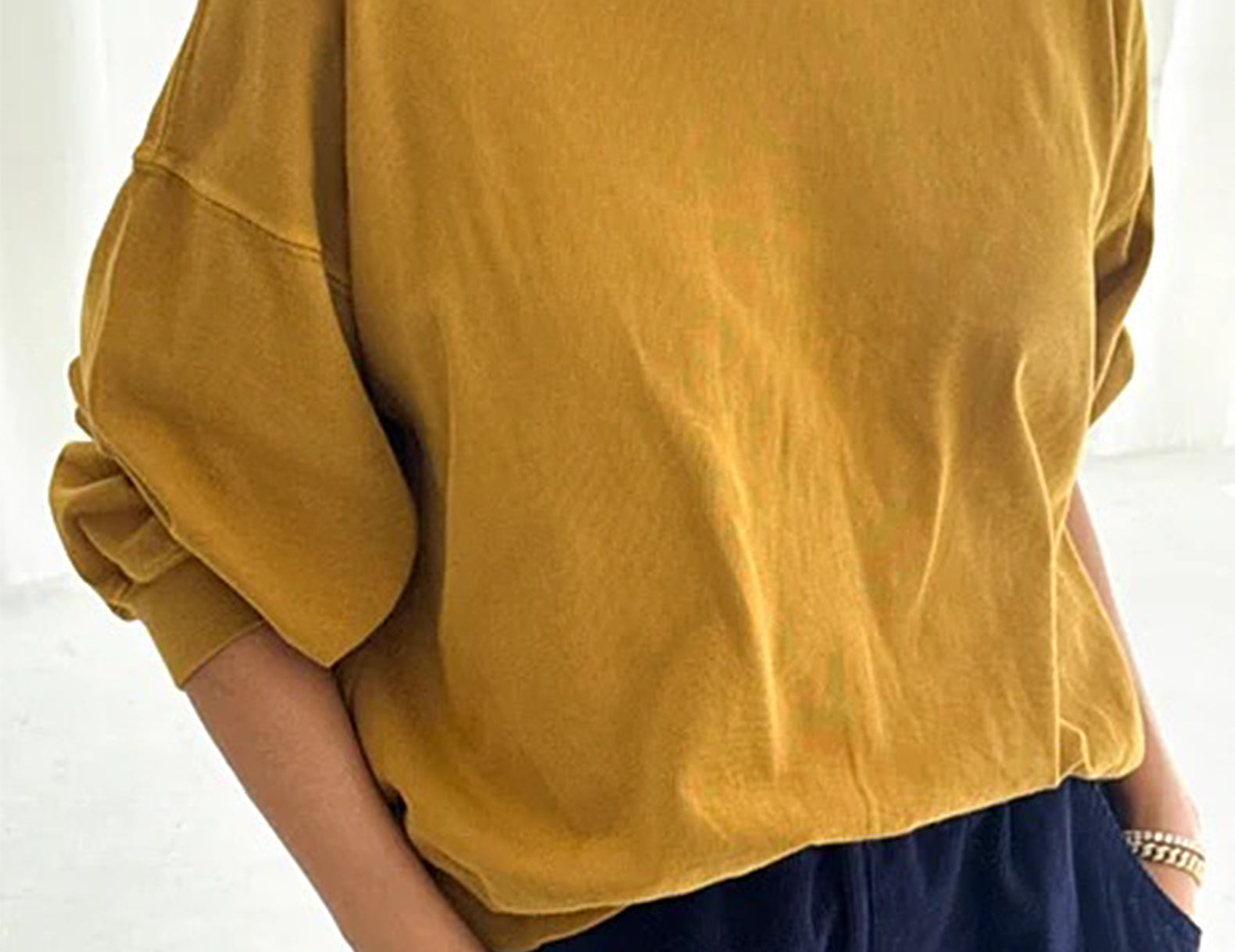 A comfy basic for off-duty days, the Cali jersey sweatshirt from Le Bon Shoppe is a lightweight layer you'll reach for again and again. The fit is relaxed and oversized, with balloon sleeves and ribbed trim. The length is slightly cropped, hitting just at the hips.