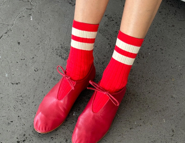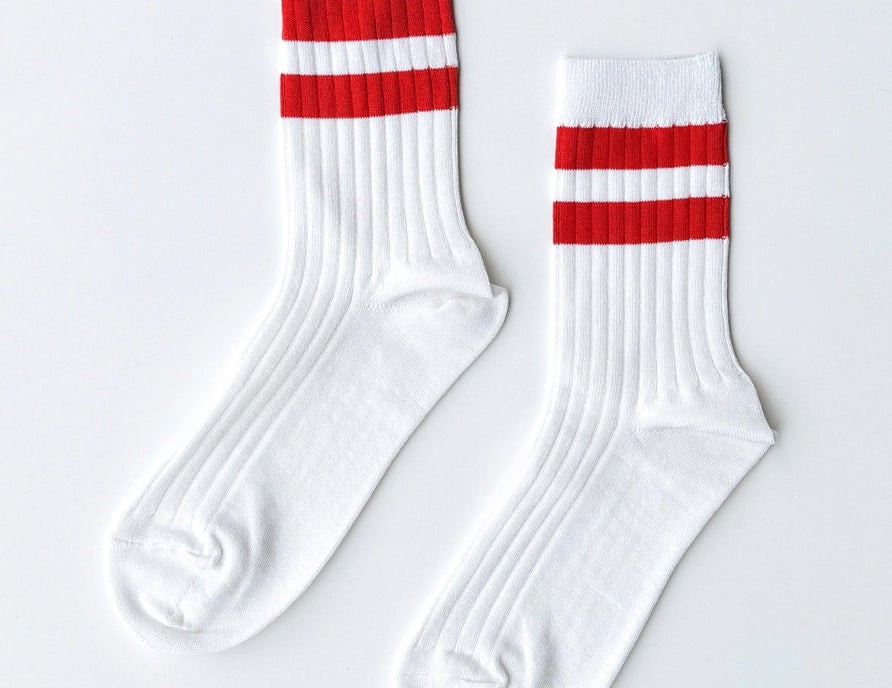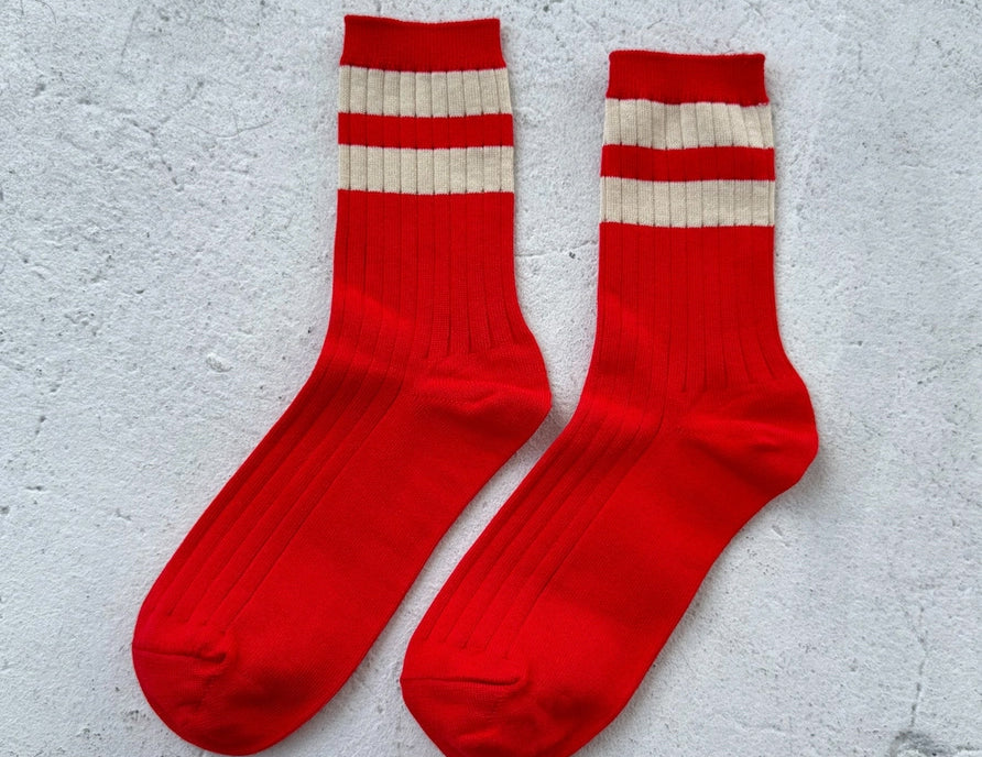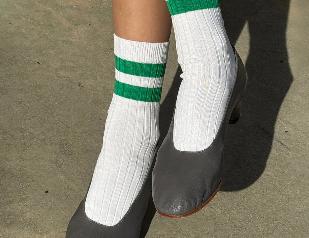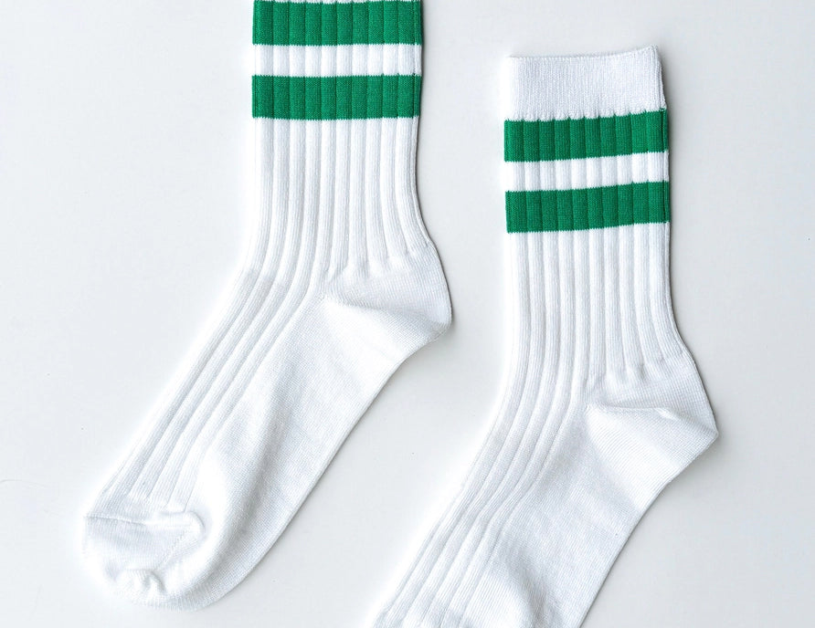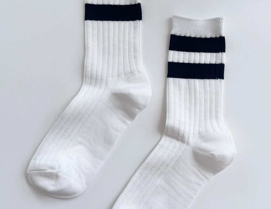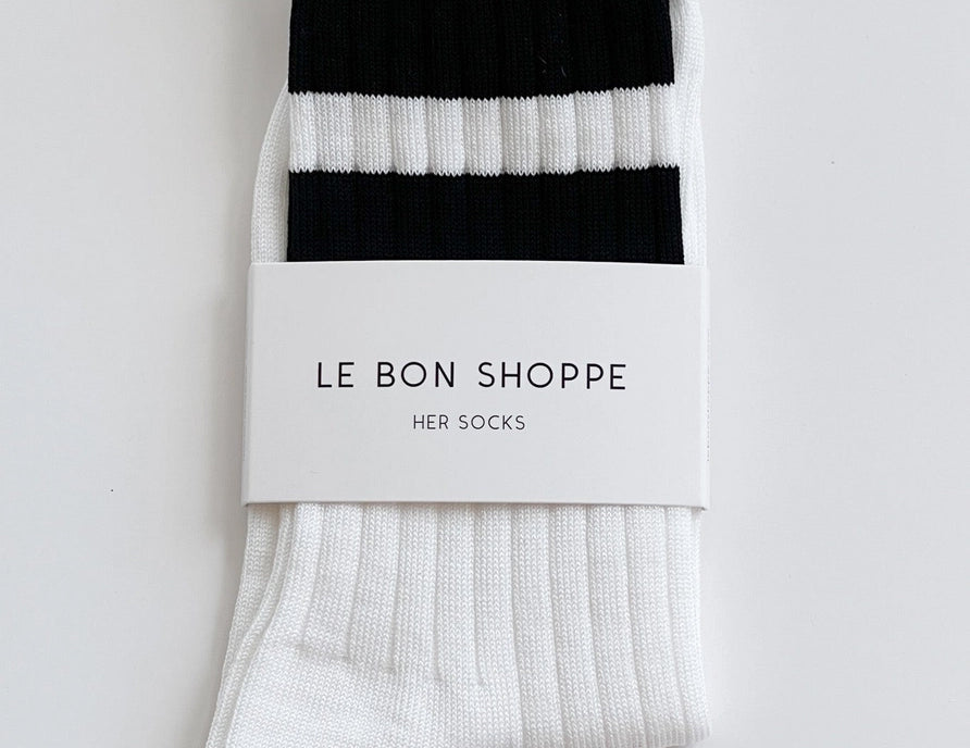 A much-needed bold stripe featured in a mercerized combed cotton in the perfect above-the-ankle height and slim, comfy fit. Le Bon Shoppe’s Her varsity socks are lighter weight than the Girlfriend and Boyfriend, and come in updated shades, wash well, and are made to last.