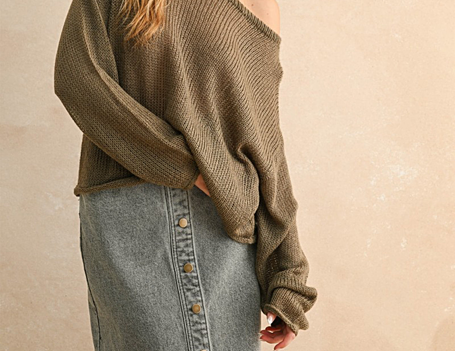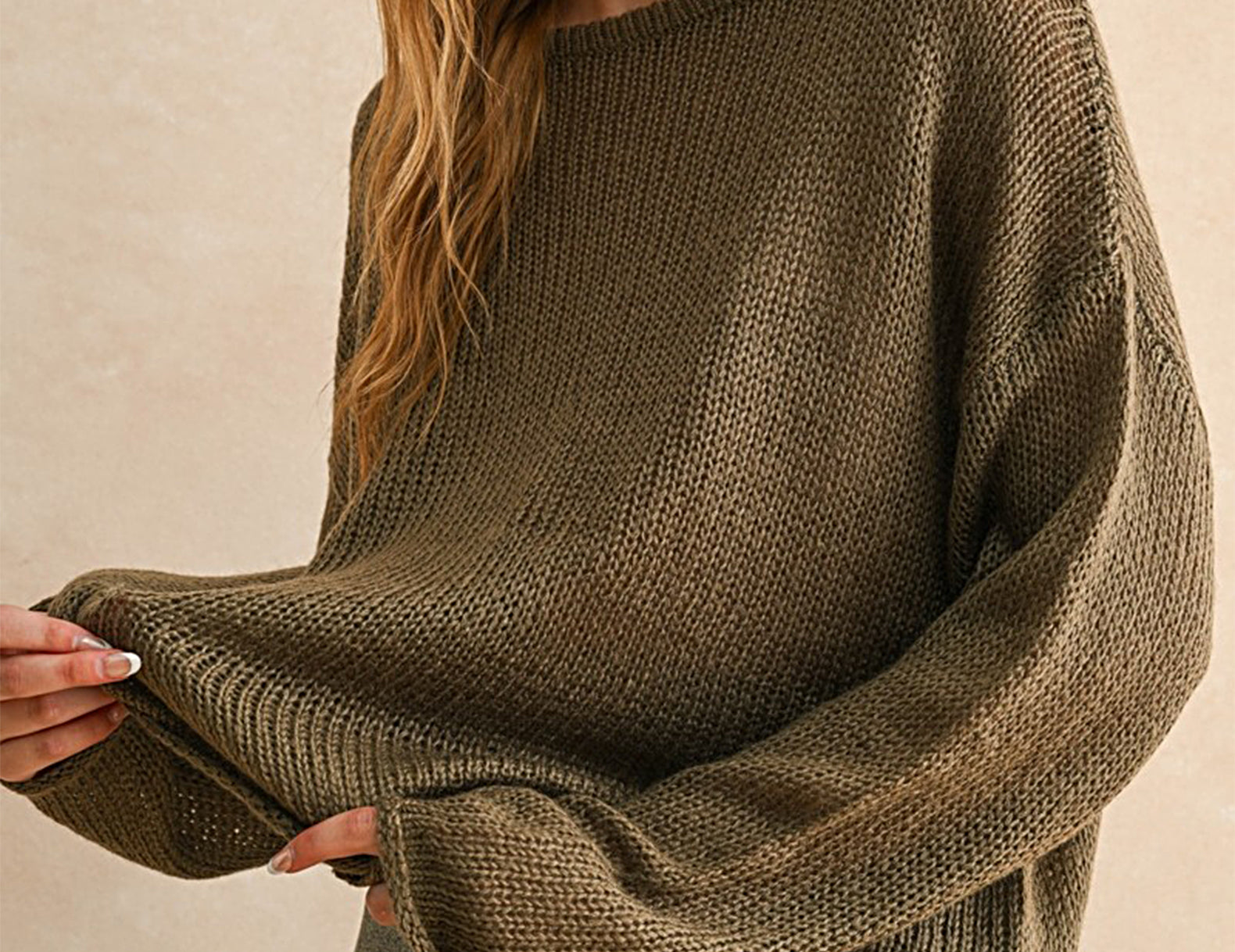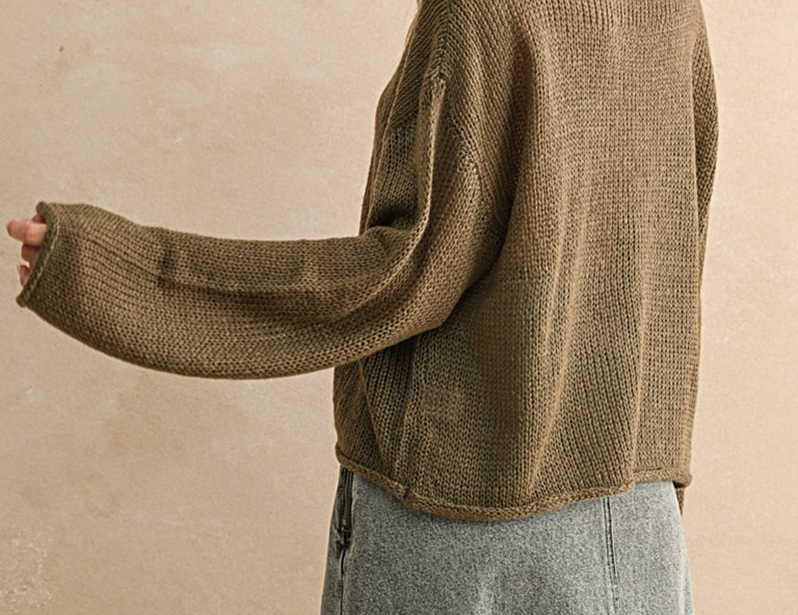 A laidback top layer in a delightfully soft knit, the Liam sweater is oversized in a boxy, hip-grazing silhouette, with dropped shoulders and a relaxed neckline for an at-ease fit. With an airy texture in a lightweight, loose knit in natural moss brown, layer this semi-sheer knit over a dress on cool mornings, or top off jeans and a tank.