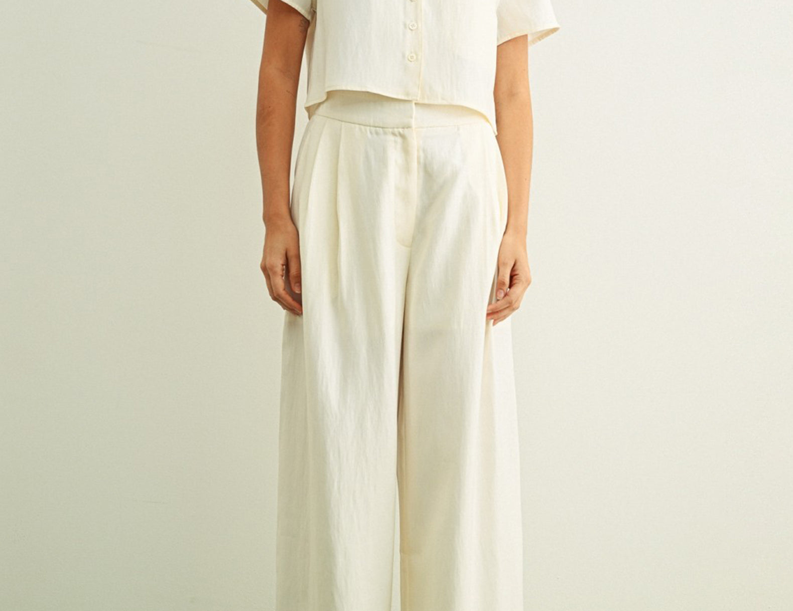 Easy to style for just about any occasion, try Lorna with a striped tube top and bold earrings, or pair them with a denim button-up and leather loafers. For a matching set, pair the ivory shade with the Lorna Short Sleeve Cropped + Boxy Blouse.
