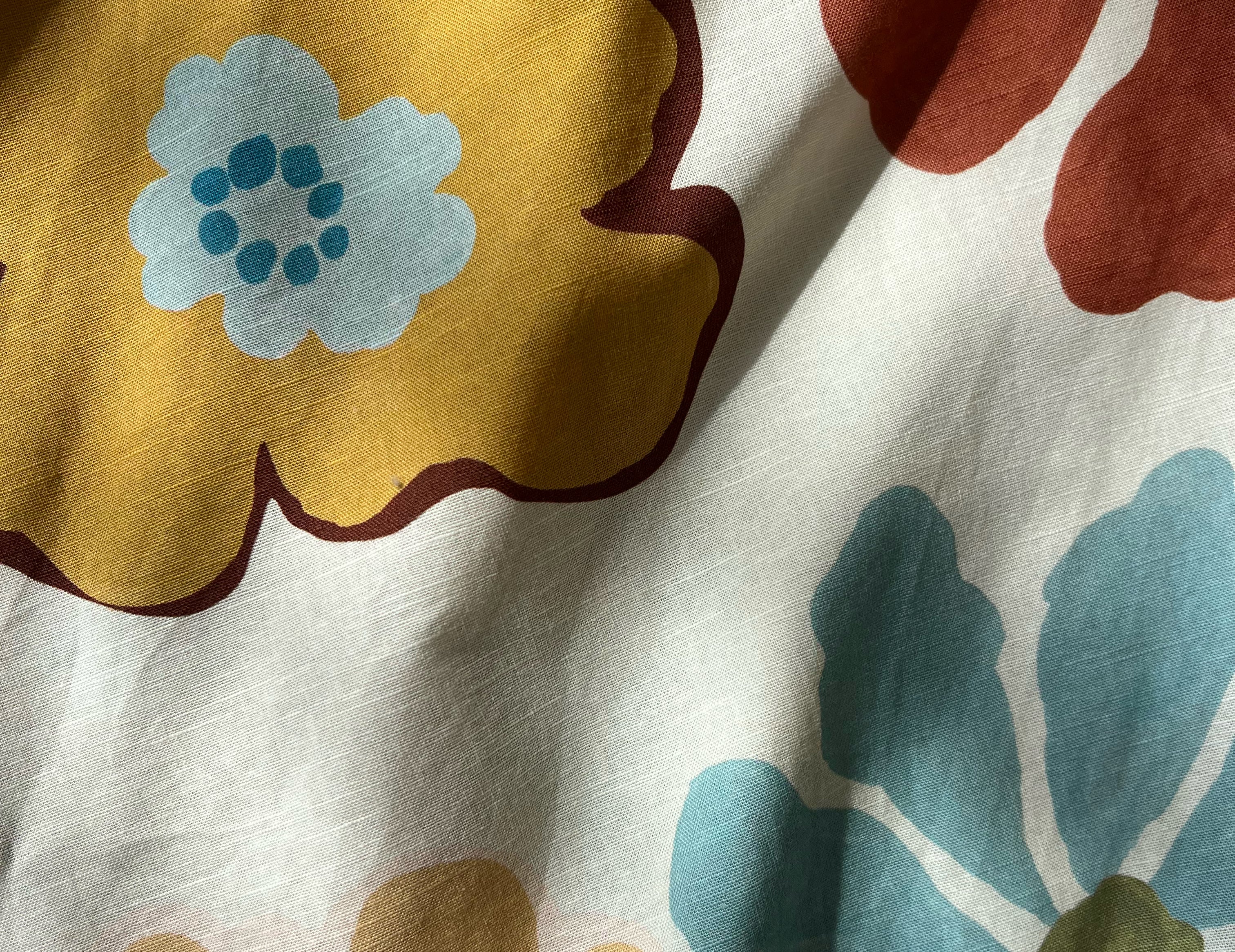 - Natural yellow and blue florals against ecru