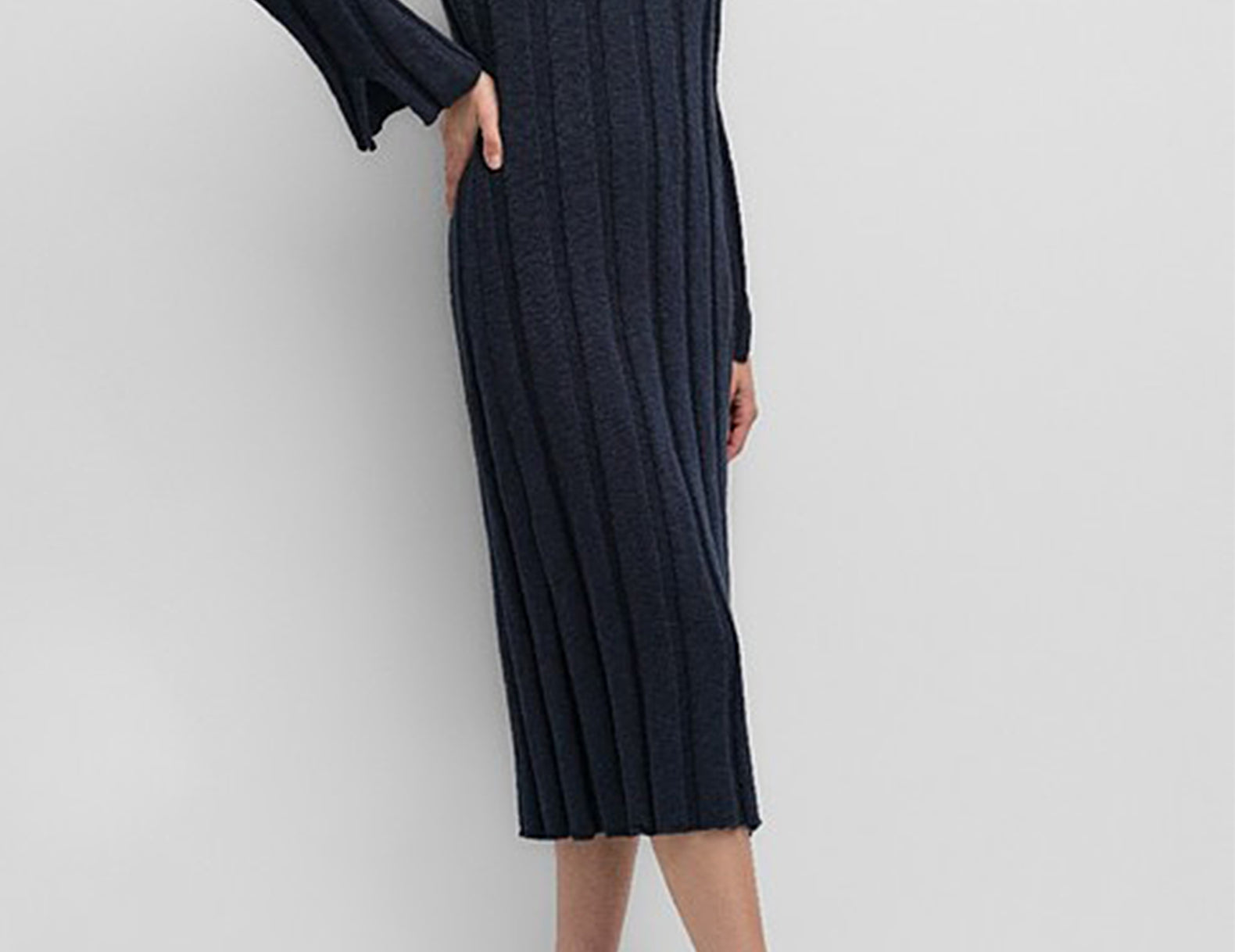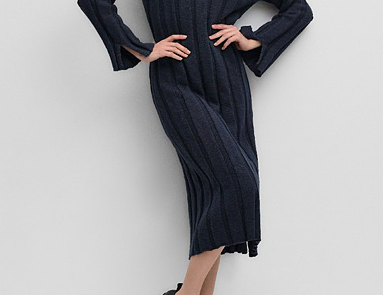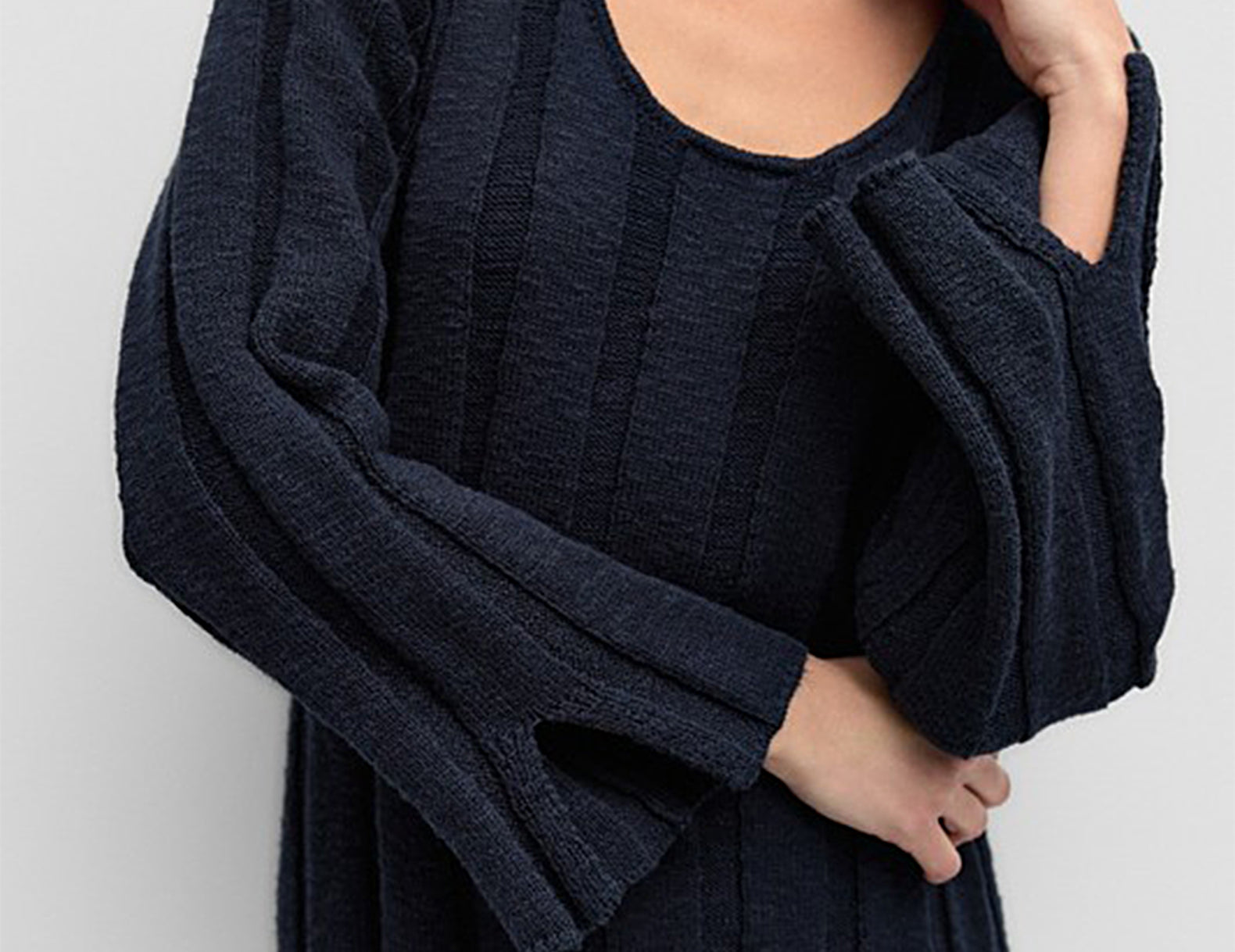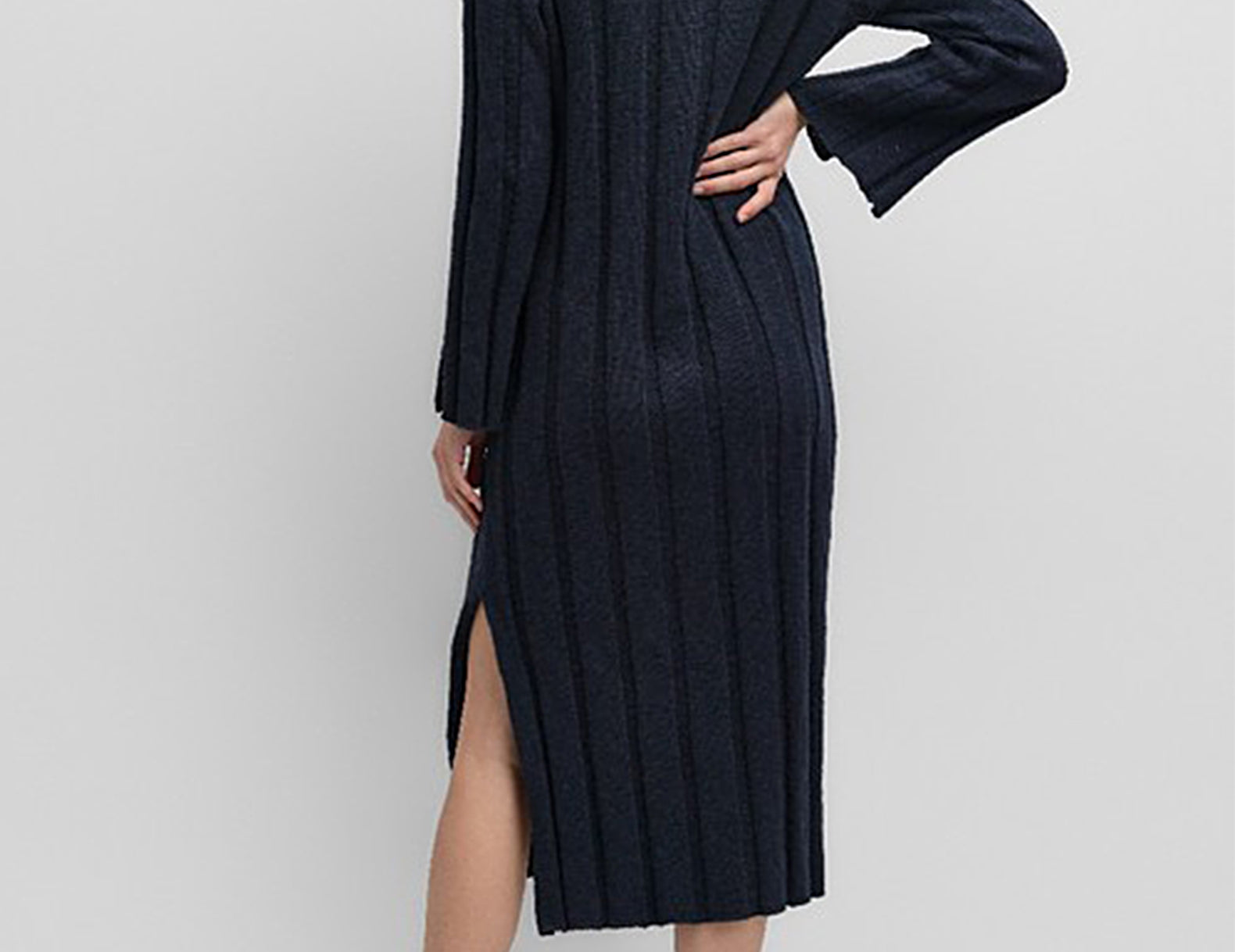 Soft + warming in a chunky, midnight navy cotton knit, the Marley dress is gently relaxed in fit—flattering curves without clinging. Accented with a side cut slit, scooped neck and flared + split cuffs, try this sweater dress with tall leather boots and statement earrings for a polished finish.