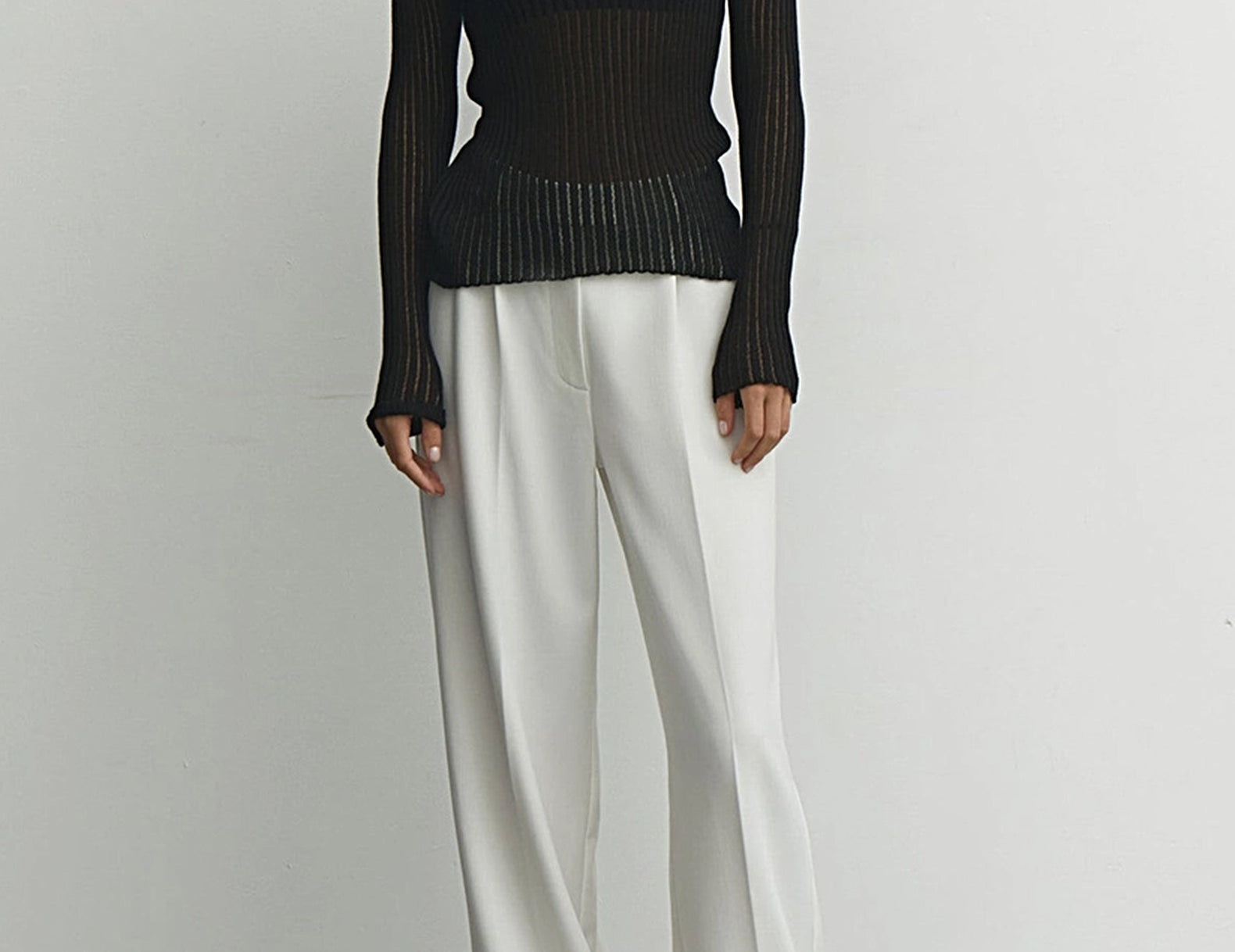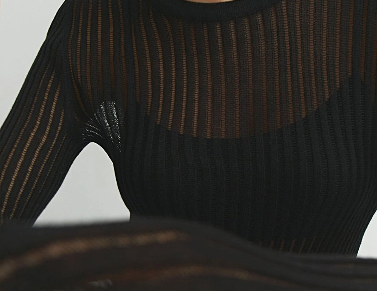 Masie Semi-Sheer Black Rib Knit Top