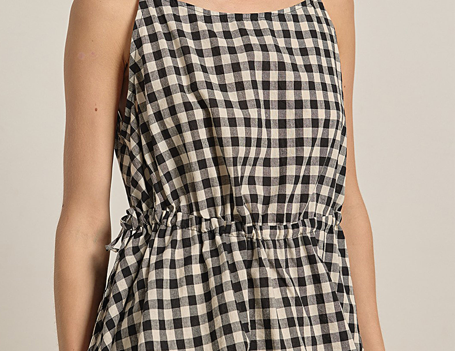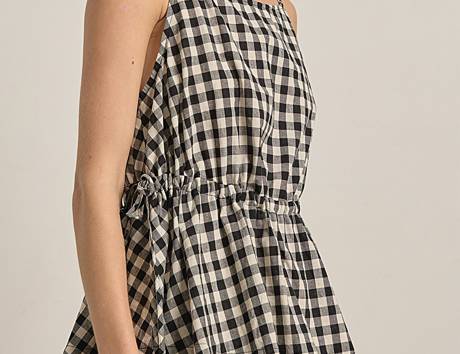 A classic gingham top for your forever closet, Norah shifts shape with drawstring ties that cinch or loosen at the waist. It's cut from airy, 100% cotton fabric to a billow tank top that lands just above the hips. Try it with wide-leg denim and western boots, or linen trousers and a denim jacket.