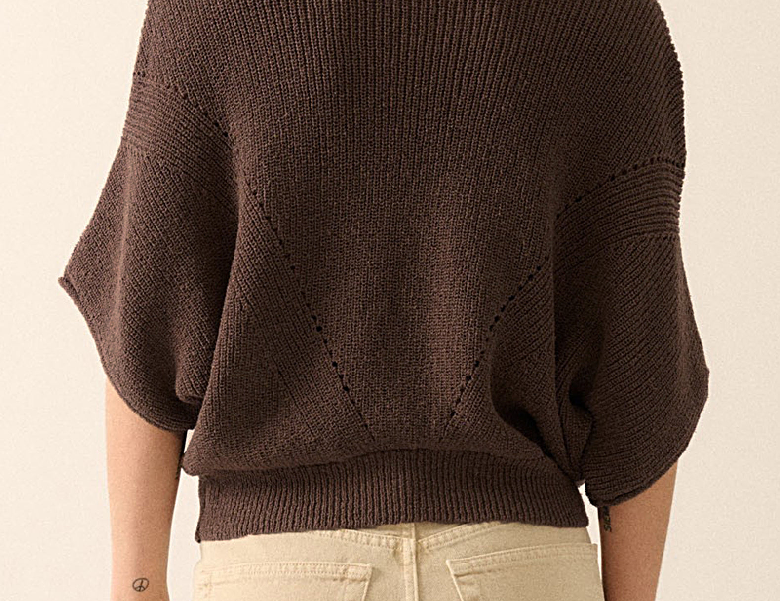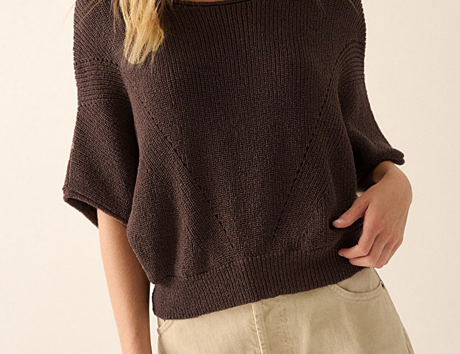 - Relaxed ½ dolman sleeves